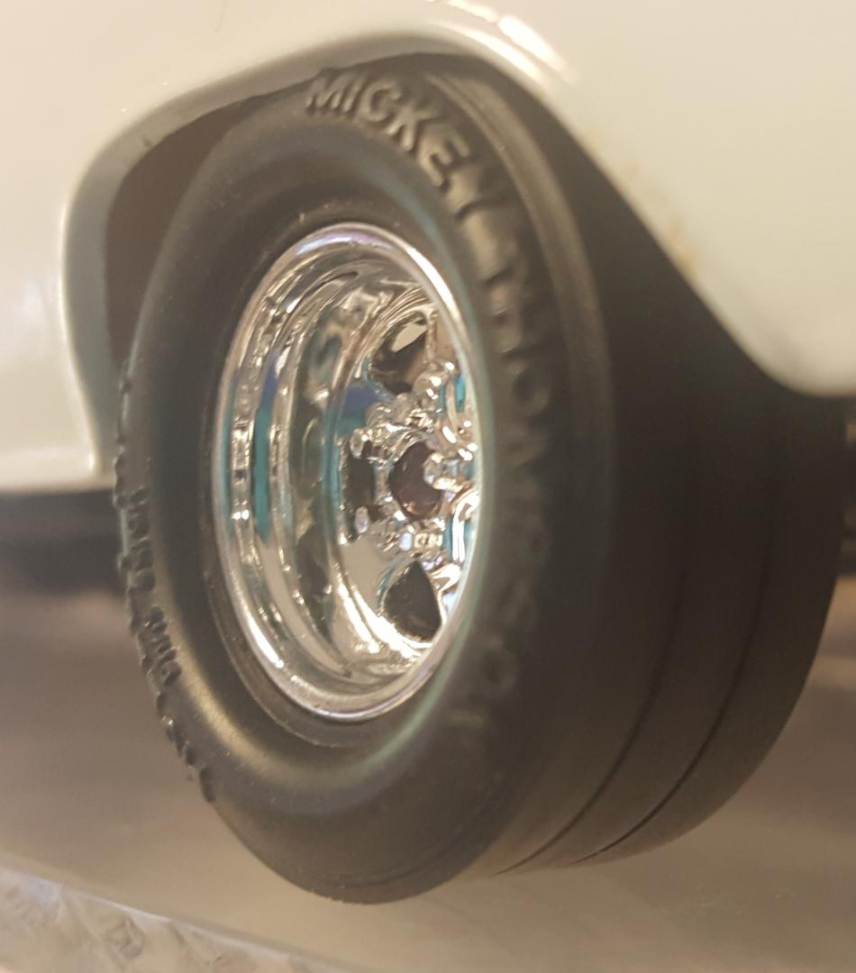 Thanks Joe, those rear tires are mickey thompson drag radials. The tires were in the pinto wagon. Mpc "Ford mini van"... but I've had a few of those kits and I only had one that had the tires in the kit? all were sealed except one, the kit these tires were in was a sealed kit. I'm not sure if you will find them in the Mpc wagon or not? I'm sure someone will know if they were used in other Mpc kits. The letters on the sidewall are a tad "sticky-outty" but they are hollow so the mustang wheels fit great. The front tires are from the mustang. I'll take a better pic of the tires so you can see the center grooves "street slicks" and the side walls too.