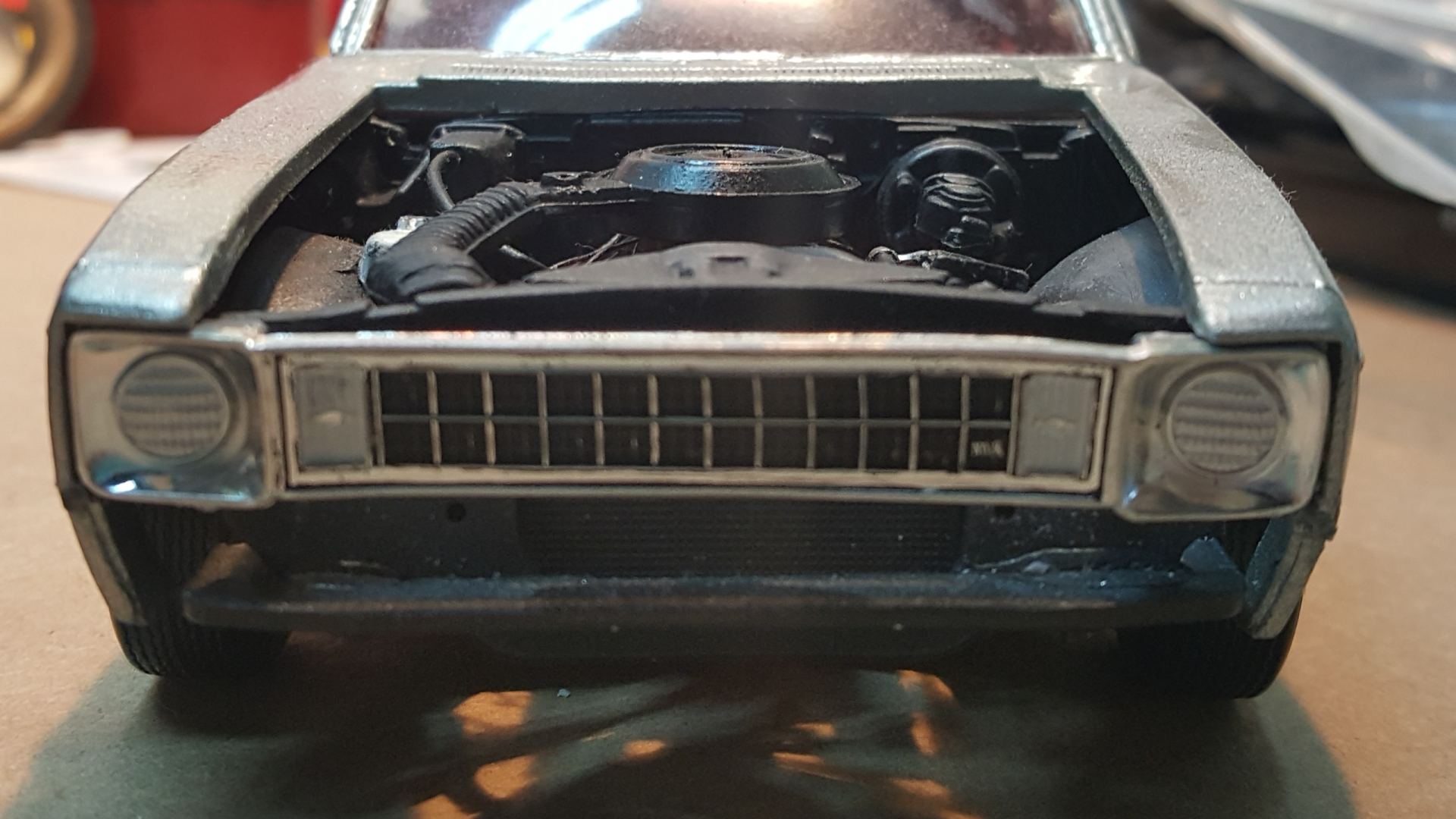 My choice would be the Revell Copo version because of the dog dish caps, lack of badges, and overall quality of the model. Way better than the Amt kit, albeit the go to kit that we all love it's still a difficult kit to make nice. The good news is that the subject matter will make it easier to build. Don't forget the side moldings and dents. I wanna say somewhere there is screen still that shows the roof partially pushed in. I've always wanted to build the car as a model because I read that after filming it accidentally got sent to the crusher. Here's some reference photos.