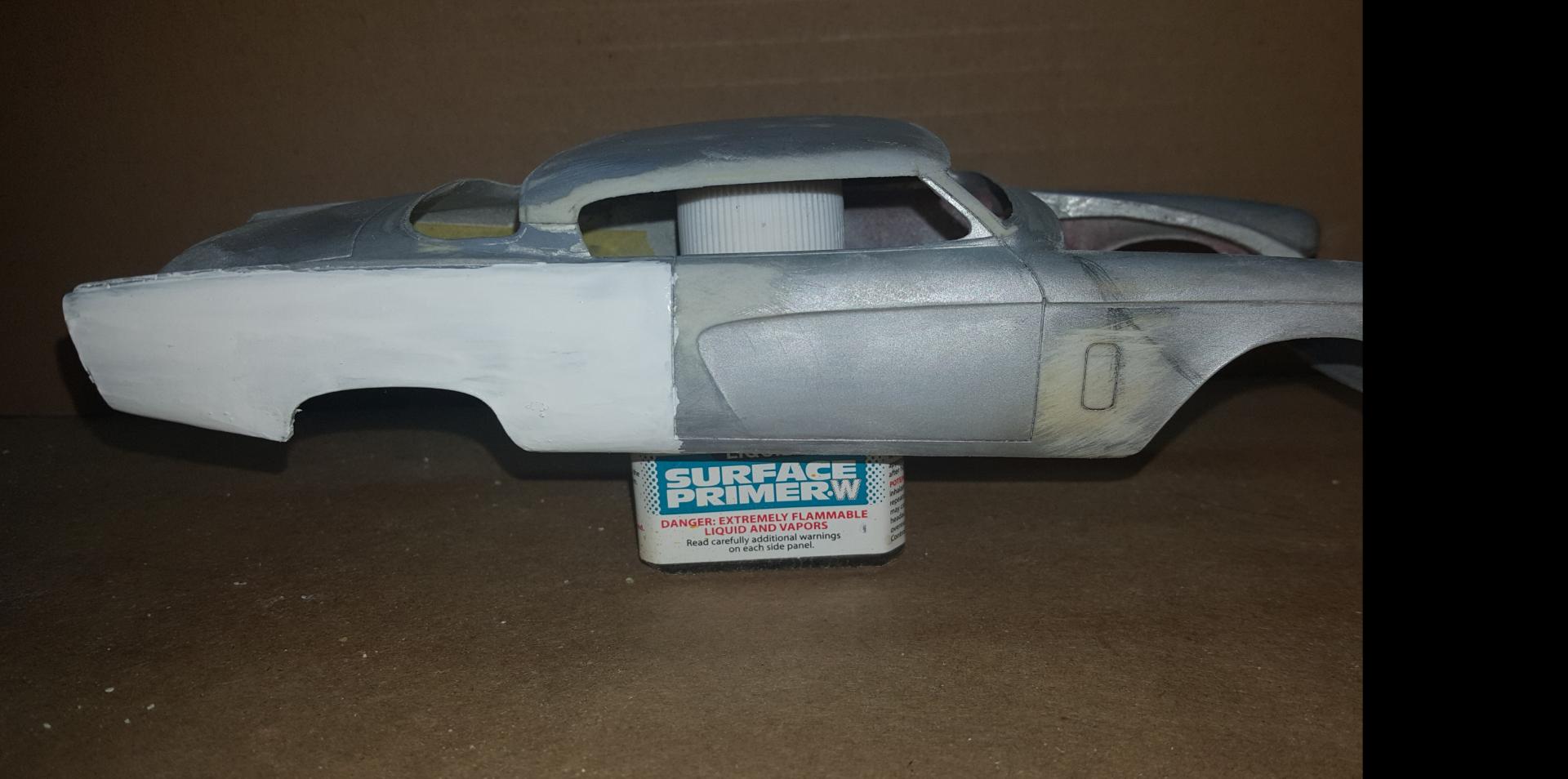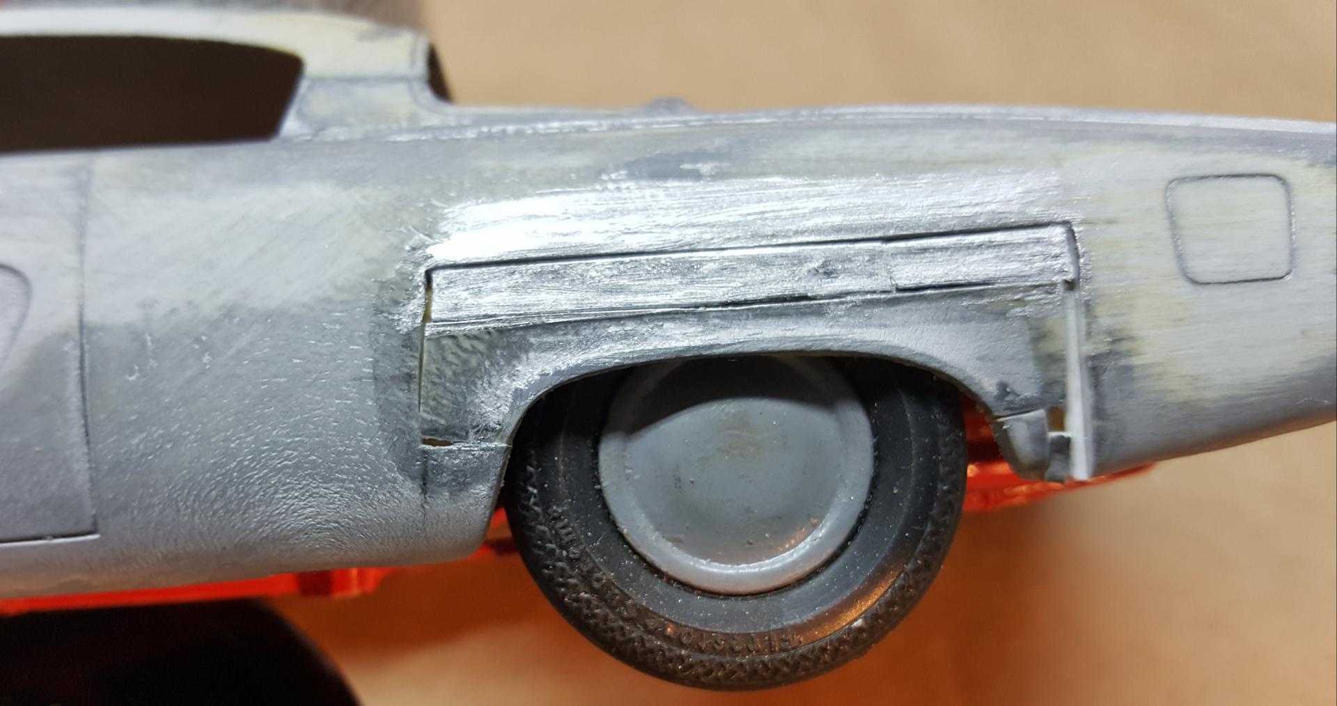 18. Alright, so I couldn't help but see if I could get the quarterpanels sorted out. So I laid down some filler and surface primer... I use this primer because it is kinda thick and drys relatively hard so you cand sand on it and smooth the surface pretty easily... I'm enjoying the work goin on here and It's rewarding to see it come back from uncertainty. More as the world turns. Thanks