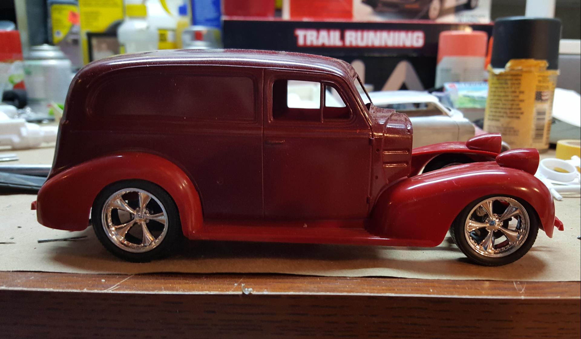 7. I really like the progress you're making on the truck and l like seeing lots of Chrome and or polished aluminum on Rusty/weathered rides. It's a trend that caught on during the "Ratrod" phase and still remains popular. I started building this kit and desided I wanted the top chopped but unfortunately I made the cuts in the wrong place which has stalled the project. I set up a totally white back ground for my pics (picture for attention) but any progress pics work, I enjoy seeing them. "Keep Hammering Away" Thanks