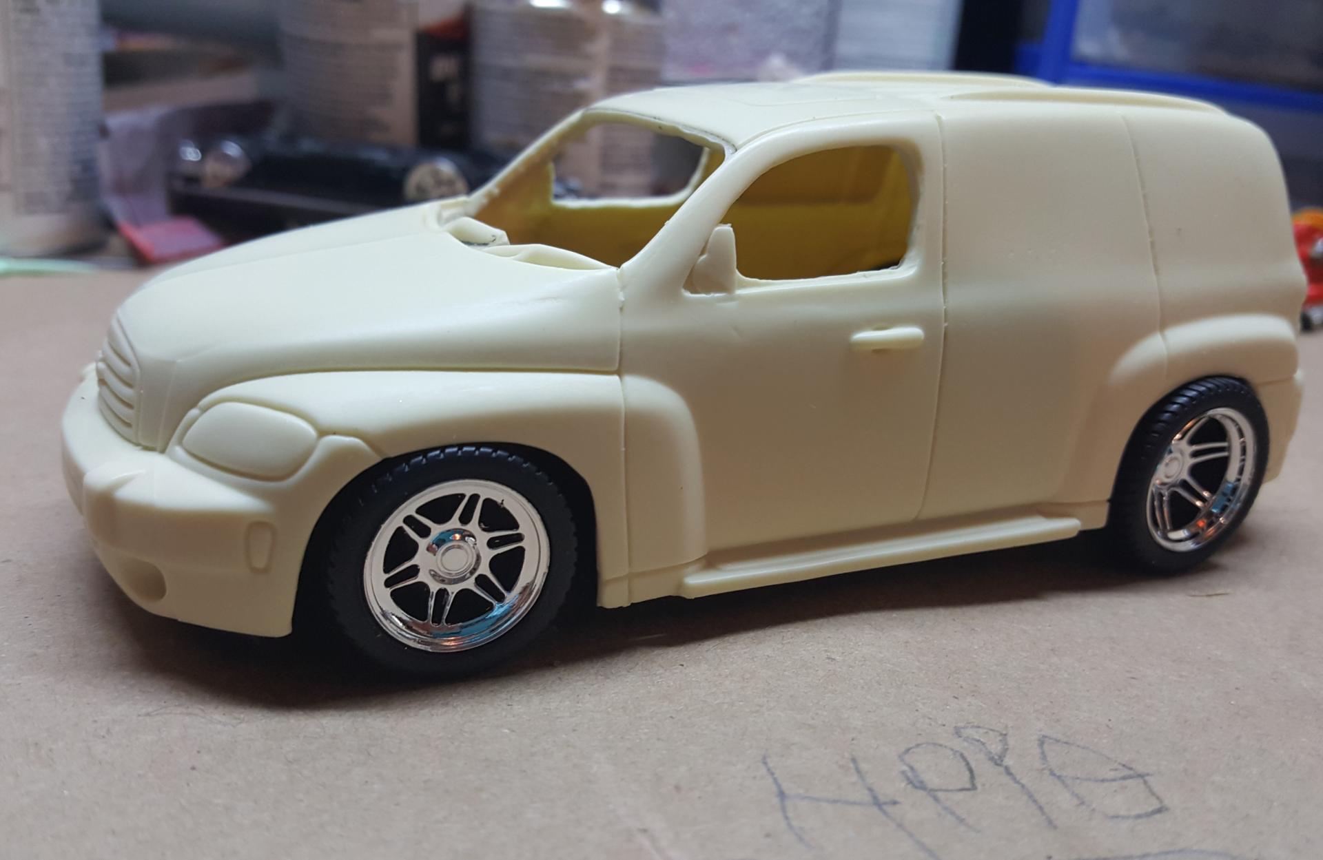 Hey everyone... been awhile since I started a new project for the forum. This little HHR intrested me due to the fact that just over a year ago... I was gonna buy a real one but when I went to look at it.. it was in poor condition and looked better in pictures. I credit that HHR to me finally buying my Chevy nova. Because I had the money saved up for the Nova but if I would've bought the HHR then I wouldn't have the Nova. Anyway about the model....This Jimmy Flintstone resin kit was given to me. So now I just need to narrow down a theme. I was thinking that I'd keep it somewhat simple keeping it Curbside but adding interior to it and removing the "piggy bank" style windows. So far it hasn't exactly been as simple because the donor kit (the PT Cruiser) is not a direct fit. The wheelbase is different and the interior had to be shortened and narrowed. I'd like to add that I did a search on the fourms and I'm officially the first to post an HHR on the site... there's probably a reason for that. Lol! I am open for suggestions on theme and styles... I need some help because I've done some google searching and I can't decide which I like best. It's a bit overwhelming with all the options... Thanks, and I look forward to everyone's input...