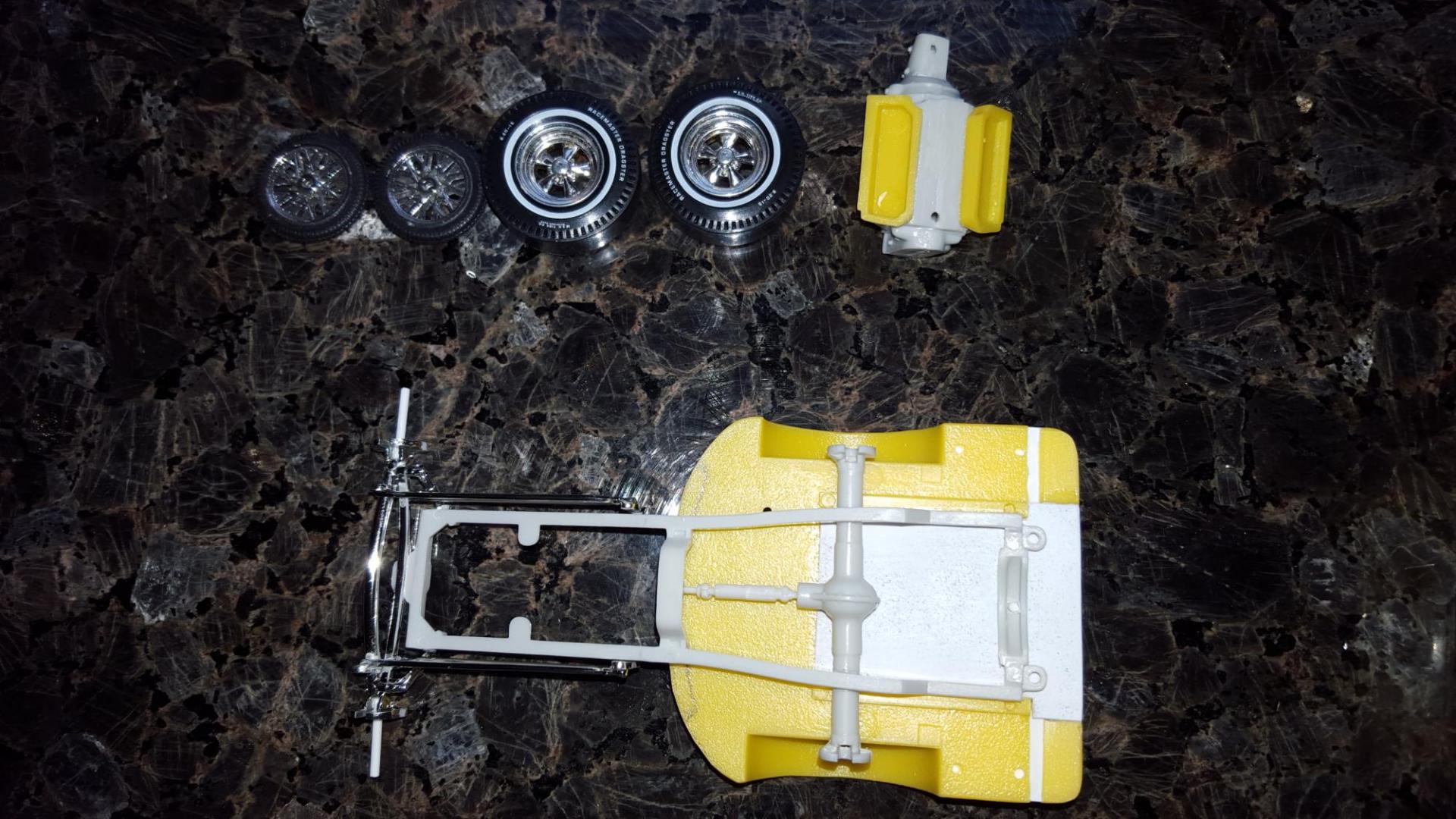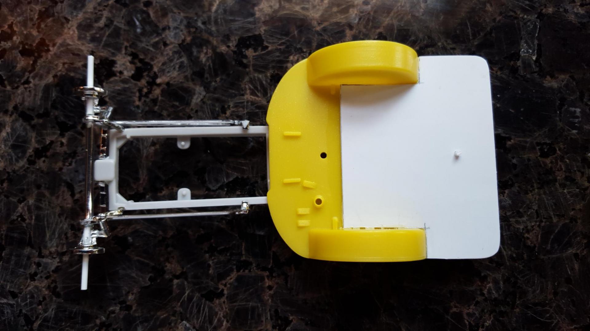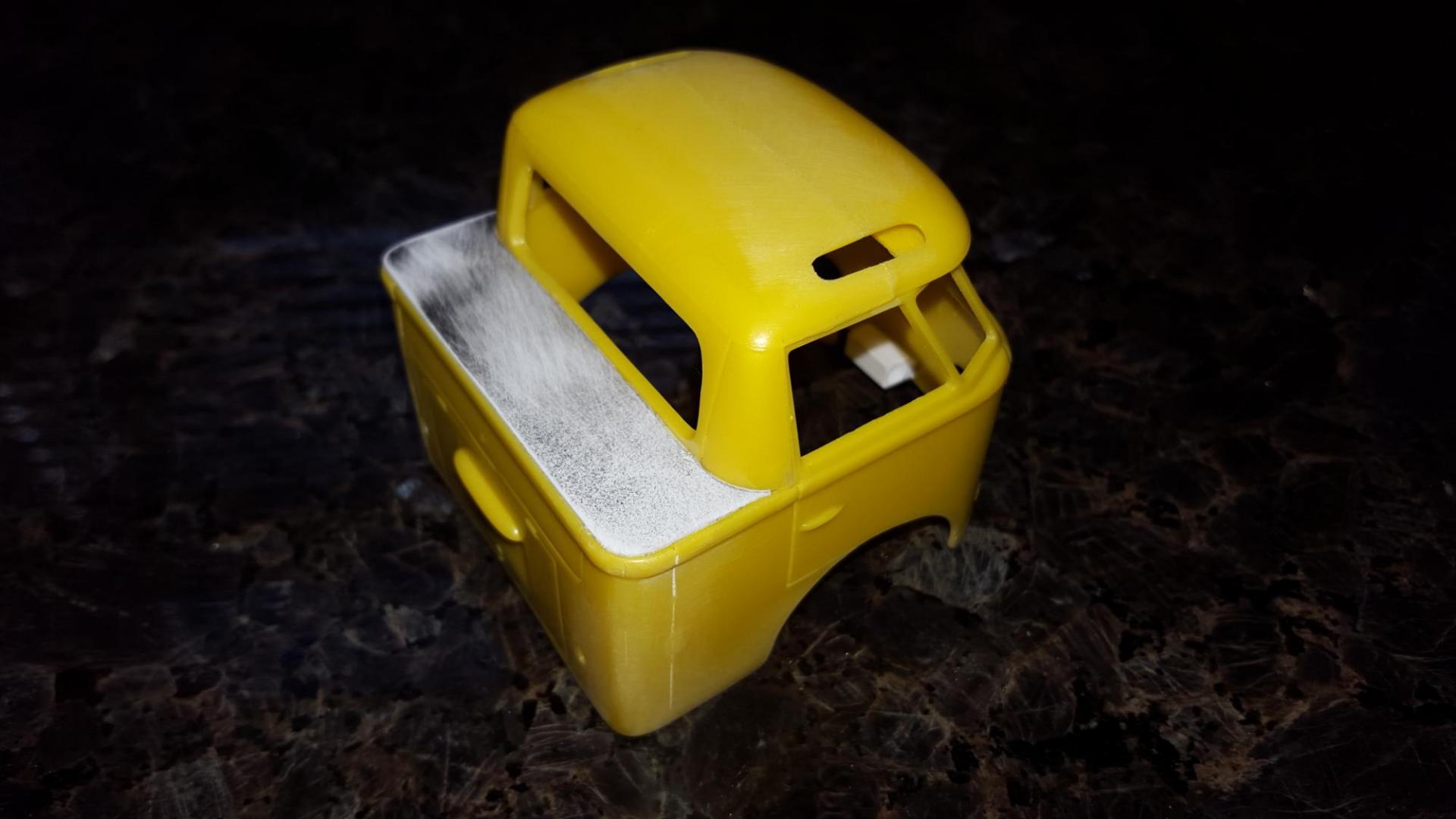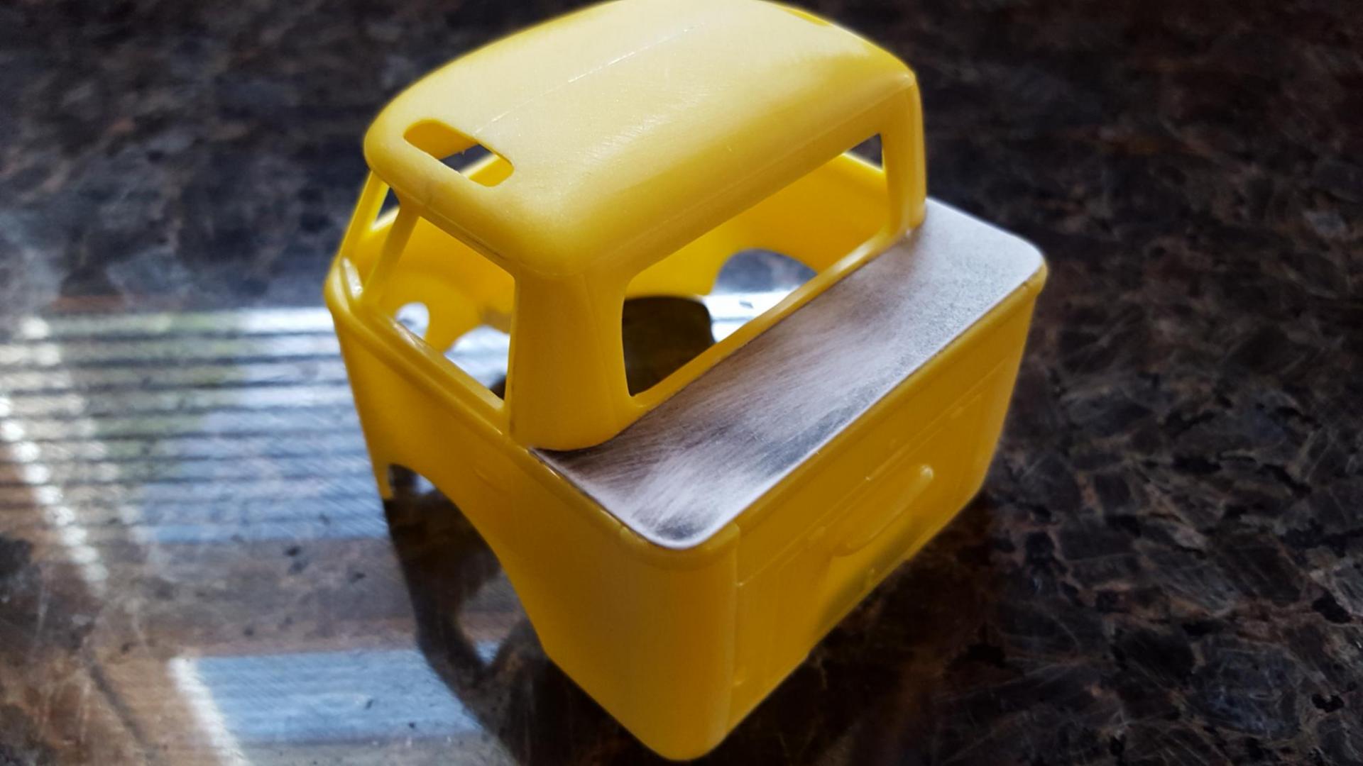 5. I agree! Here are some pics to hopefully explain what has been done thus far. Kinda hard to know without seeing the "before chopped body" but you can get an idea from the box art. The roof is a separate part and can be cut to fit the chopped body at a later time. The idea was to eliminate the rear wheel all together so the front wheel house would become the new rear wheel. Anyway it reminds me of that saying "If a bullfrog had wings".... because of the half-a-bed look that it's got goin on. Lol! I thought about adding a dragster wing, like that from the Wild Willie Boris dragster but I really don't know what to do with it. Maybe a 60's hippie van style paint job? Or a right hand drive Us mail hauler?
