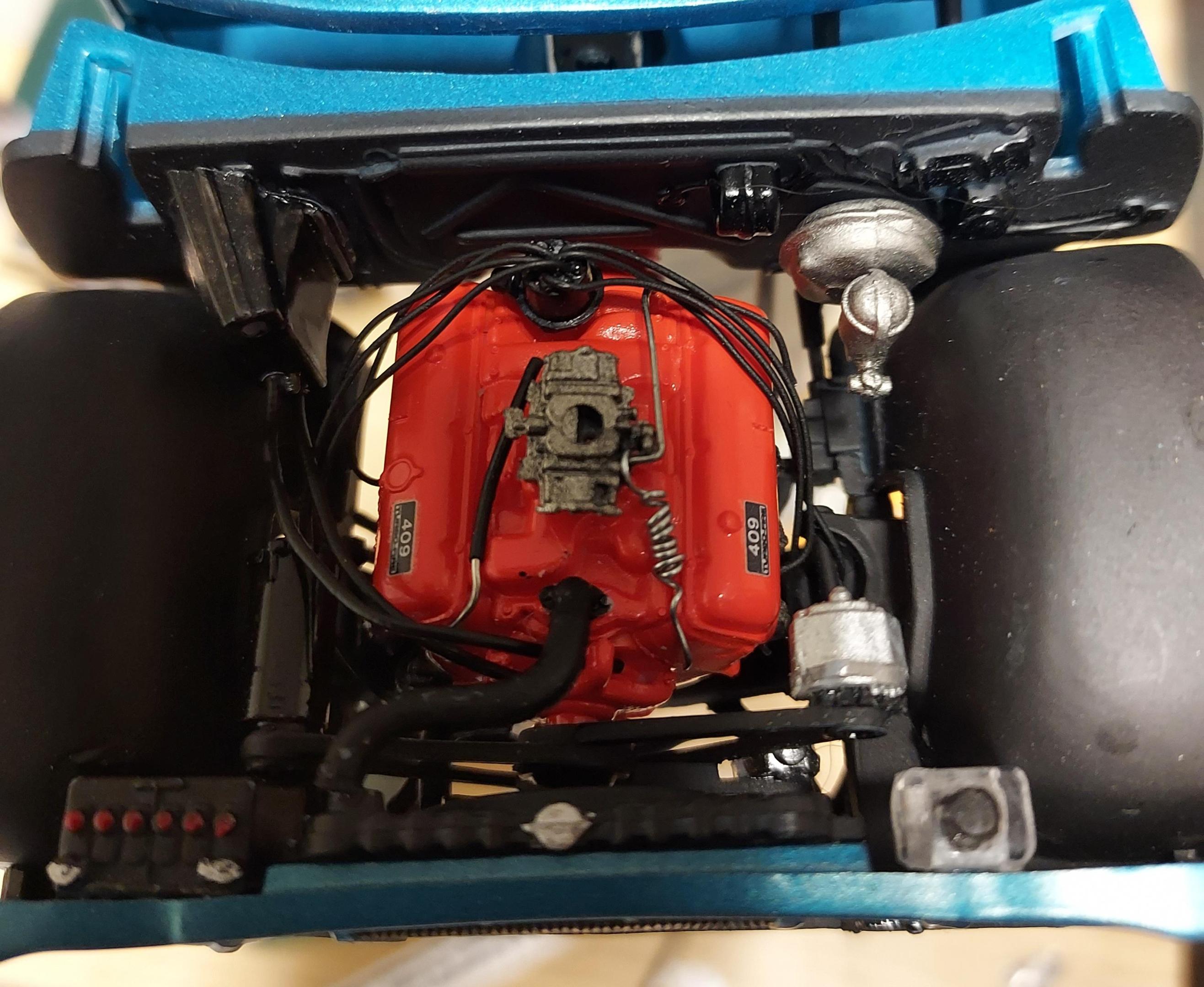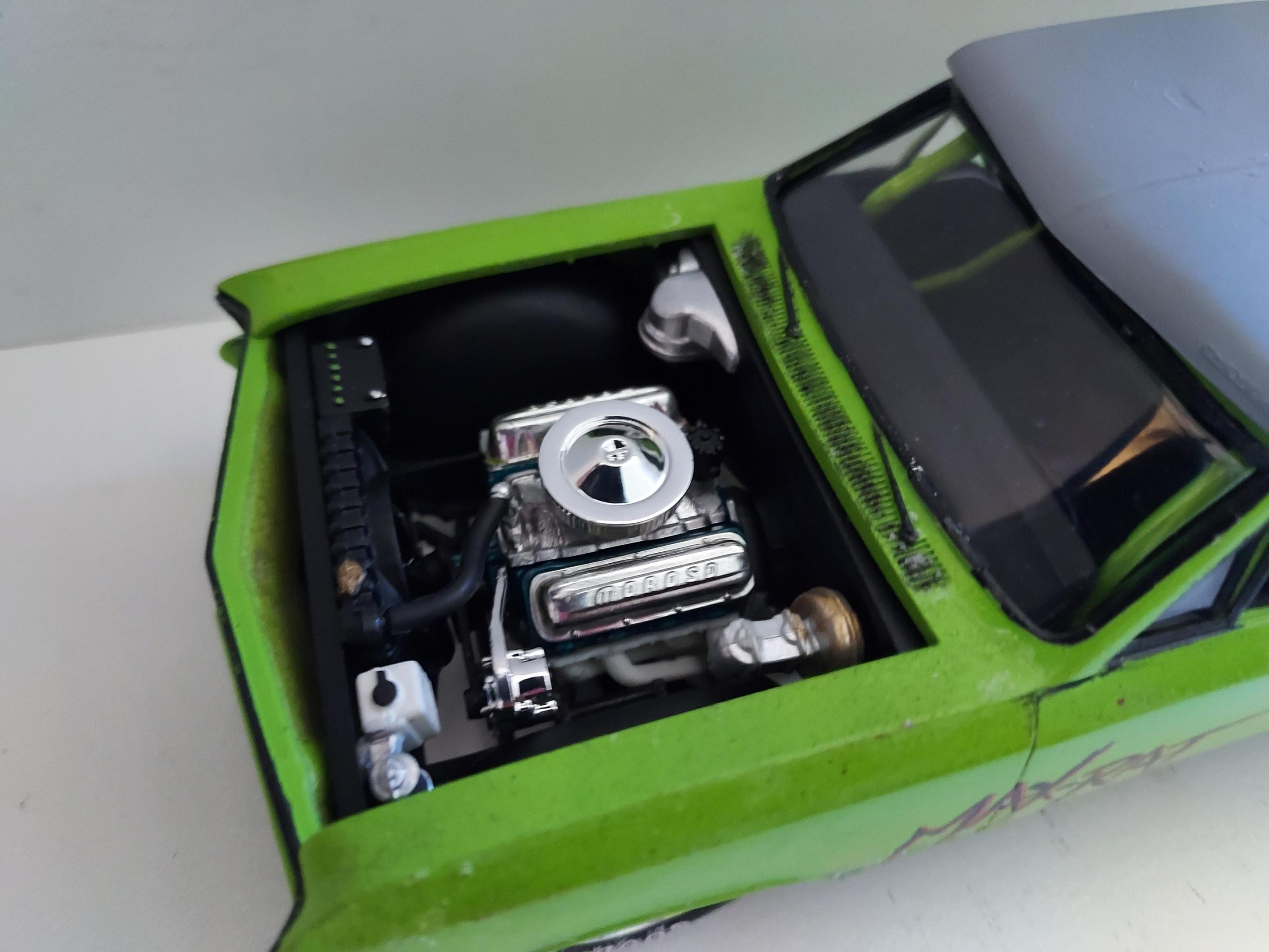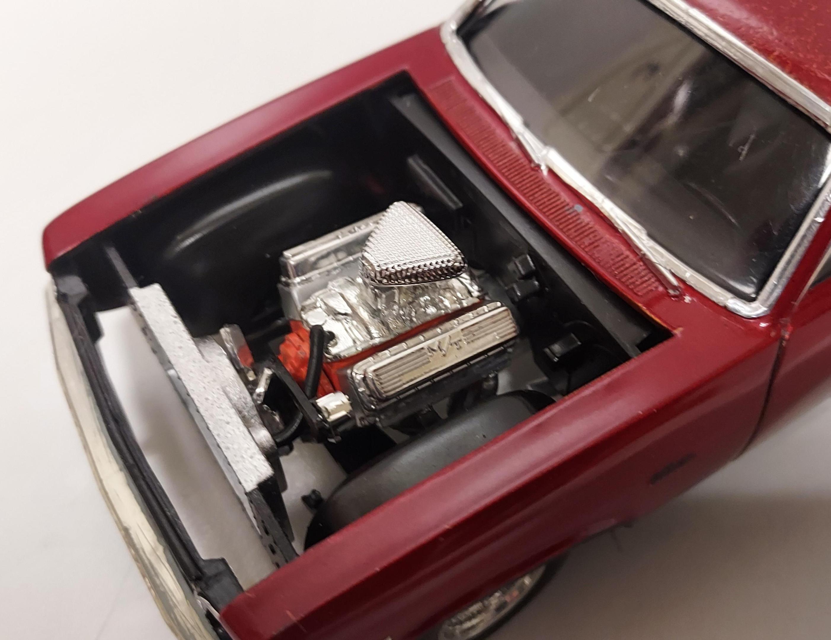 Yeah that is a funny story too...The 409 emblems were part of the decal sheet on the Foose kit. I didn't put those on there, Jimmy actually had the engine built, he put those on there unaware of the engine being a 396... my teenage son comes to the clubmeets and he was confused with those decals. I had to explain that those were on the decal sheet because I guess the early model 65's having 409s in them... and the Monogram/Revell Convertable kit had the 409 engine so I think that's why the hard top had those 409 engine decals. He just didn't know the difference between 409 and 396 and I just left them on there. ?