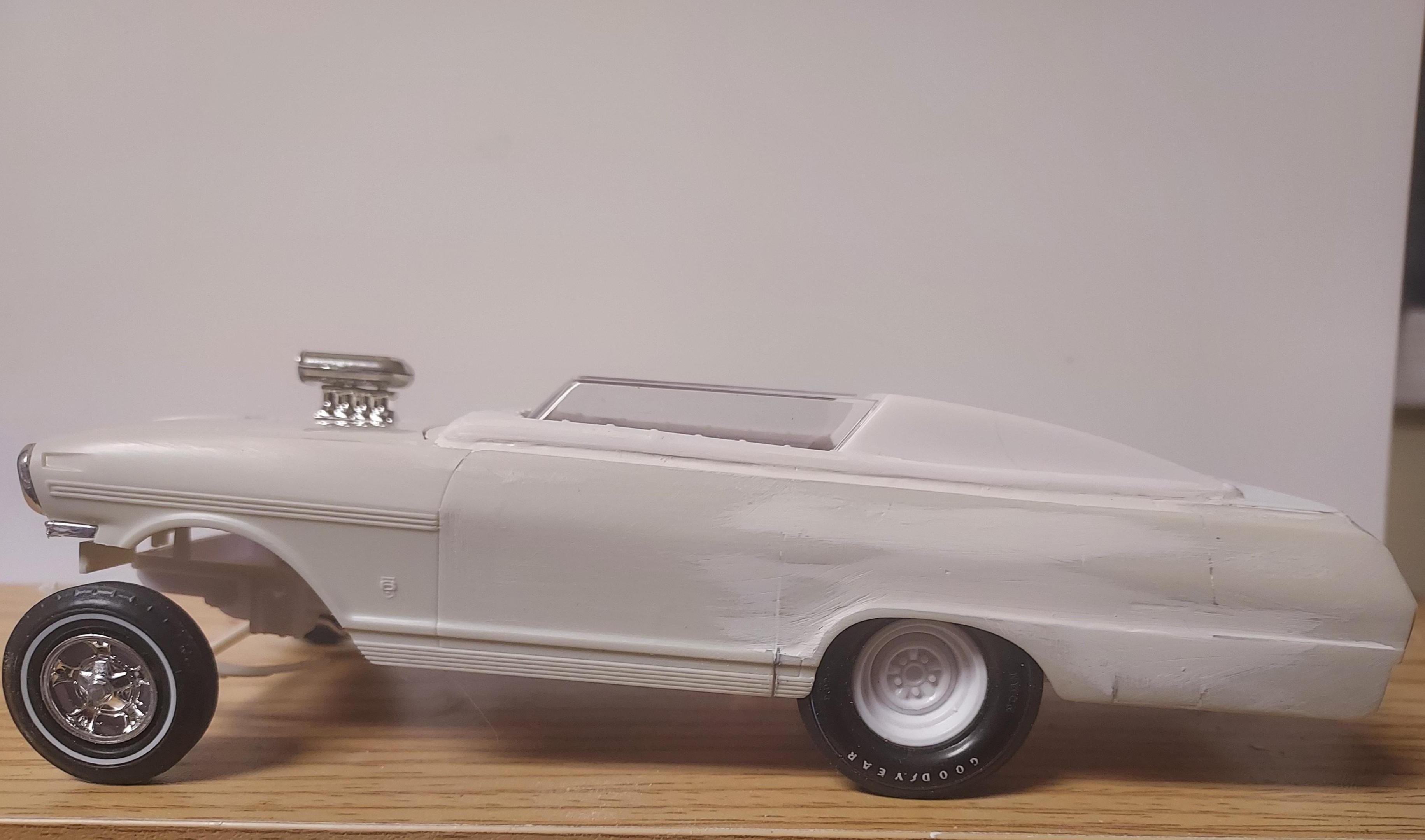 Oh No! Here I go agian cutting up stuff... Altered wheelbase Roadster Chevy II drag car, could've been been a four door sedan... ???
