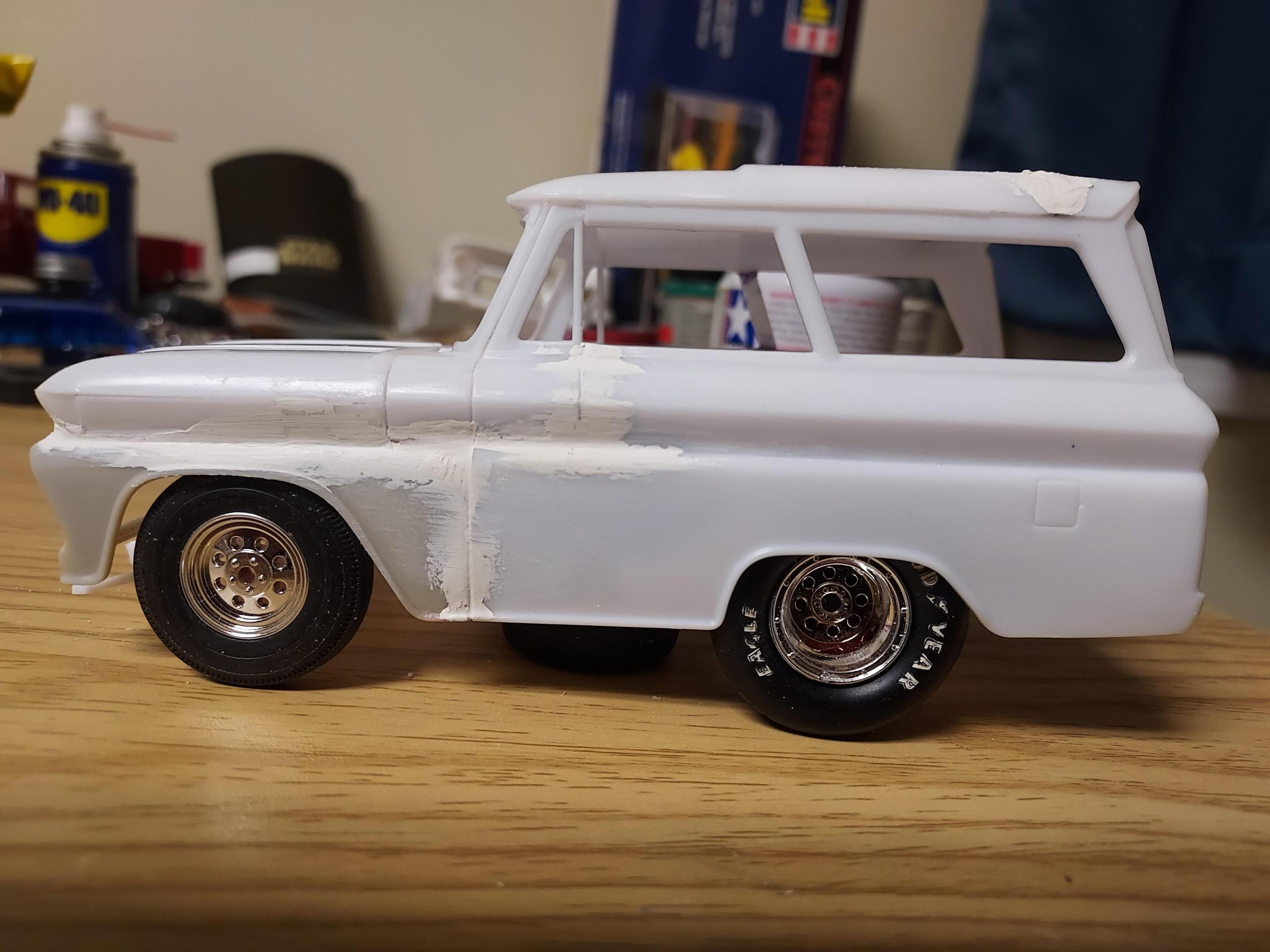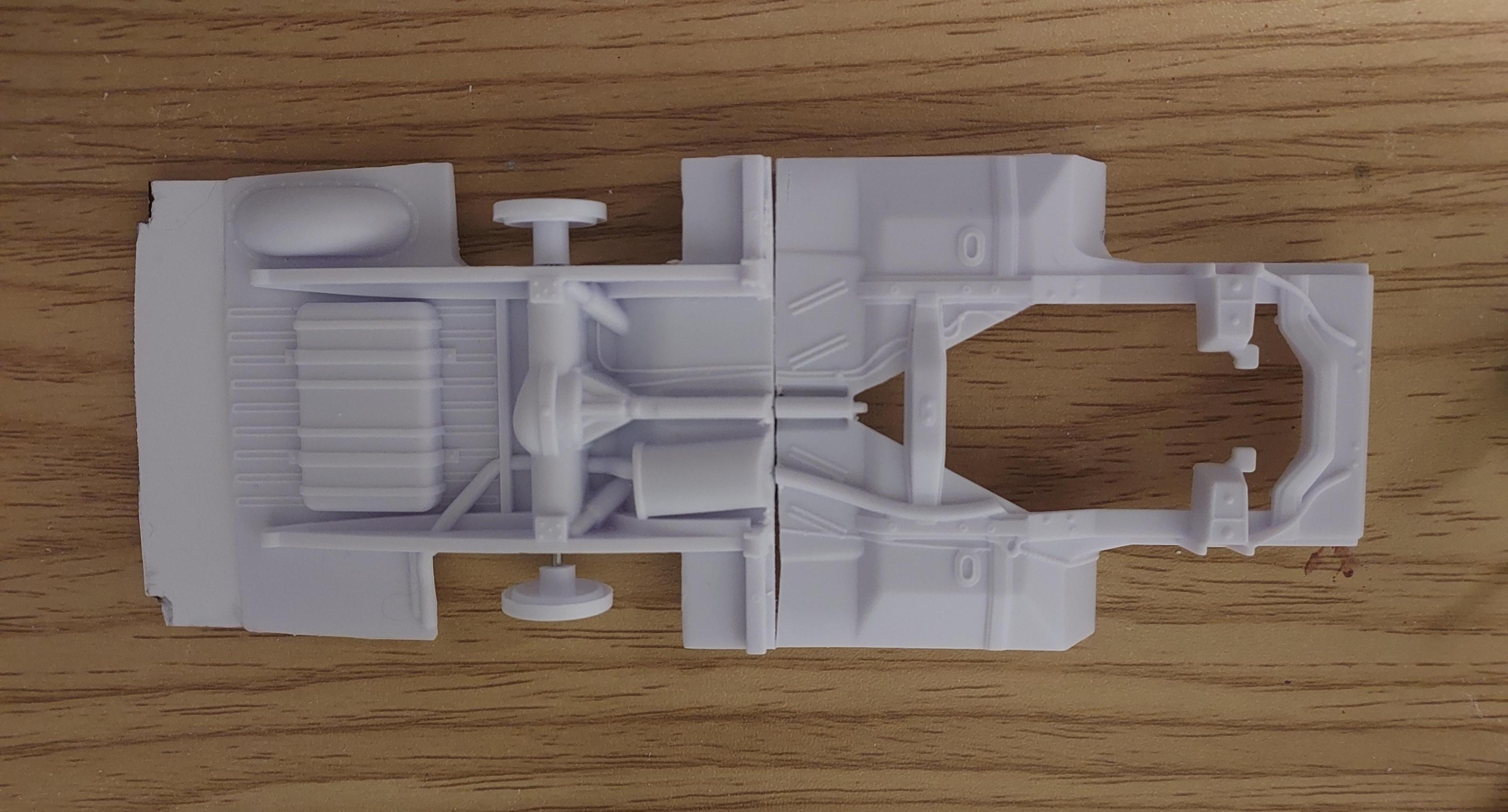 I've stalled all my other projects to stay devoted to finishing these...every day I get a little further.? I didn't realize how much work I have here just by doing things, what I consider simple. I cut the middle section from the chassis in order to simplify the build. I had pondered on using the Chevy II altered wheel car but I didn't want another kit without a chassis. I'm using the Hemi from the Progessive Racing team. I wanted to use that engine in the car when I seen it on the box and when the idea presented itself with building the vintage combo, it just seemed fitting and speaking of fitting, that Hemi is a perfect fit in the car just have to add a transmission. Cutting, sawing, fitting, filling, sanding Yada, Yada, Yada ??? hey I'm making progress so that's good...