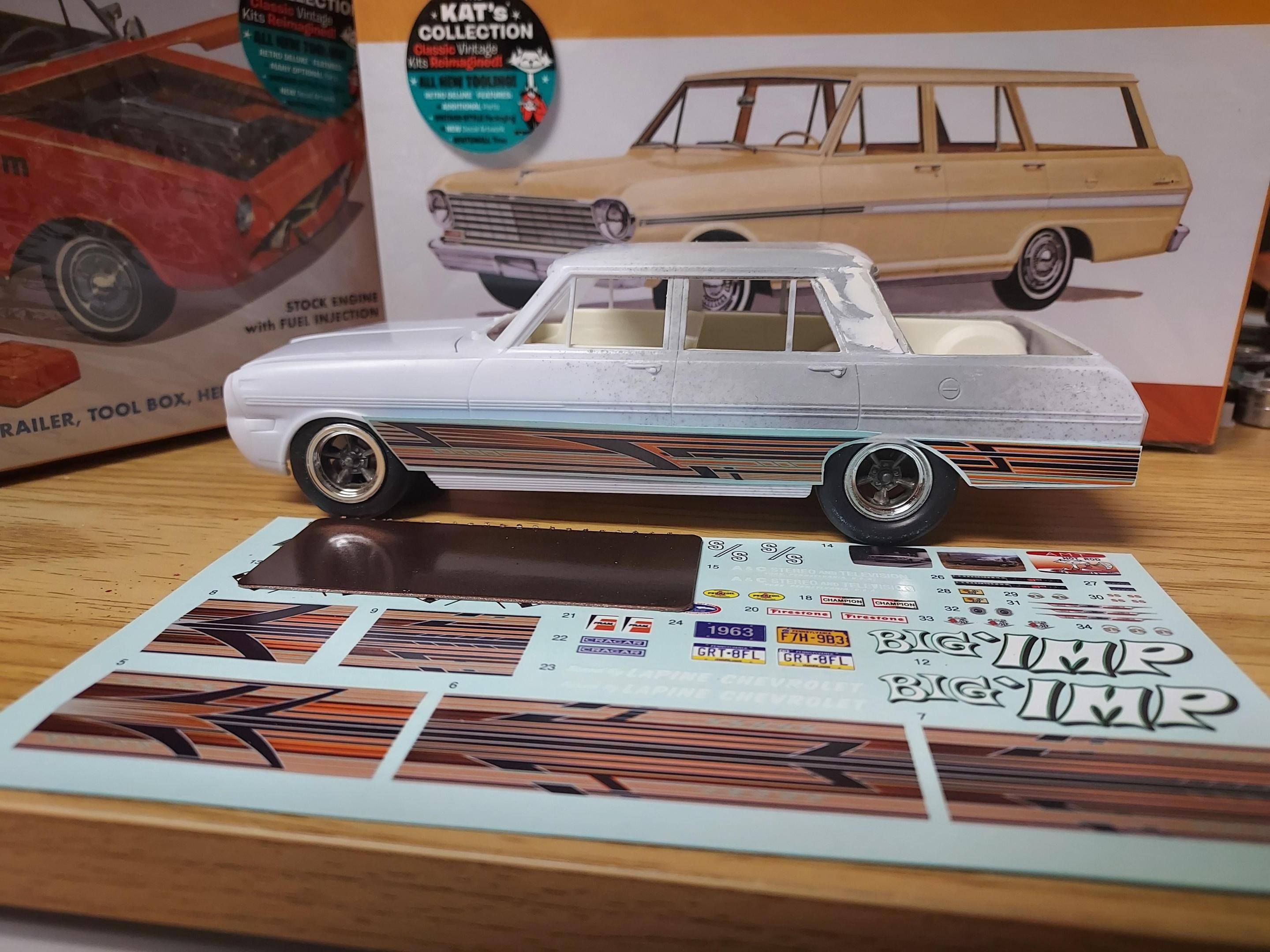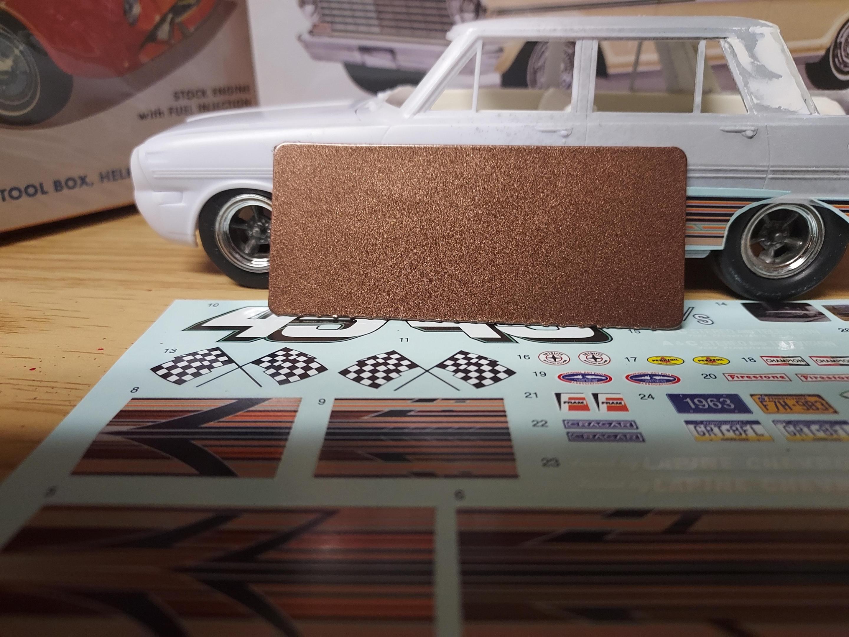 Progress did a spray out of the color for the Custom Hauler. I'm gonna put these decals on the car from the 63 Impala... with some trimming I think they will work great. The top will be Ivory... I'm loving the build! I've decided to SBC the car using the engine from the 66 Chevy II Pro-street... more on the way.