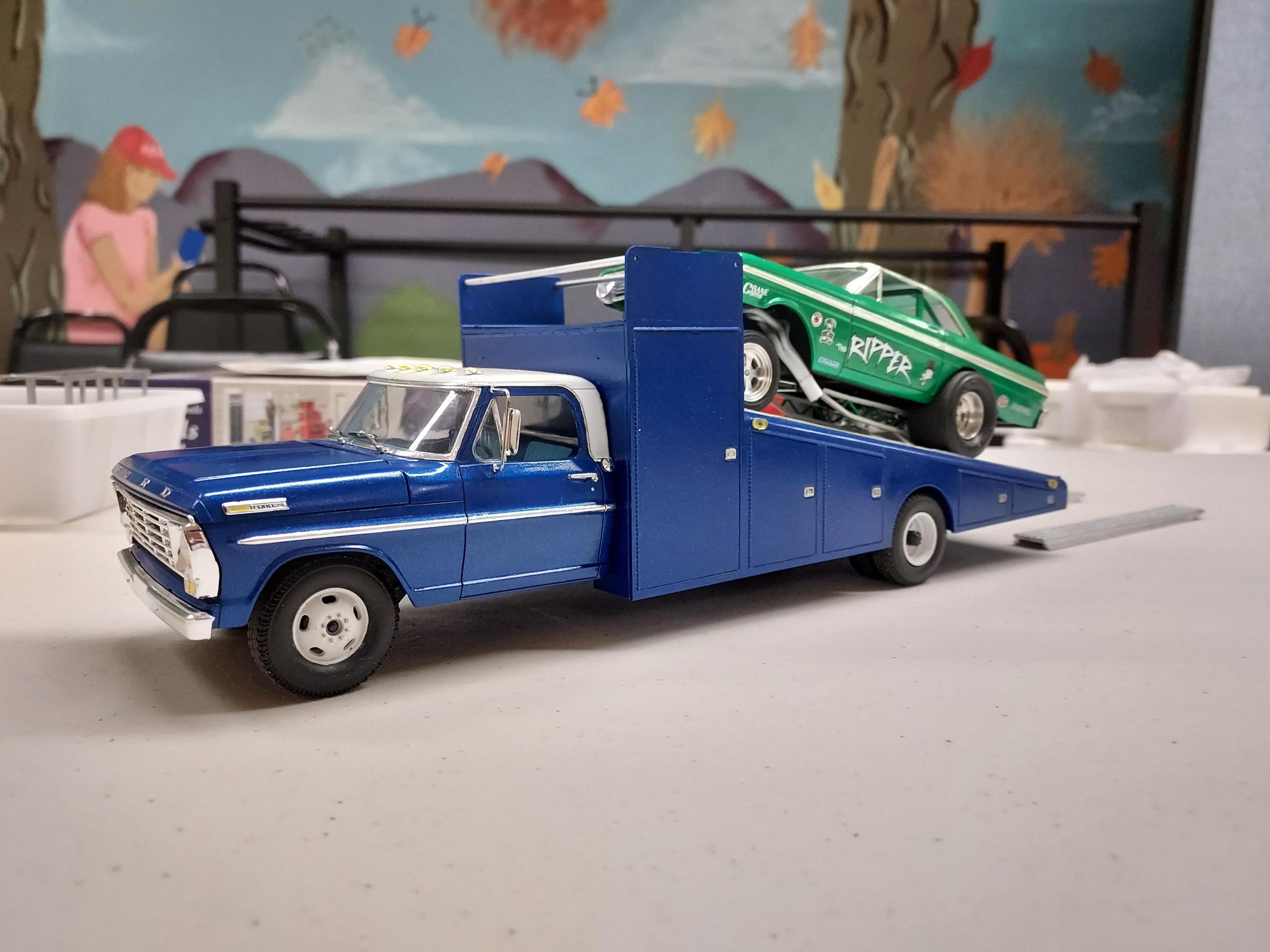 It went back to the original owner and he loved seeing in finished! Displayed it proudly in his curio cabinet. I had the blue Mustang on the rollback.