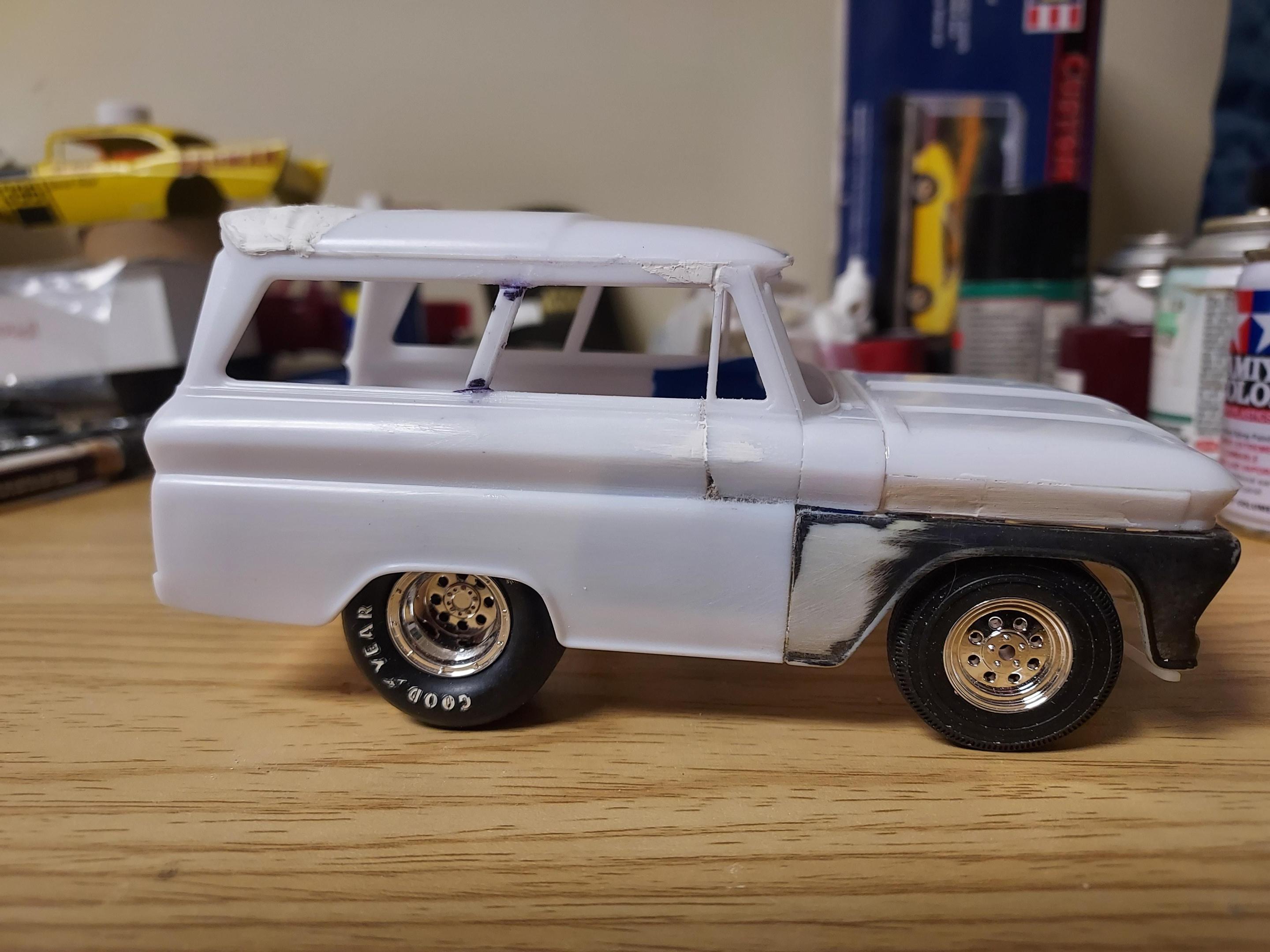 Impressive work goin on there! Snake head collectors are creative indeed. The chrome process seemed to work well for ya, nice results... ? I'm currently working on 3 or more kits at a time and this little guy fits the category fairly well for wild and custom so I'll share it here. This is leftover scraps from my cab forward project that I vowed would not go to waste. I was asked to build an Ice Cream truck so this will become the "Ice-Screamer" with a cooler in the back. A little shorty hotrod Prostreet Ice cream machine.