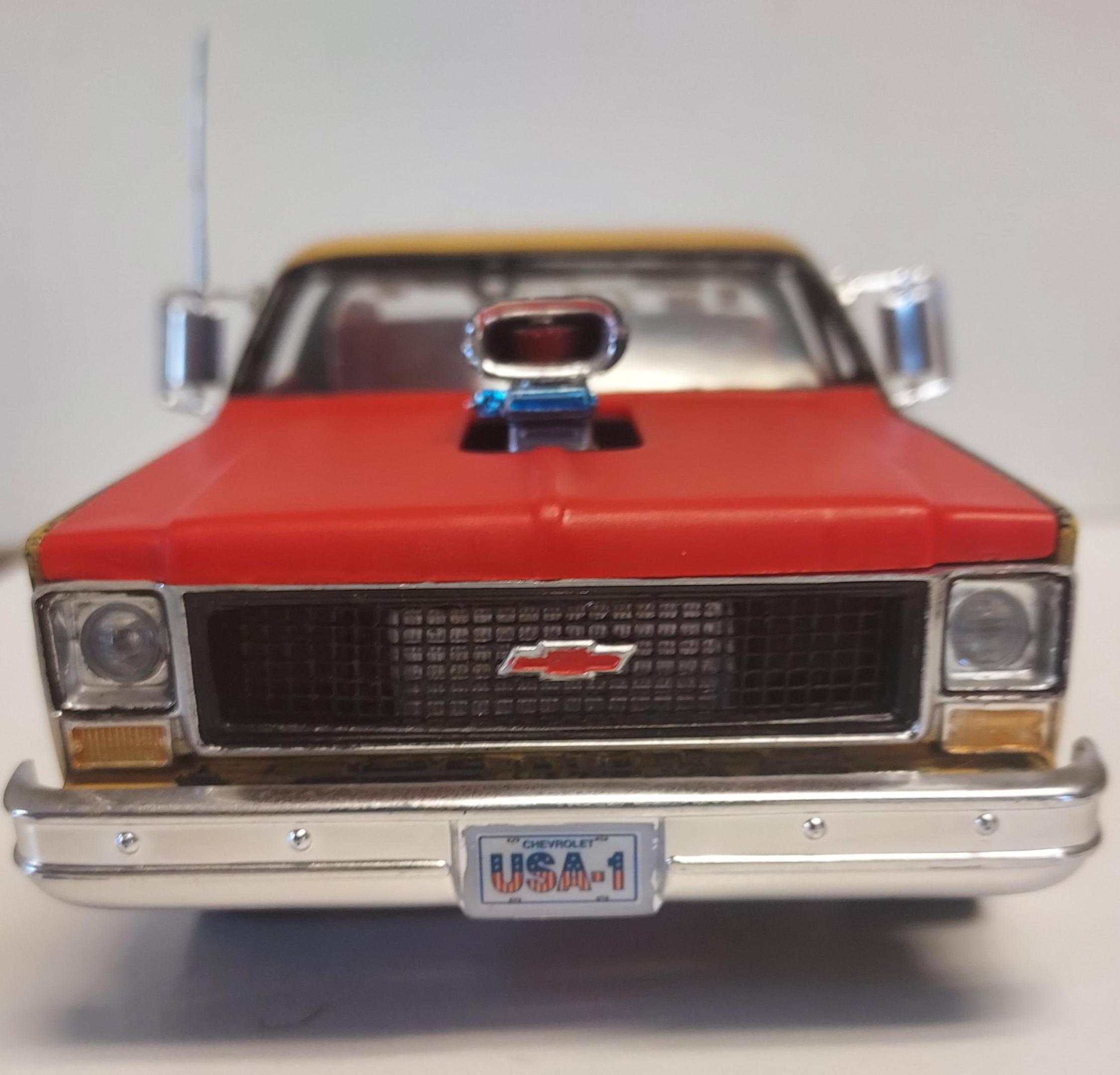 Here is my entry... The year was 1973 the Watergate investigation was in full swing, Carly Simon was at the top of the charts with You're So Vain, and everyone was piling into theaters to see American Graffiti and The Exorcist... but what was really on everyone's mind was that New Chevrolet bodystyle change. Brand new styling and designs over at GM had everyone wanting a New Chevrolet truck. I built my Cannonball ride in the from of a "Repo-man" "Grab-n-go" 1973 Chevrolet Longbed stepside Tow truck. The details include: A Big Block 427 with dual-quads on a hi-rise intake. Giant Sprint tires on Road tractor wheels. The front tires are swiped from a new Dodge Challenger. 3D pinted wrecker boom supplied by BCSmodels.com The front half of the bed features a built in fuel tank with two side gas tanks and the factory duel fuel tanks mounted on the frame. I think that much fuel may cost as much as the truck nowadays. ?? I hope I have enough to make the trip... I chopped the top, stretched and widened the bed, modified the grill to a 1973 only "open" grill, lowered the 4X4 suspension, tubbed the bed, narrowed the rear-end, and I boxed in the rear bumper to appear as a Pro-street when the tailgate is up. My inspiration came from an old toy I had called the Clyde's Car Crusher. The wrecker in the set was Yellow and Red... I added weathering using the salt treatment and fading the paint using vinegar and a toothbrush. Finally I added a 1988 Toyota Corolla FX to tow around for fun. ? Thanks agian to everyone for the support in continuing the Cannonball Run Community build. This was a fun build as it came down to the wire for me this year! ? -