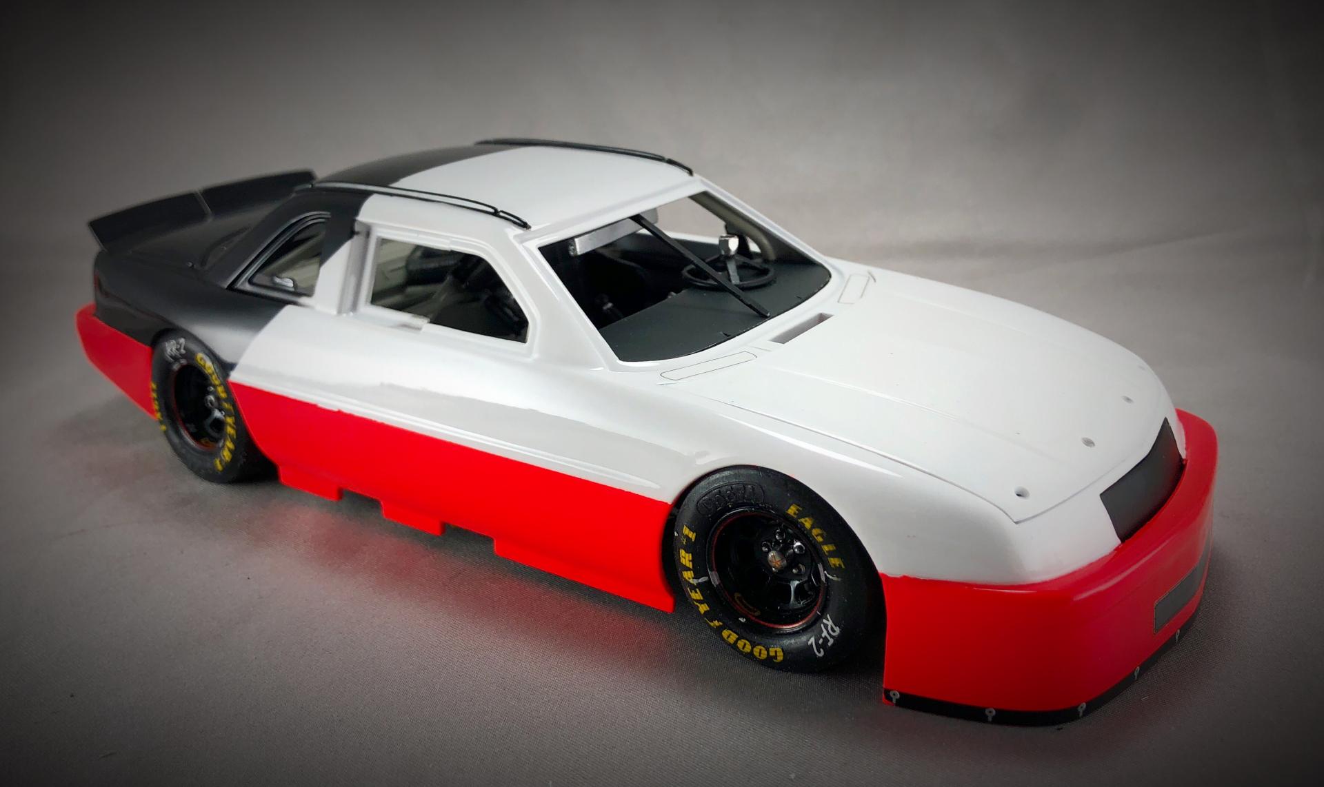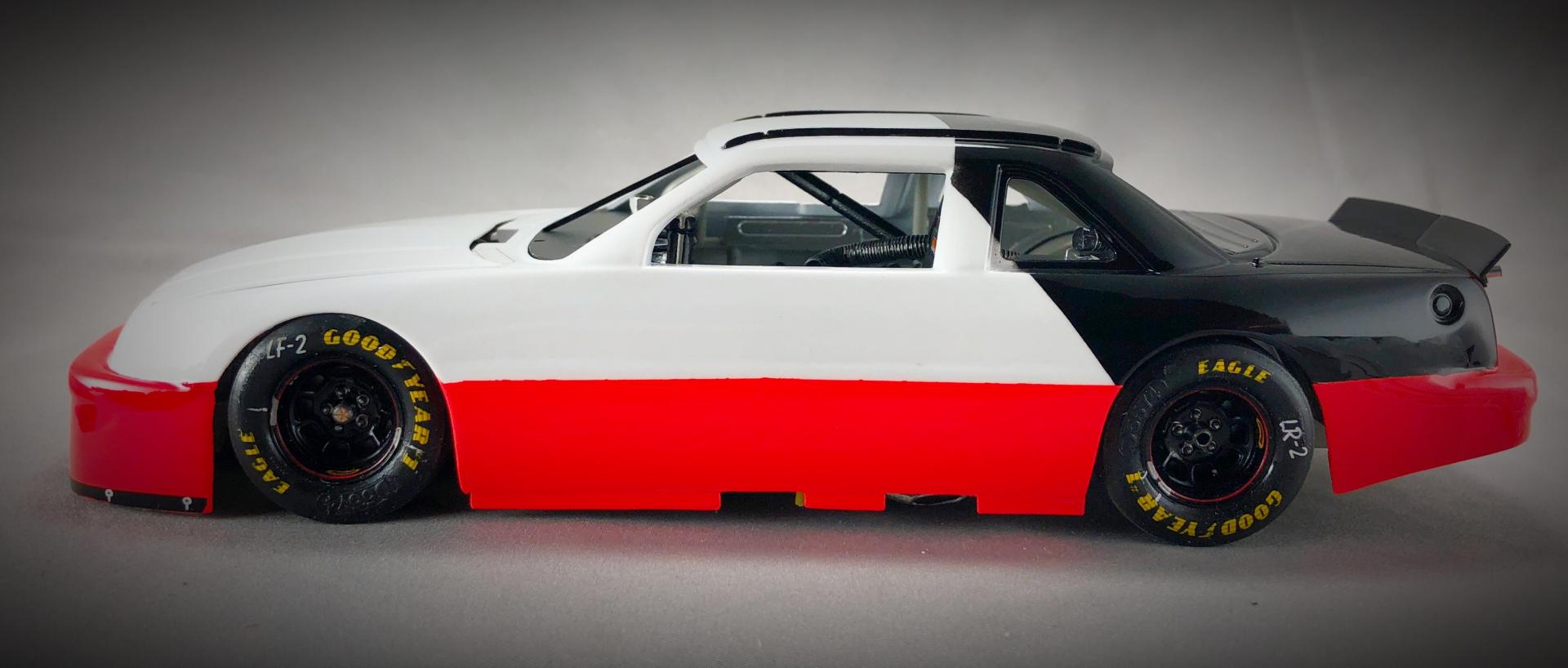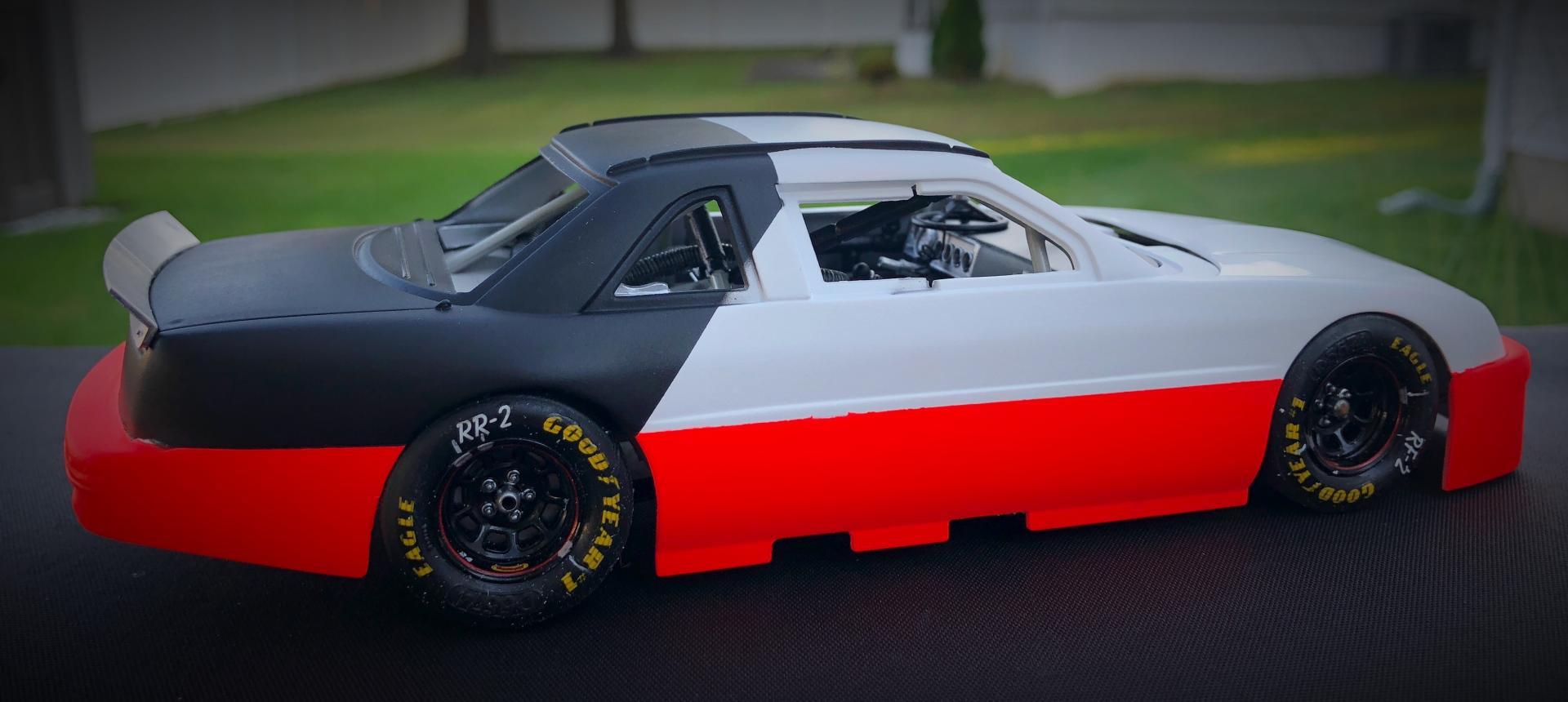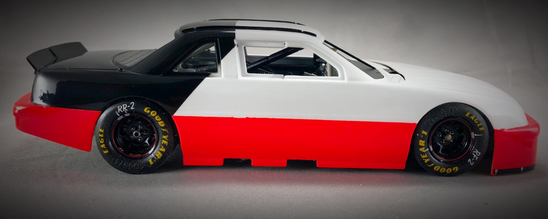 I was going to keep this quiet until the Atlanta NNL, but I’m not good a keeping secrets! This will be DW’s 1993 Daytona car. I’ll be using the upcoming new Powerslide sheet. I modified the 89/92 Lumina to 93 specs using the Powerslide front/rear bumper set. The paint is Tamiya neon red, black, and white. I’ll clear this with Gravity tomorrow, wet sand, and polish, then wait on the decals. They hopefully should be in in a few weeks.