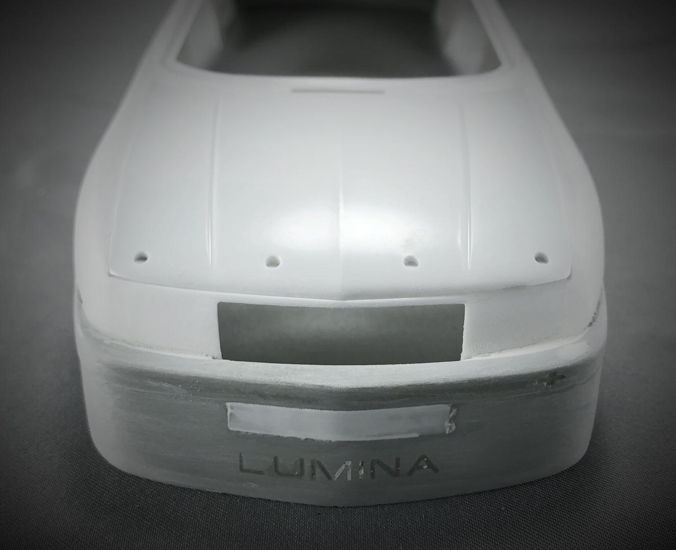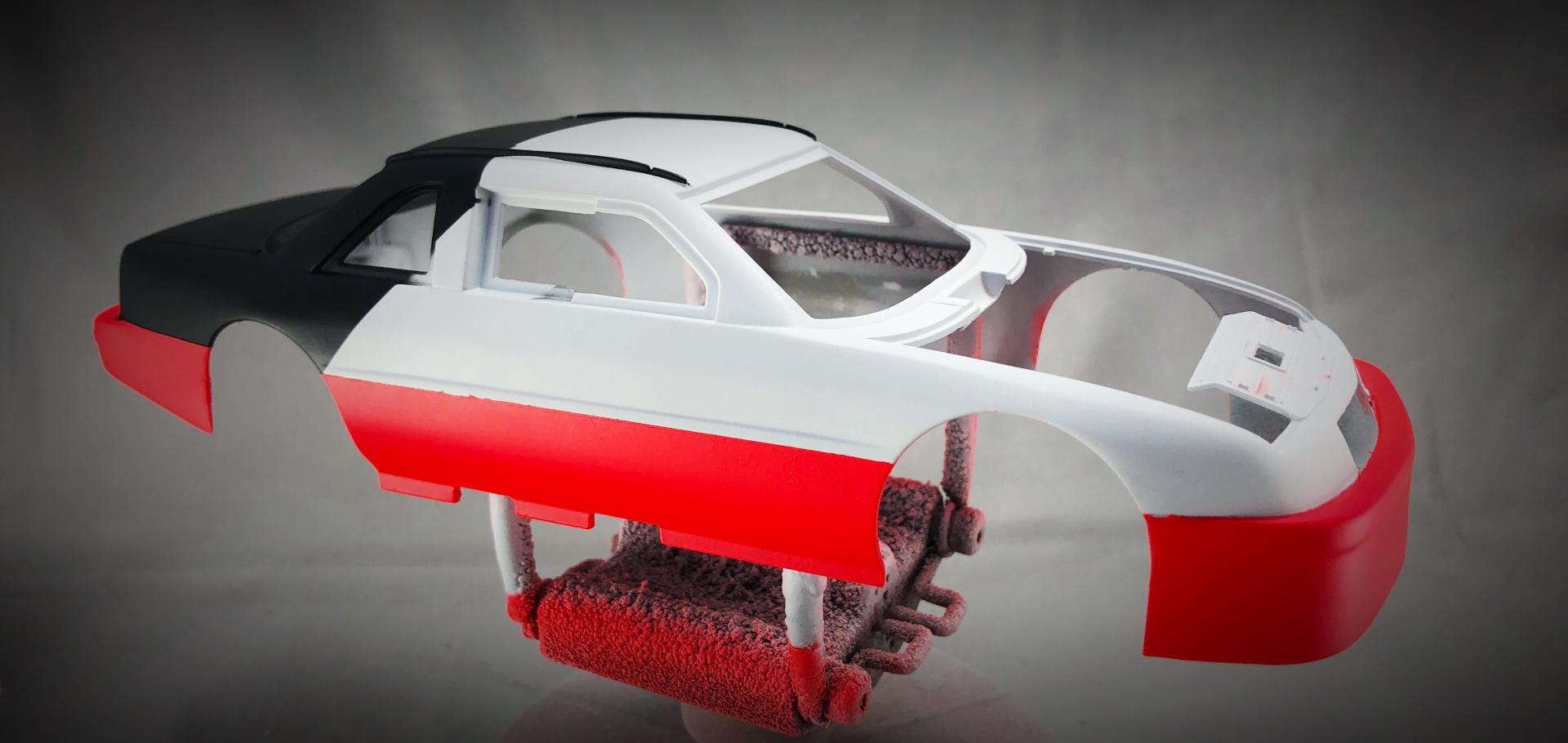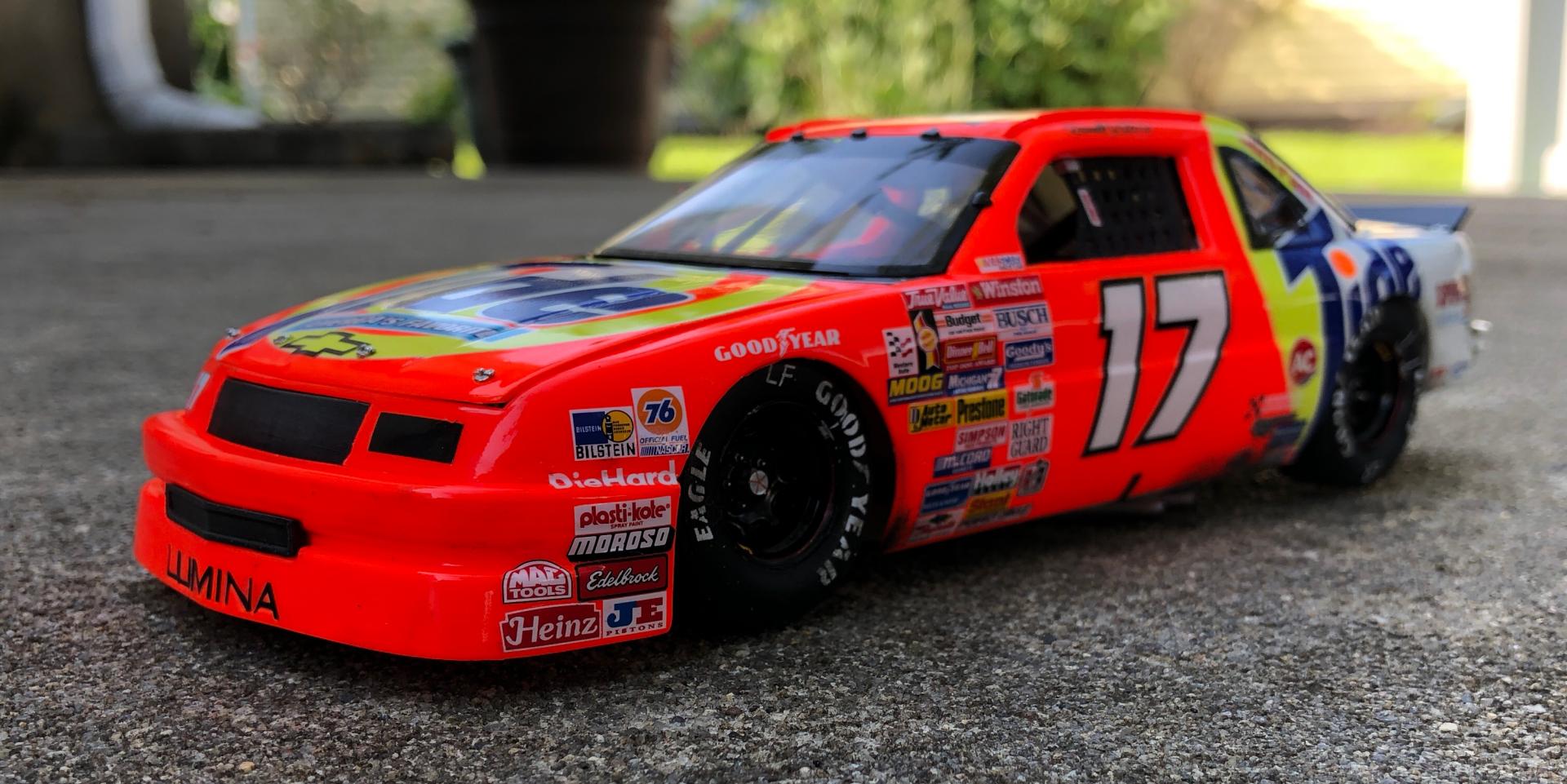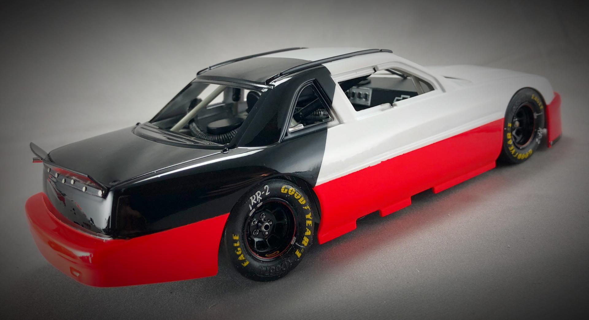 I was going to keep this quiet until the Atlanta NNL, but I’m not good a keeping secrets! This will be DW’s 1993 Daytona car. I’ll be using the upcoming new Powerslide sheet. I modified the 89/92 Lumina to 93 specs using the Powerslide front/rear bumper set. The paint is Tamiya neon red, black, and white. I’ll clear this with Gravity tomorrow, wet sand, and polish, then wait on the decals. They hopefully should be in in a few weeks.