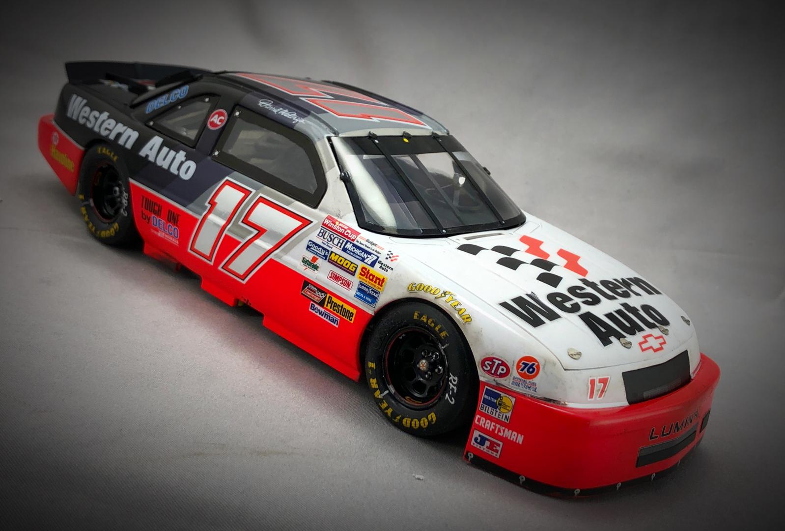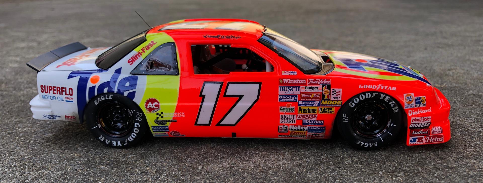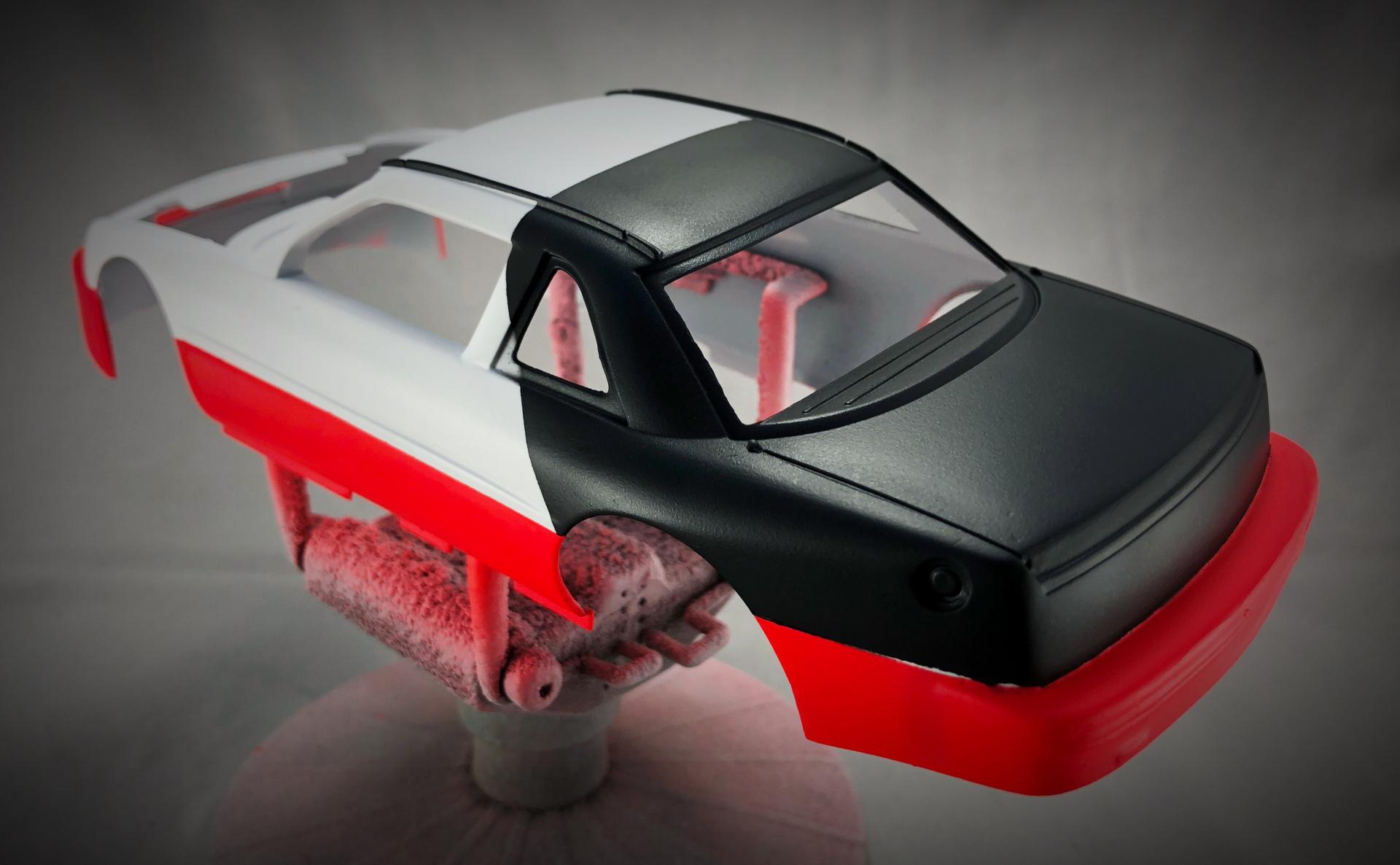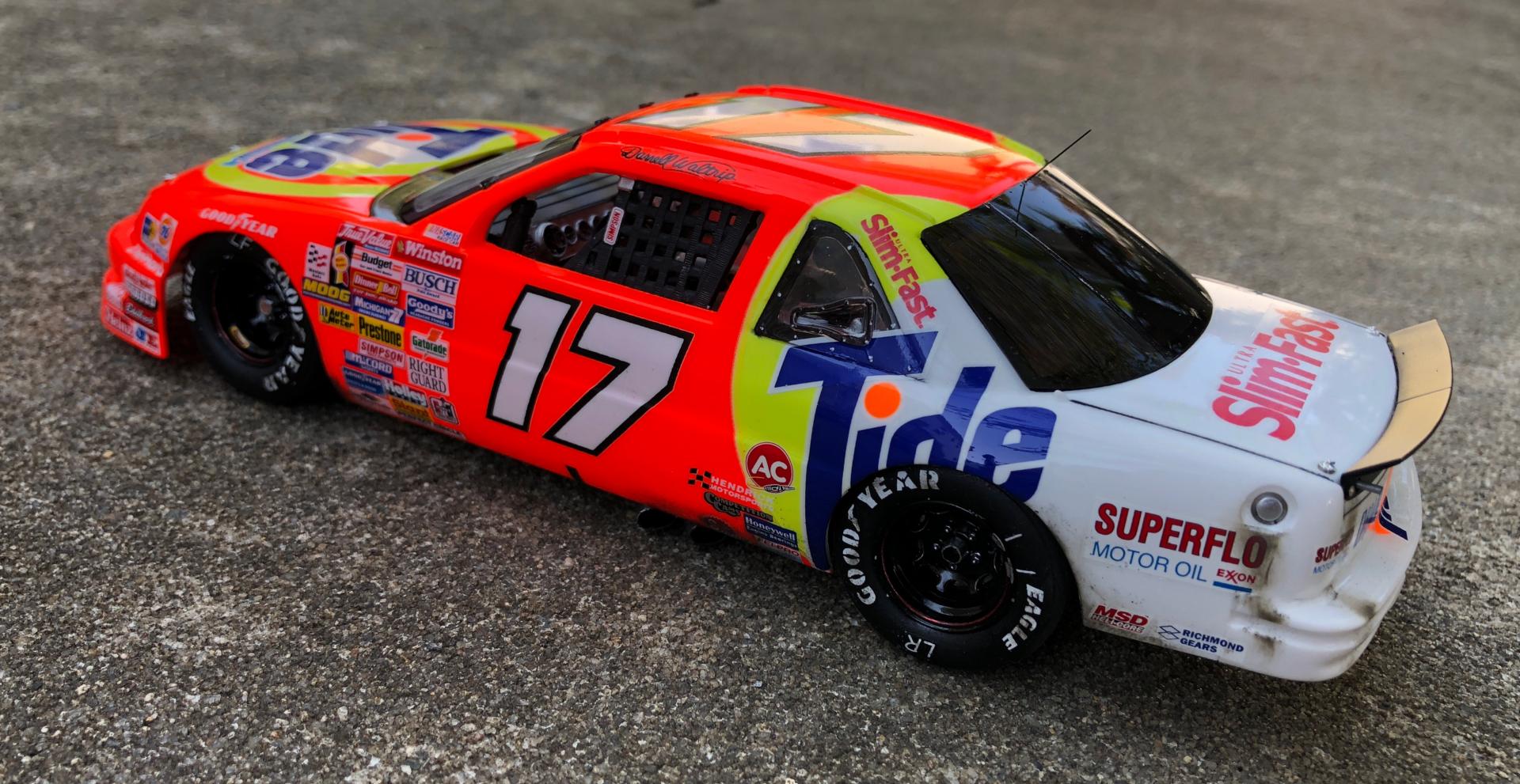 I was going to keep this quiet until the Atlanta NNL, but I’m not good a keeping secrets! This will be DW’s 1993 Daytona car. I’ll be using the upcoming new Powerslide sheet. I modified the 89/92 Lumina to 93 specs using the Powerslide front/rear bumper set. The paint is Tamiya neon red, black, and white. I’ll clear this with Gravity tomorrow, wet sand, and polish, then wait on the decals. They hopefully should be in in a few weeks.
