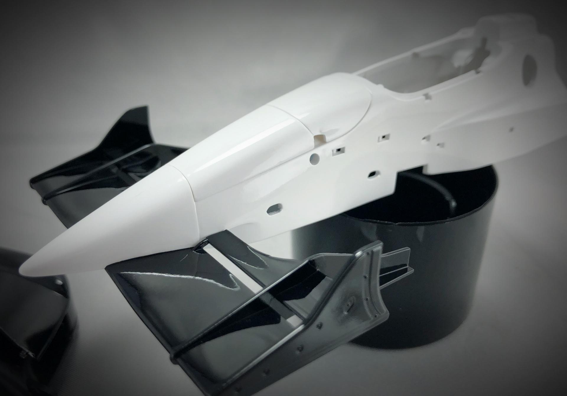 This will be headed to Atlanta with me next month. I used the Tamiya Lola snap kit and Shunko decals. Paint is all Tamiya, no clear, just polished out with Gravity polishes. I filled the seam on the lower nose too. I should have this wrapped up in the next week.