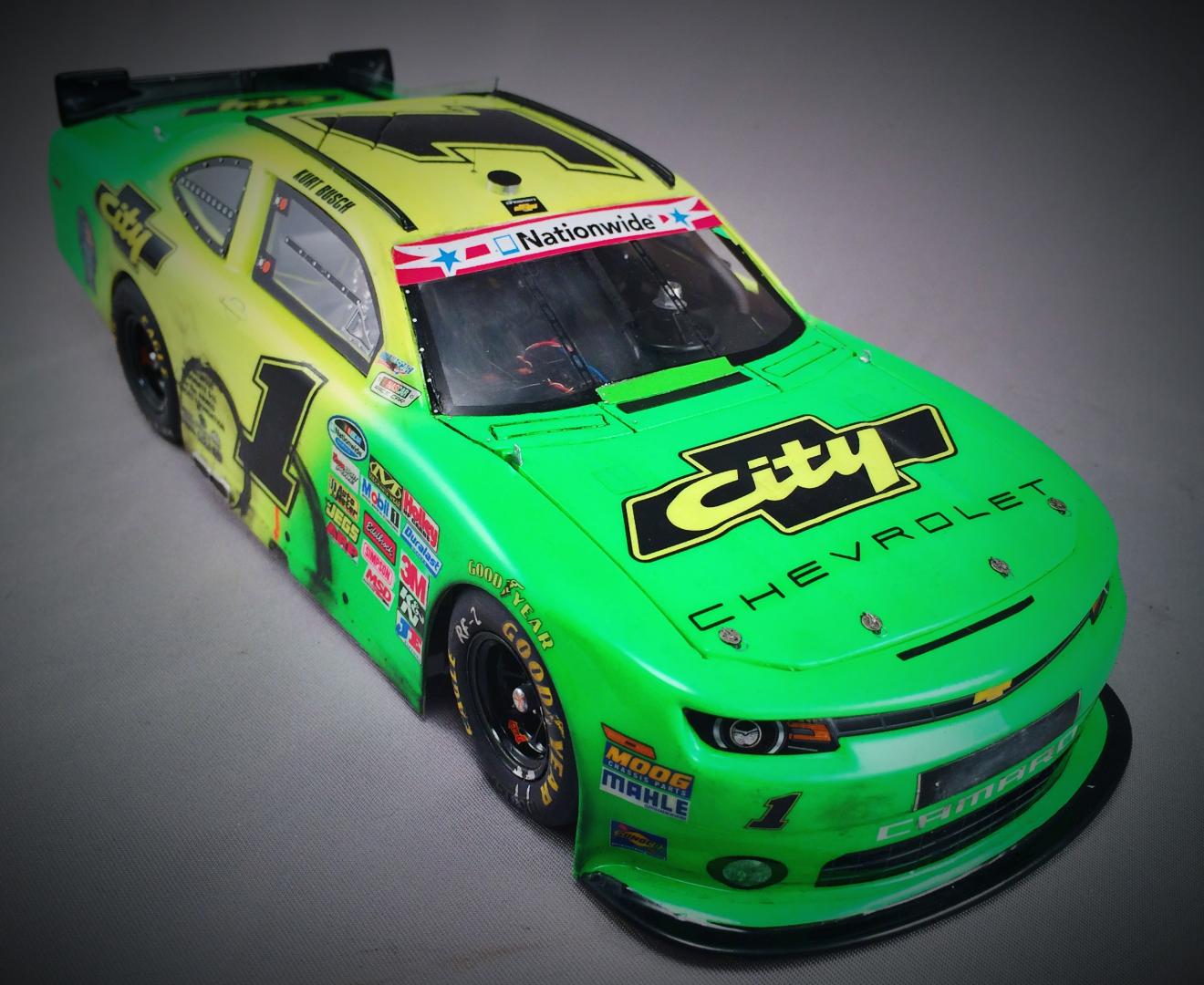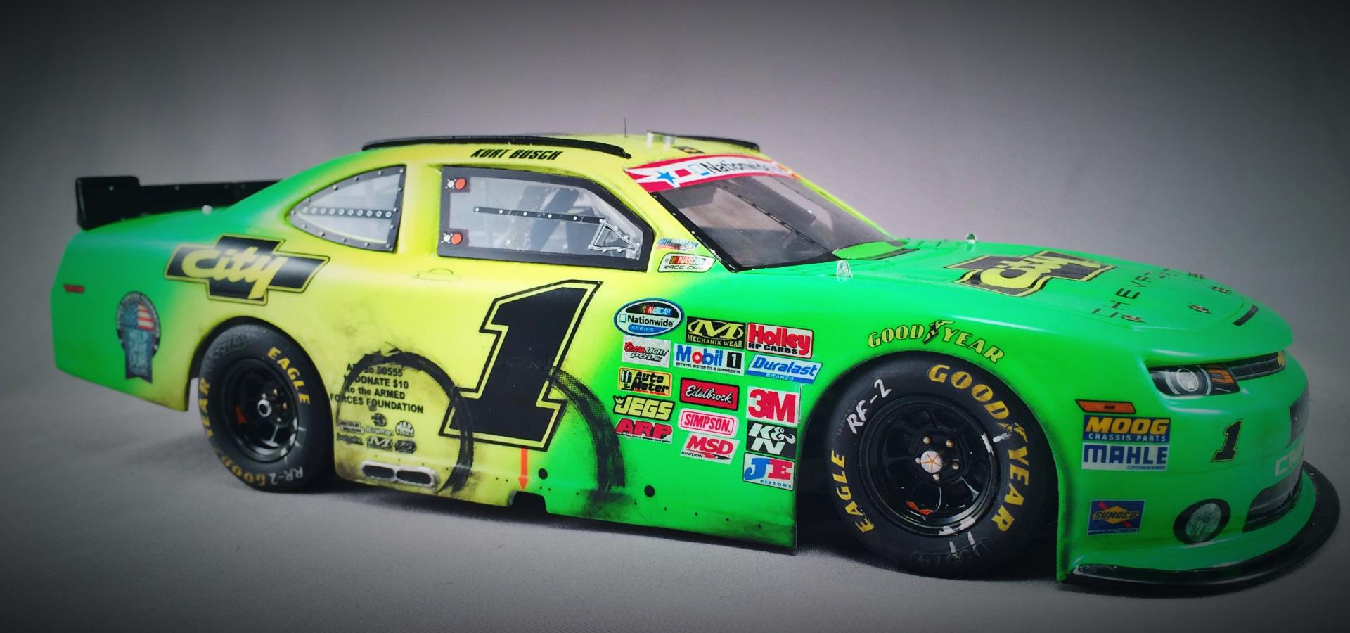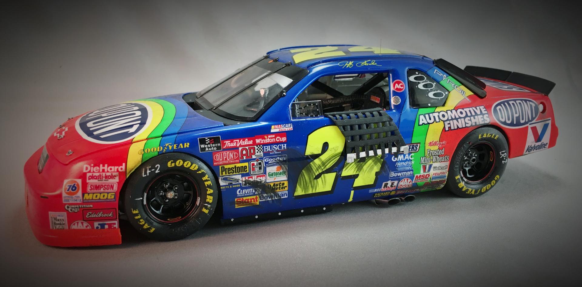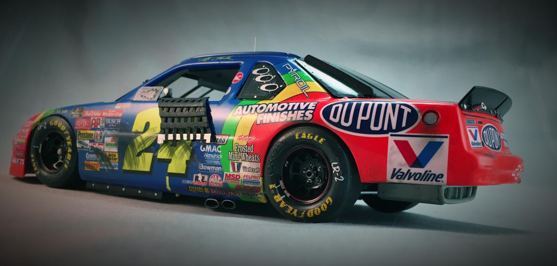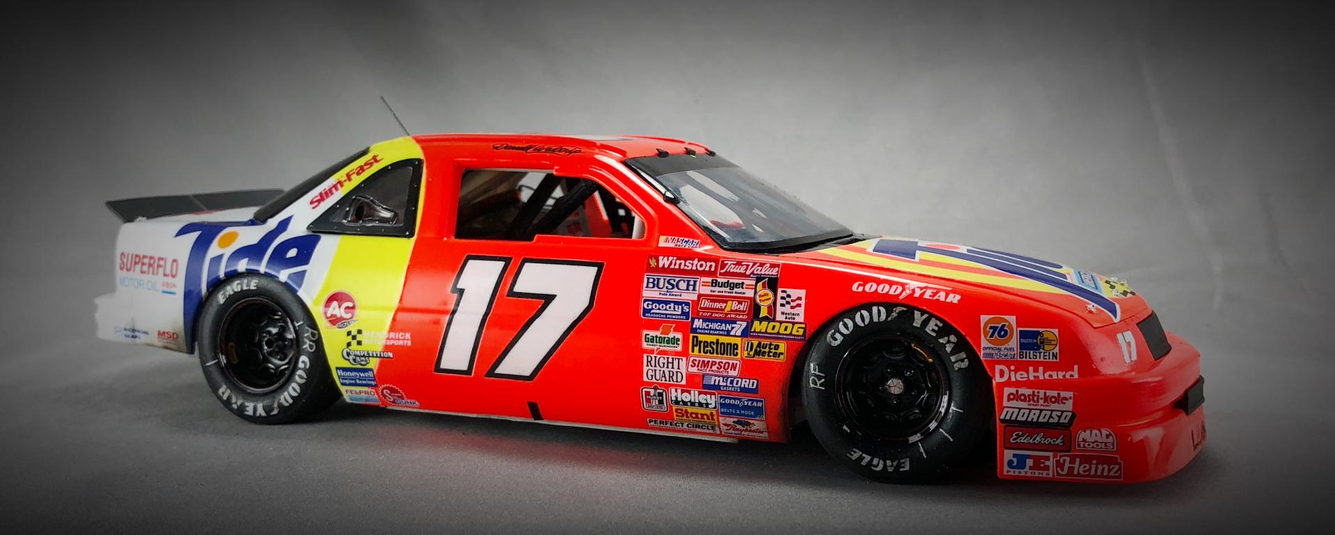 Finally finished this thing! Paint is Tamiya neon orange and white, Powerslide decals, and 2 part clear from Gravity. My good friend Clay Kemp helped with the Ultra Slim Fast decals so I could do the late season car, after Darrell returned from his broken leg. I also lowered the stance for a more aggressive look.