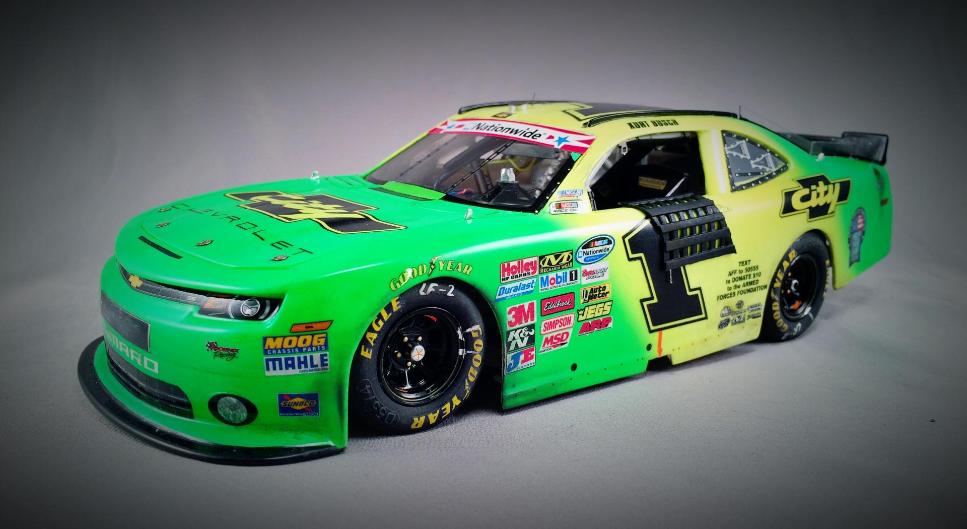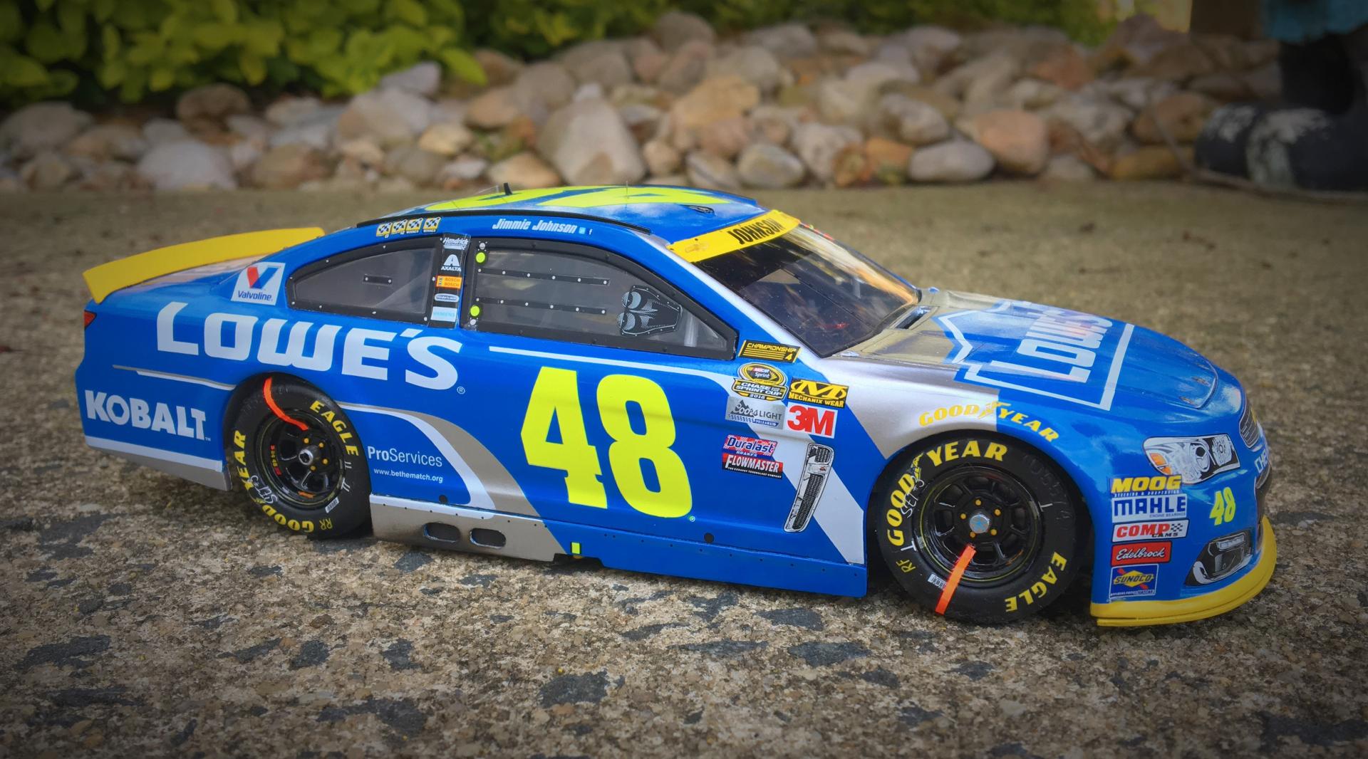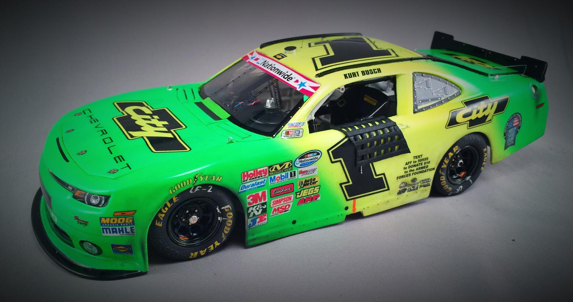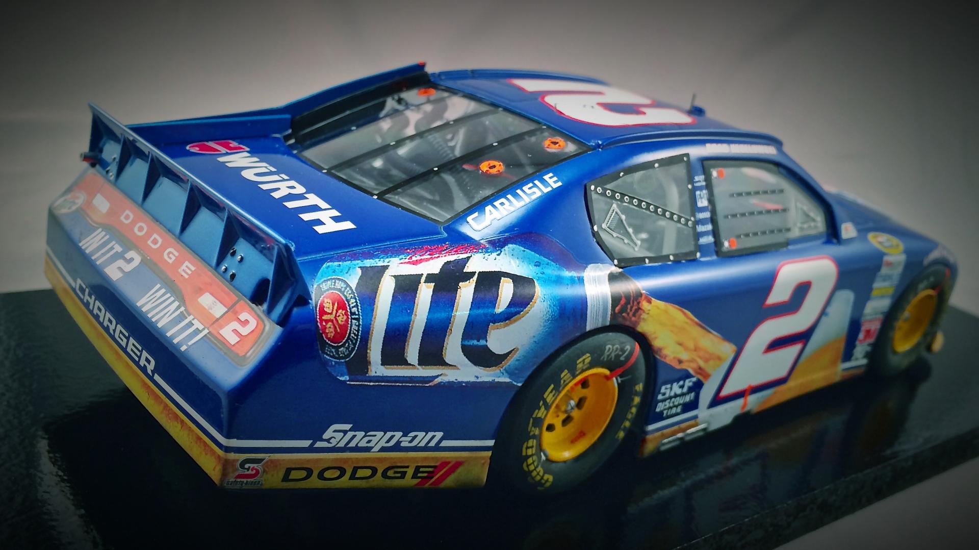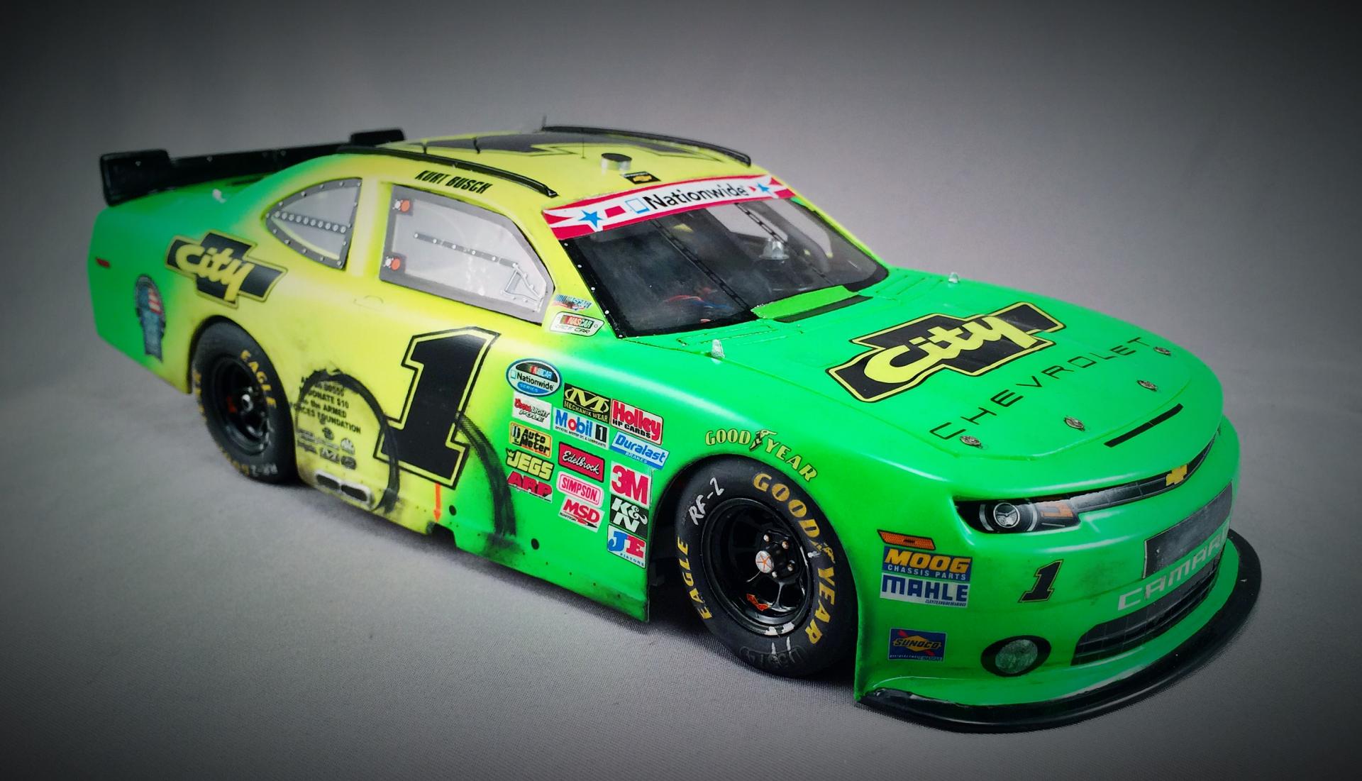 Finally finished this thing! Paint is Tamiya neon orange and white, Powerslide decals, and 2 part clear from Gravity. My good friend Clay Kemp helped with the Ultra Slim Fast decals so I could do the late season car, after Darrell returned from his broken leg. I also lowered the stance for a more aggressive look.
