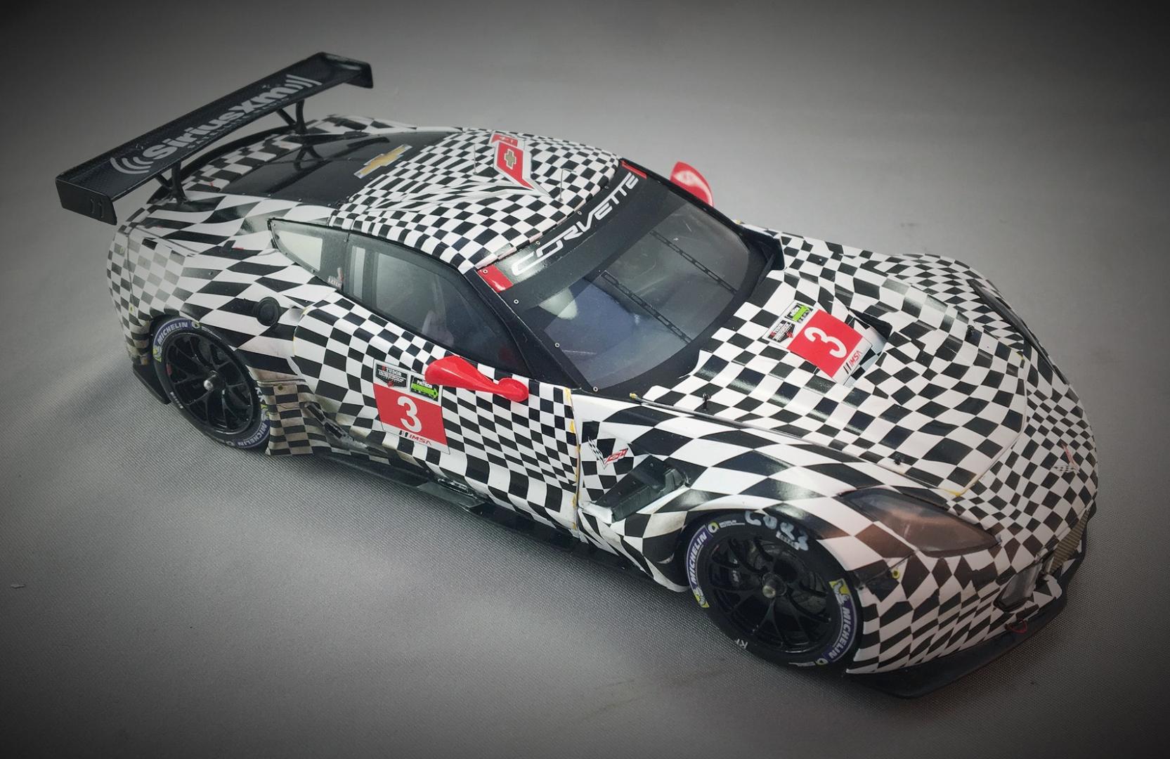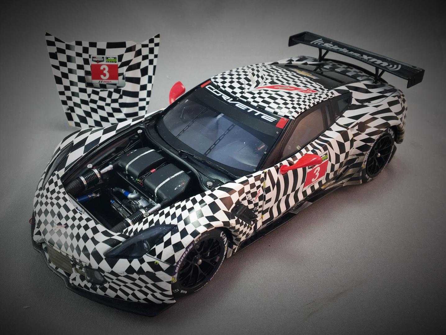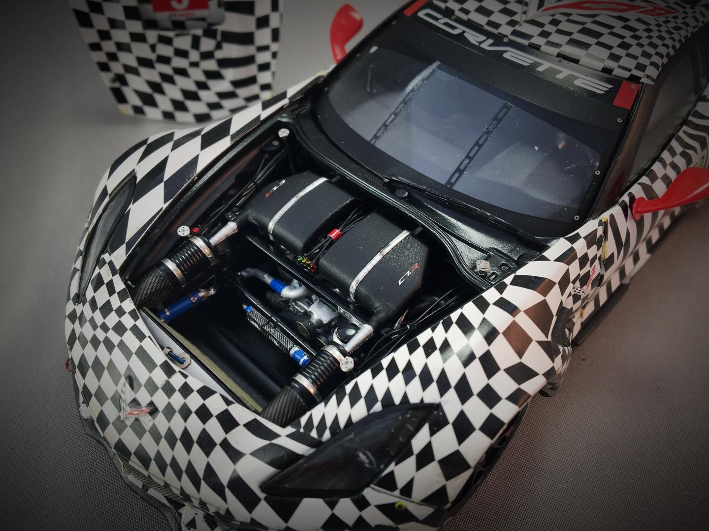The new Revell C7R kit with SMS decals and trans kit. I also added additional under hood details and wiring.