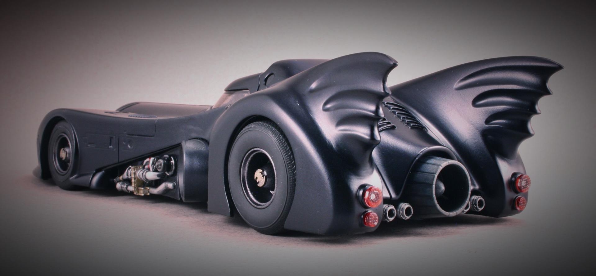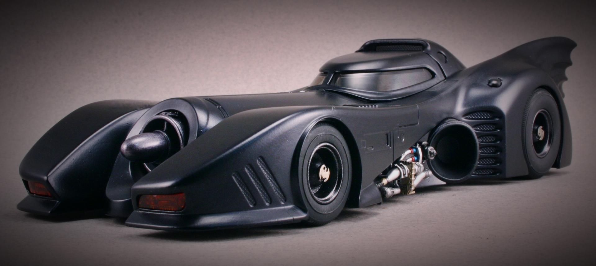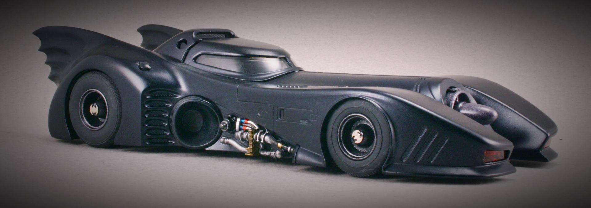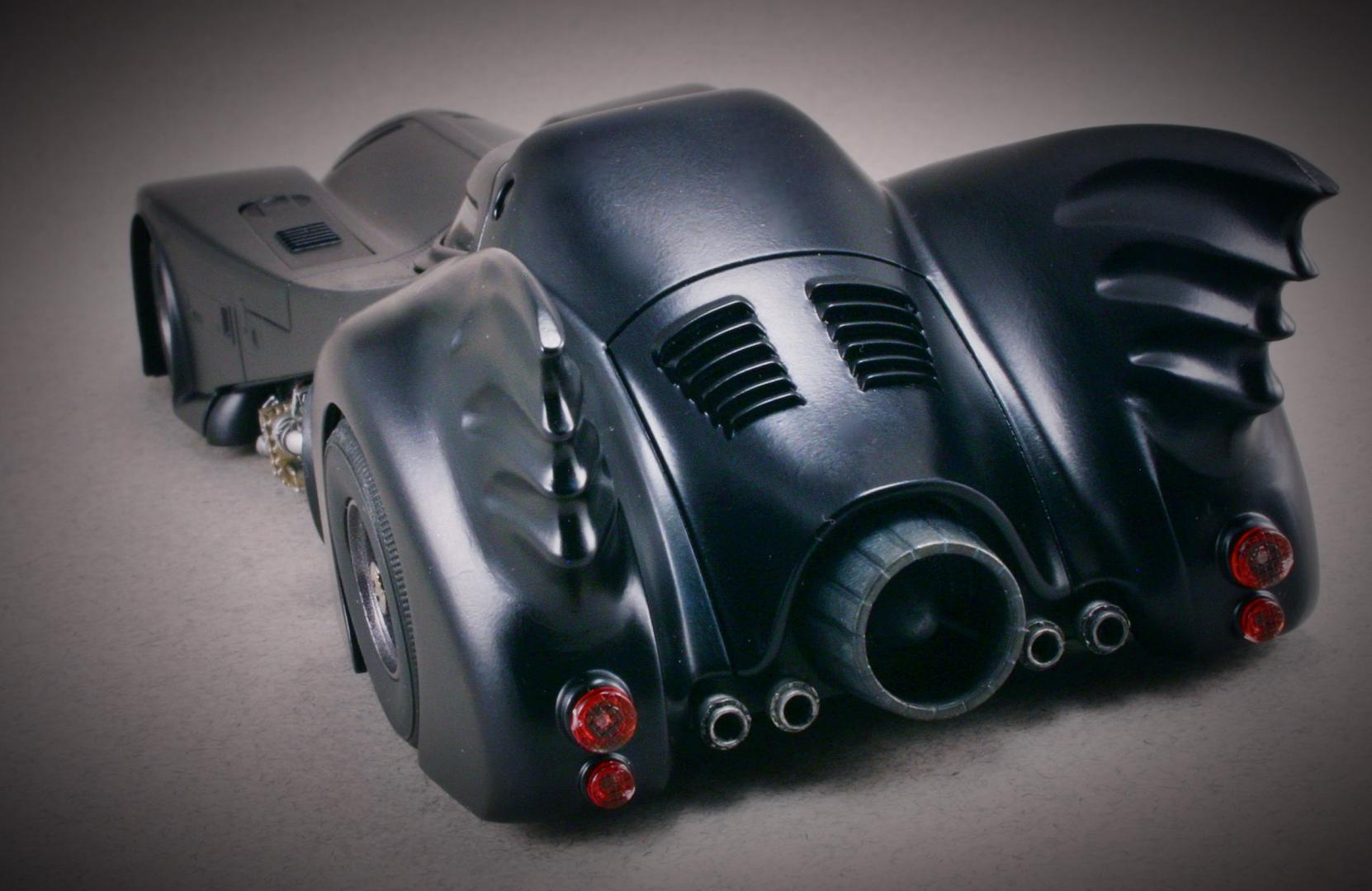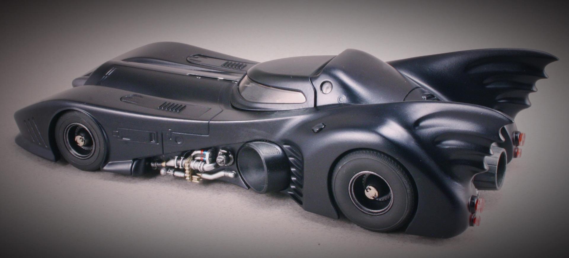 Michael Keaton’s 1989 Batmobile. This is a Bandai 1/32nd scale kit. I used Honda nighthawk black pearl with Tamiya dull coat. The real car was layered with several different colors to get the look Tim Burton was looking for on screen. There was a bluish hue to the paint.