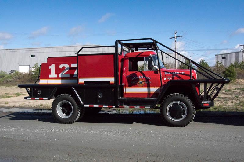 And another build begins. I don't have any specific information yet on the truck itself. That will be forthcoming. However, I do have a photo of the rig to be built. Originally built by the Maxim Motor Company of Middleboro, MA, it was recently upgraded with new body and bar work as well as a new paint job. The upgrade is more in line with current practices of shortening up the rear of the body and making it higher. The reason is to allow the truck to transition from dirt roads to the adjacent woodlands without bottoming out. Gone is the concept of a low rear step where the crew would ride. As with the Loadstar dump I will be posting in progress photos and some how to's along the way. On this model the doors are going to be opened as well as the butterfly hood. In the photo below you will see the right side door has already been separated from the cab and the hood sides have been cut free of the center section. It was a pretty easy thing to do albeit a rather tedious one. The resin casting scribes well with the back of a sharp Xacto knife and a razor saw. Real care had to be taken around the corners of the door and where the door line is rounded near the bottom of the windshield. With the doors free, they will be sanded smooth inside and made more adaptable to the inner door panels. There was a bit of a learning curve with the vacu-form machine to get a nice clear windshield. I found a source for good clear plastic that is pre-cut to fit the machine and the results have been pretty nice. Once trimmed to fit the windshield just pops into place and no gluing is necessary. Dave Natale did a great job of casting the windshield trim without any flaws and that made the fitting of the windshield real easy. The benefit of the vacu-formed windshield is that there is no stress on the plastic and with a good fitting buck for the plastic to form against in the machine, all it needs is trimming around the edges. In the photo below you can also see that the grill was opened up as well. Again Dave Natale did a great job with the casting by leaving just a thin skim coat of resin on the back of the grill. It is easily removed with an Xacto knife and then the opening can be cleaned up with a small flat file. I also set the floorboard/firewall in place as it comes as a separate piece in Dave's kit. The opening between the cab rocker panel and the floorboard will be filled in with plastic stock to stiffen the cab and make for a clean fit for the separate door. Six spoke wheels are used on this truck. The fronts are covered with a full hub that covers the inner workings of the all wheel drive feature of the front axle.