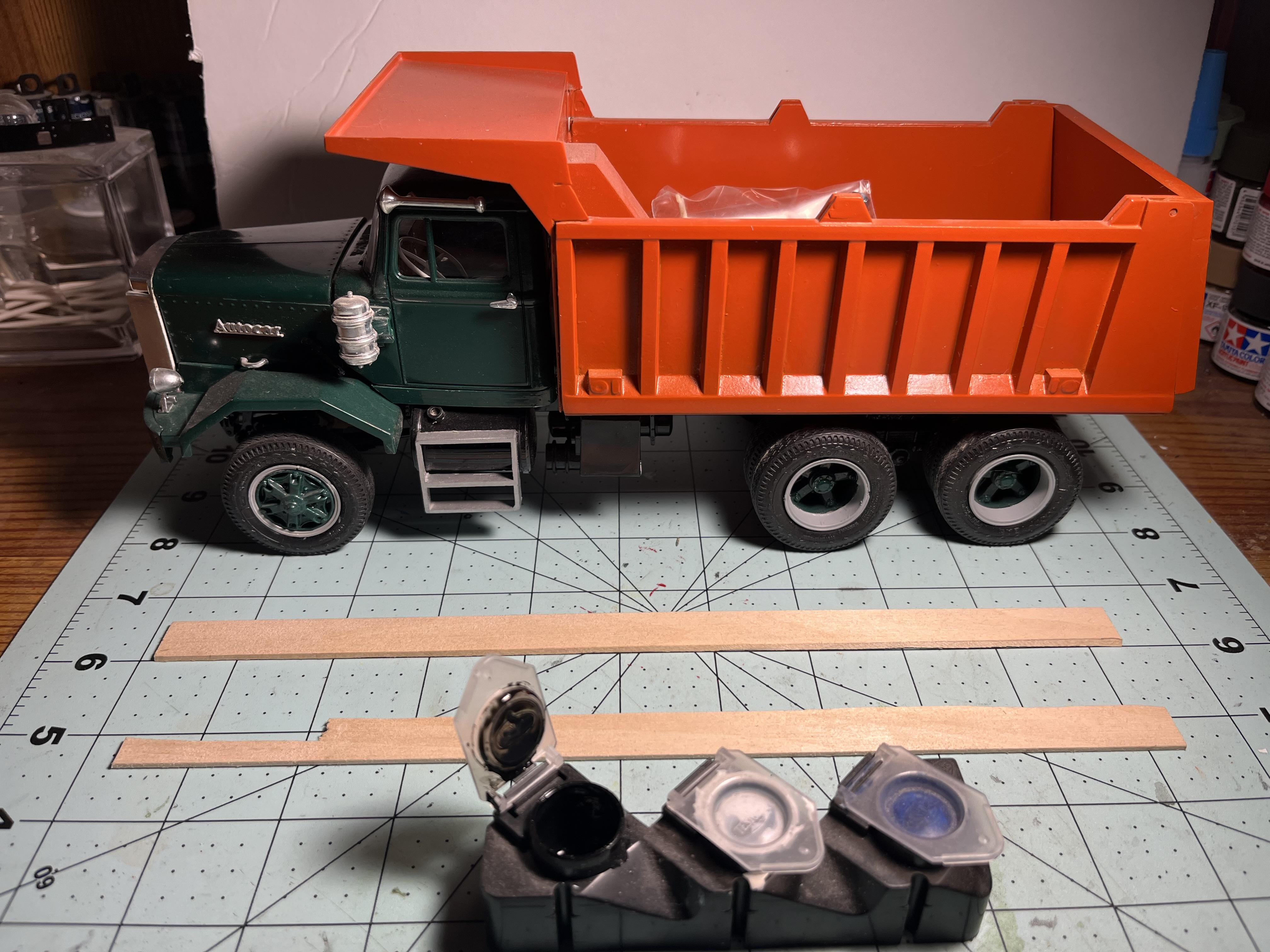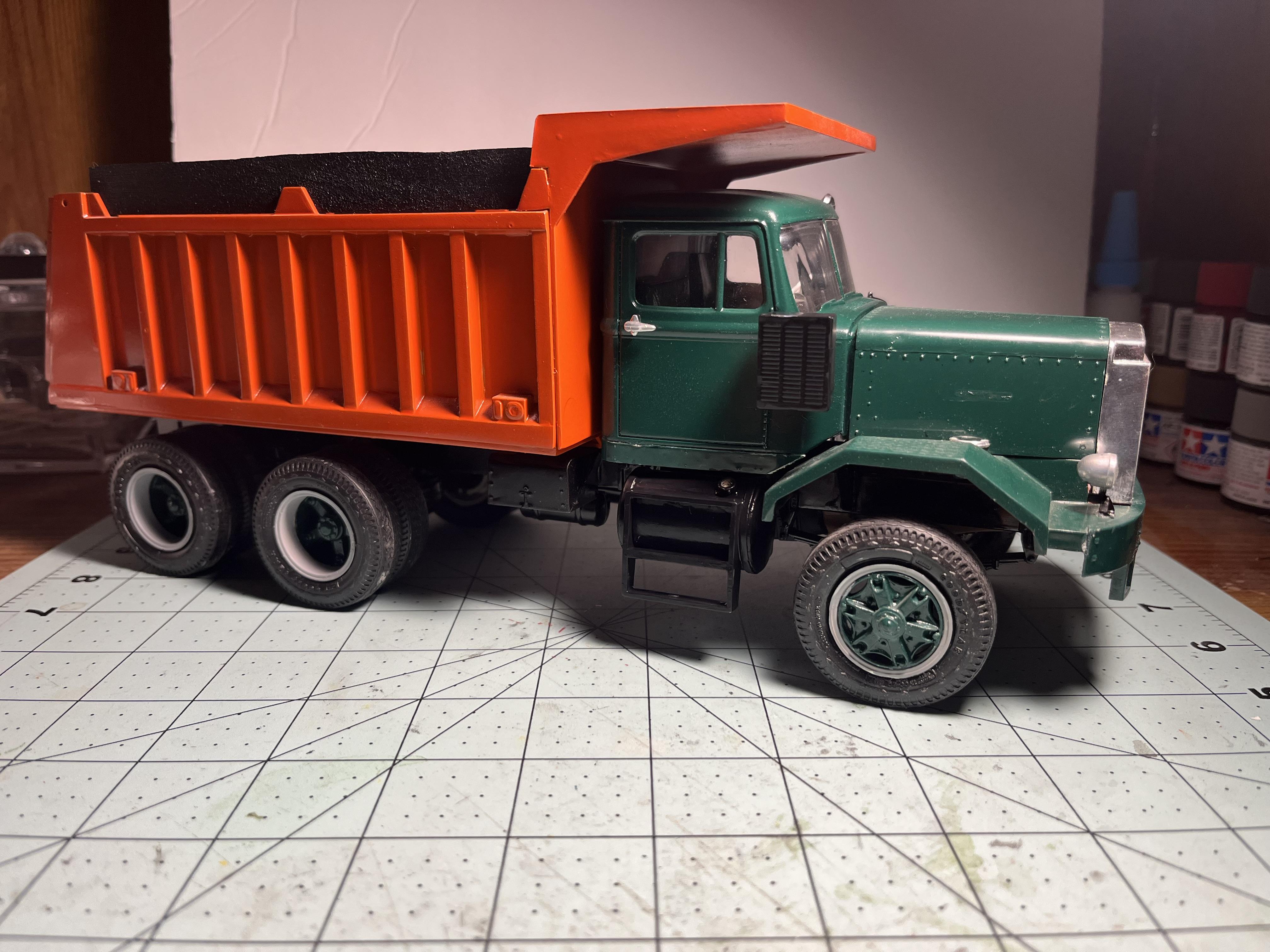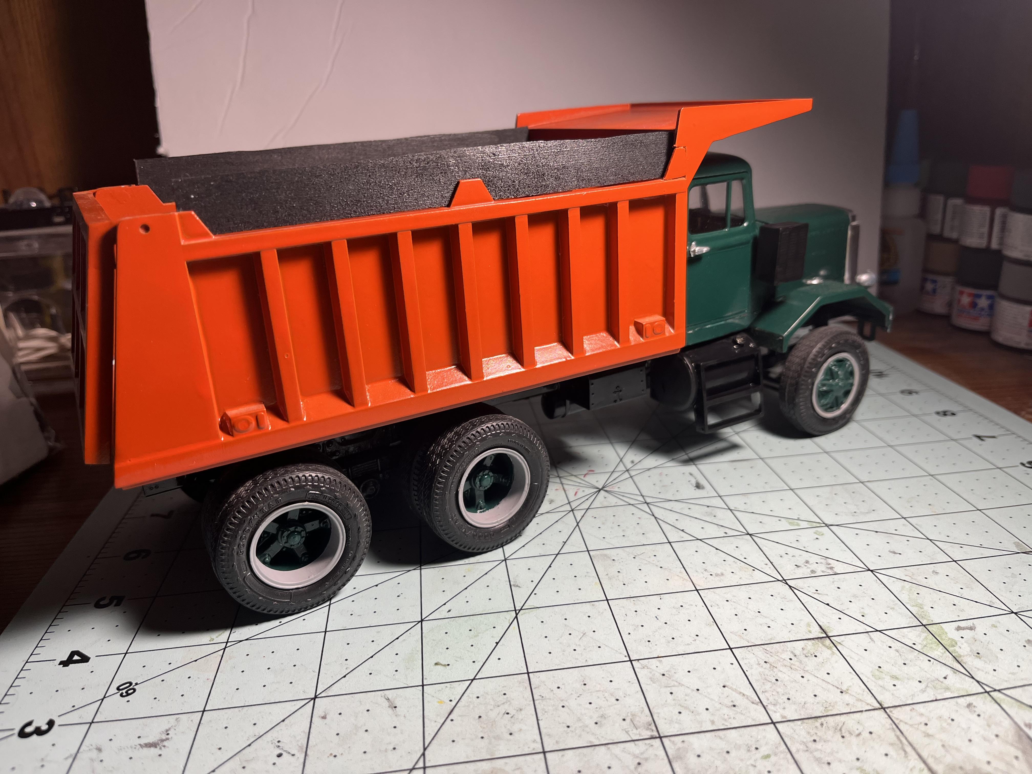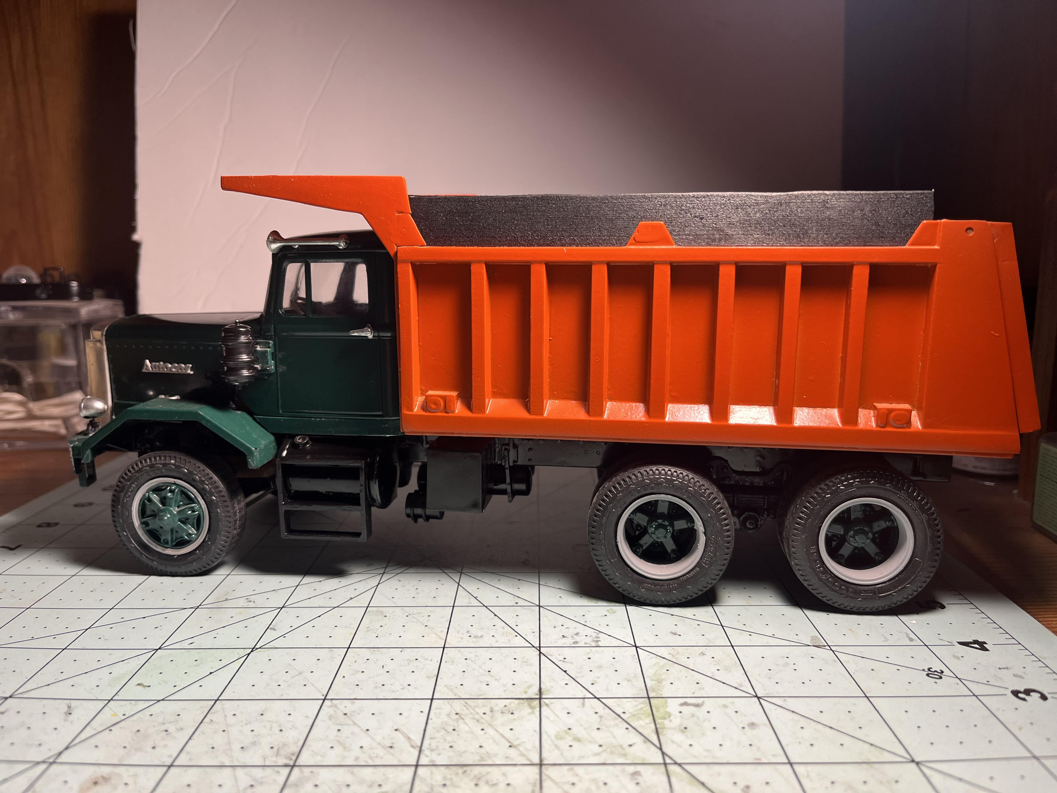Thanks Jeff I appreciate the compliment and noticing that air horn. I think I got the idea from the second issue of this kit where it shows the built model. That model kit was my first Autocar Dump truck kit. I was 16 years old when I got it. Thanks for mentioning the tailgate latch I will be adding that also I was going to leave it off but it will look better on as you stated. Keeping it old school
