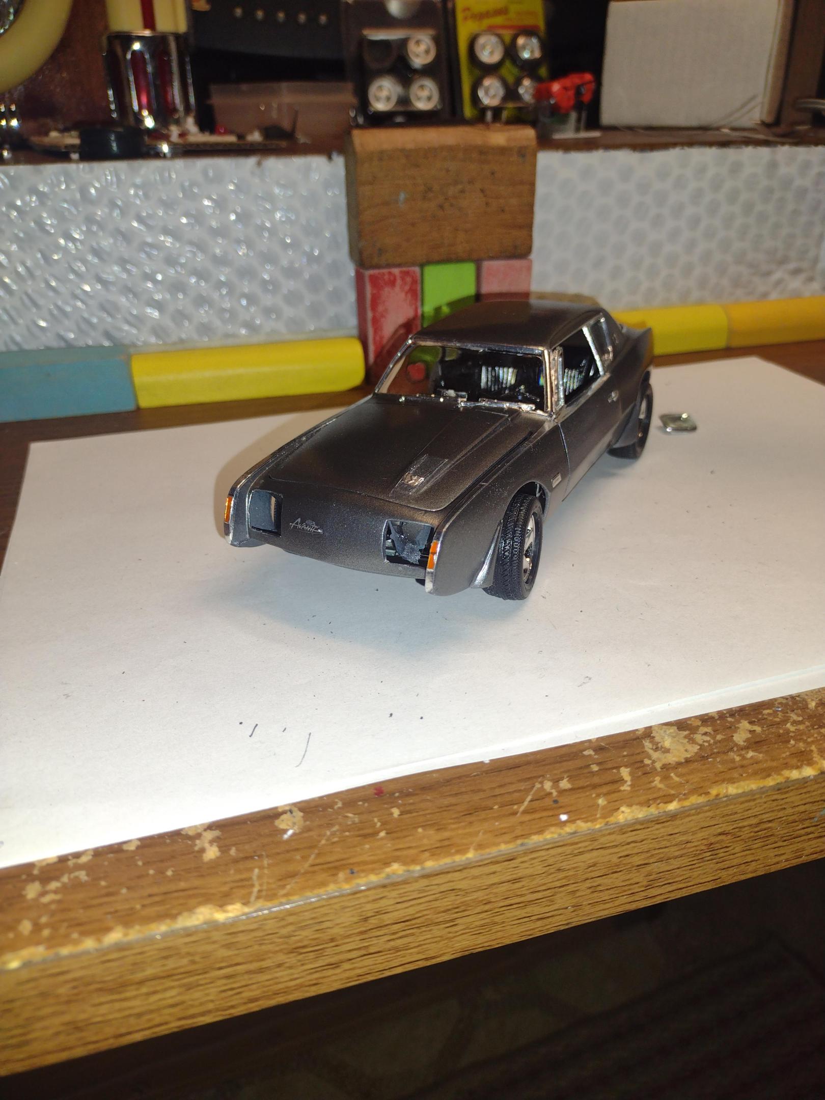 Always thought trans am fender flares would look good on the Avanti, so I gave it a shot. Look closely at the chrome accents down the top of the front fenders and doors.