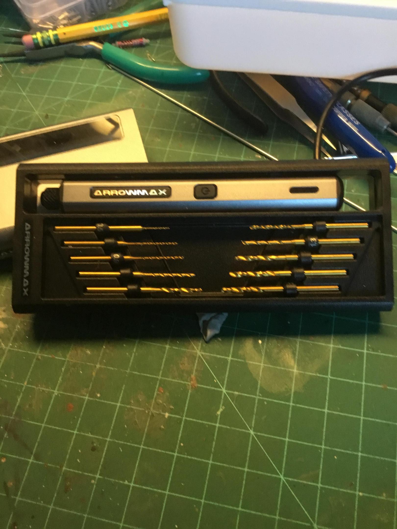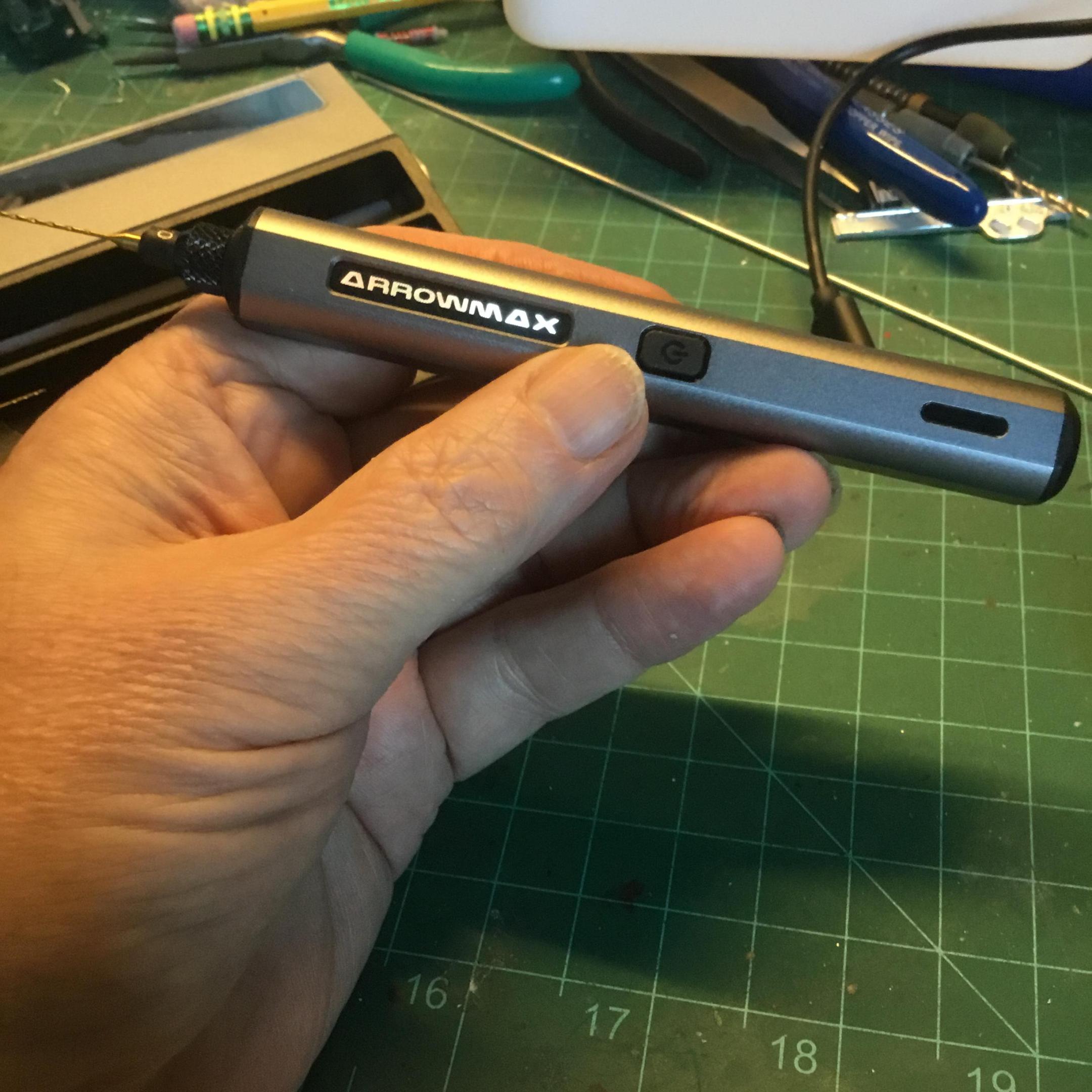 Ordered this from AliExpress. I didn’t expect much for $30.00 but this is a great tool. It has two speeds with a built in light. It is so tiny, feels more like using a pen. The slow speed is 550 rpm and it drills styrene perfectly without melting the plastic. Seems to have plenty of torque There is a more powerful version but I didn’t want to invest too much if it was junk. Wish I had ordered the more powerful one.