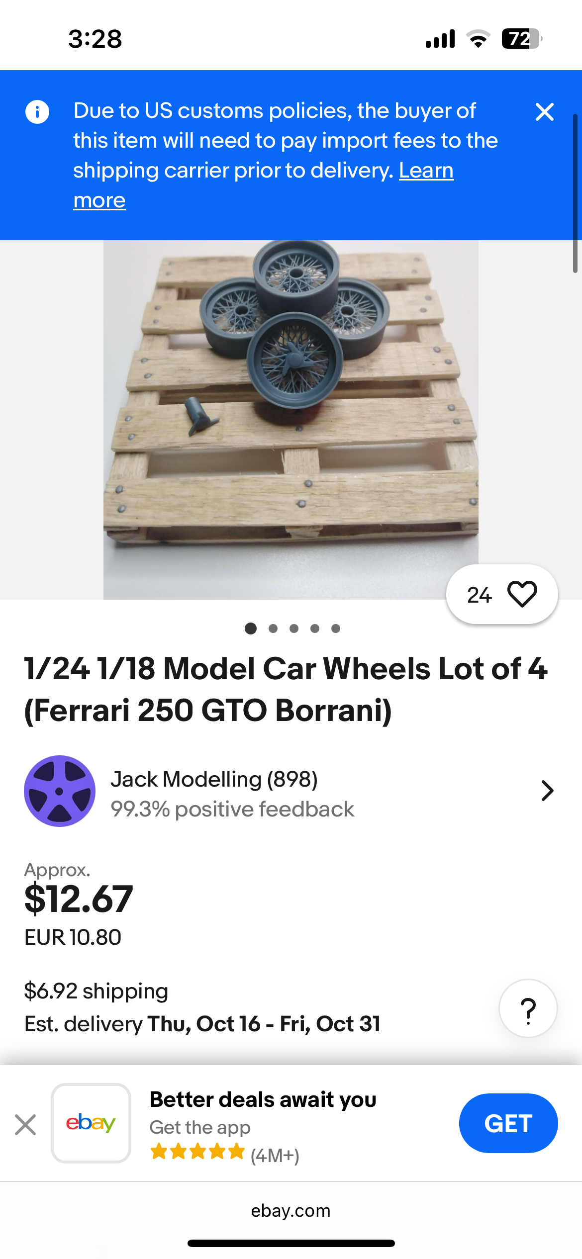 The wheels were from eBay jack modelling. I ordered a few sets a while back kept the front narrow wheels for a Ferrari 250 California and saved the wider rears for this.
