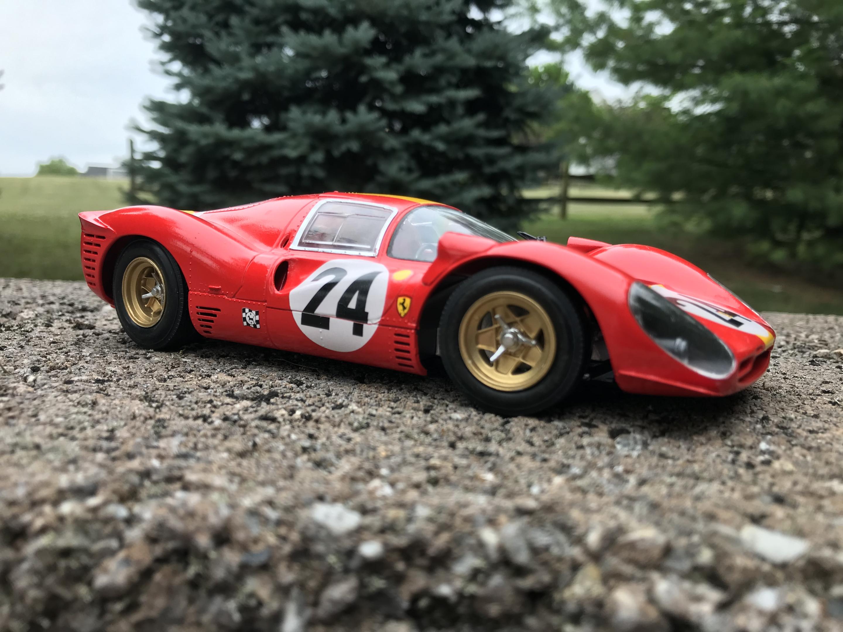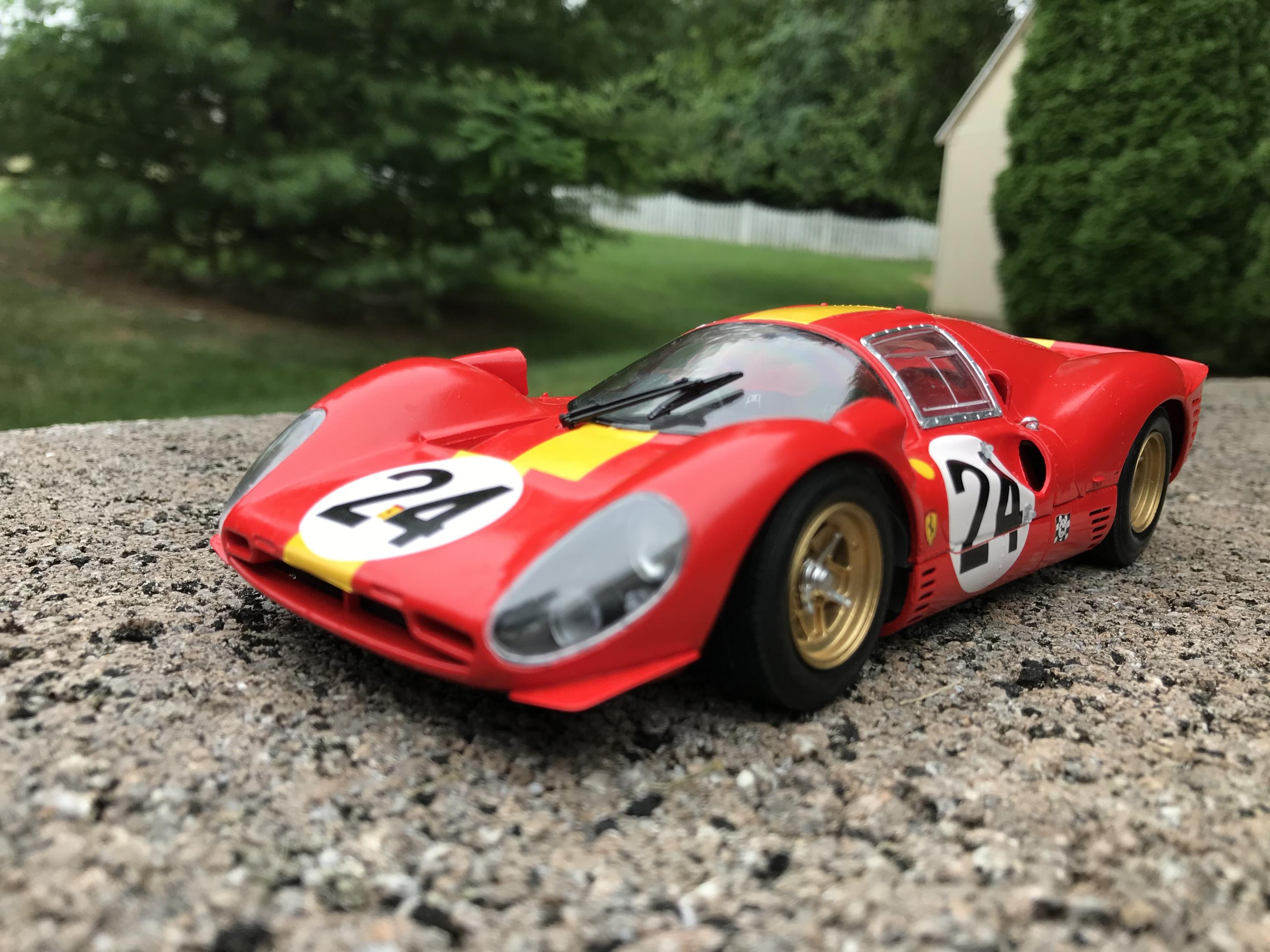 Fujimi kit. painted with tamiya TS 49 bright red lots of microsol to get the decals to snug down resin copied an italeri Ferrari Daytona engine block to fill the engine void