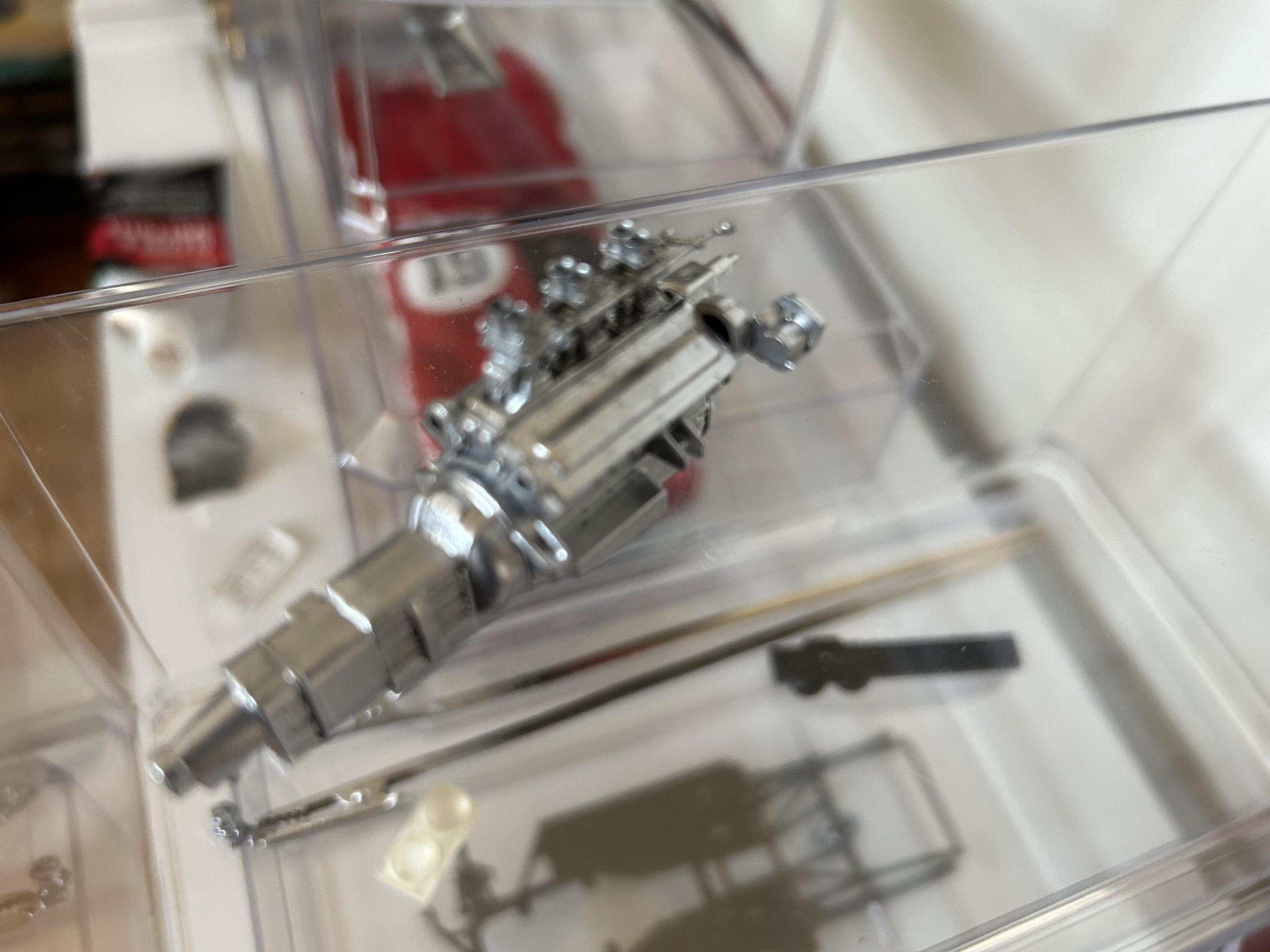 Progress on engine bay. Just need to add mesh for intakes. Modified italeri kit with replicas and miniatures of maryland carbs and alternator. Cast parts from Mfh kits…