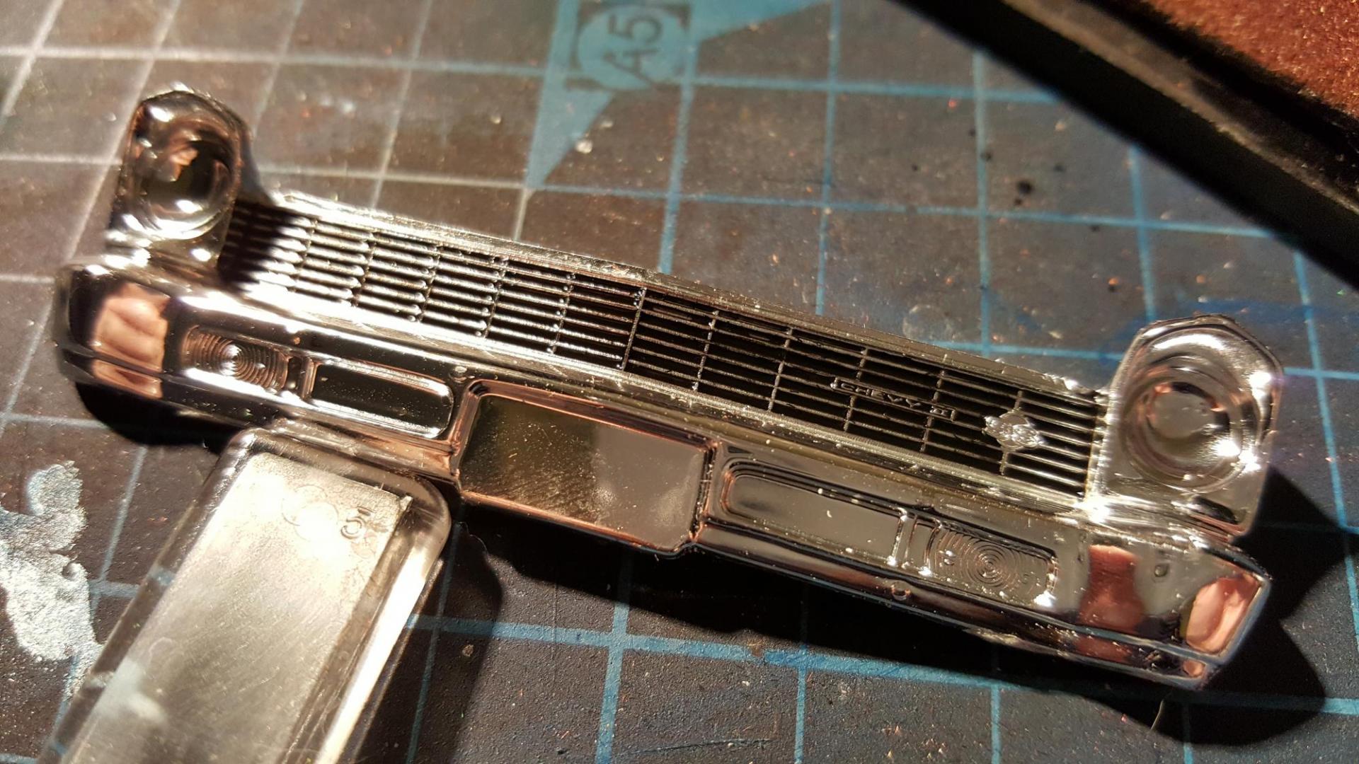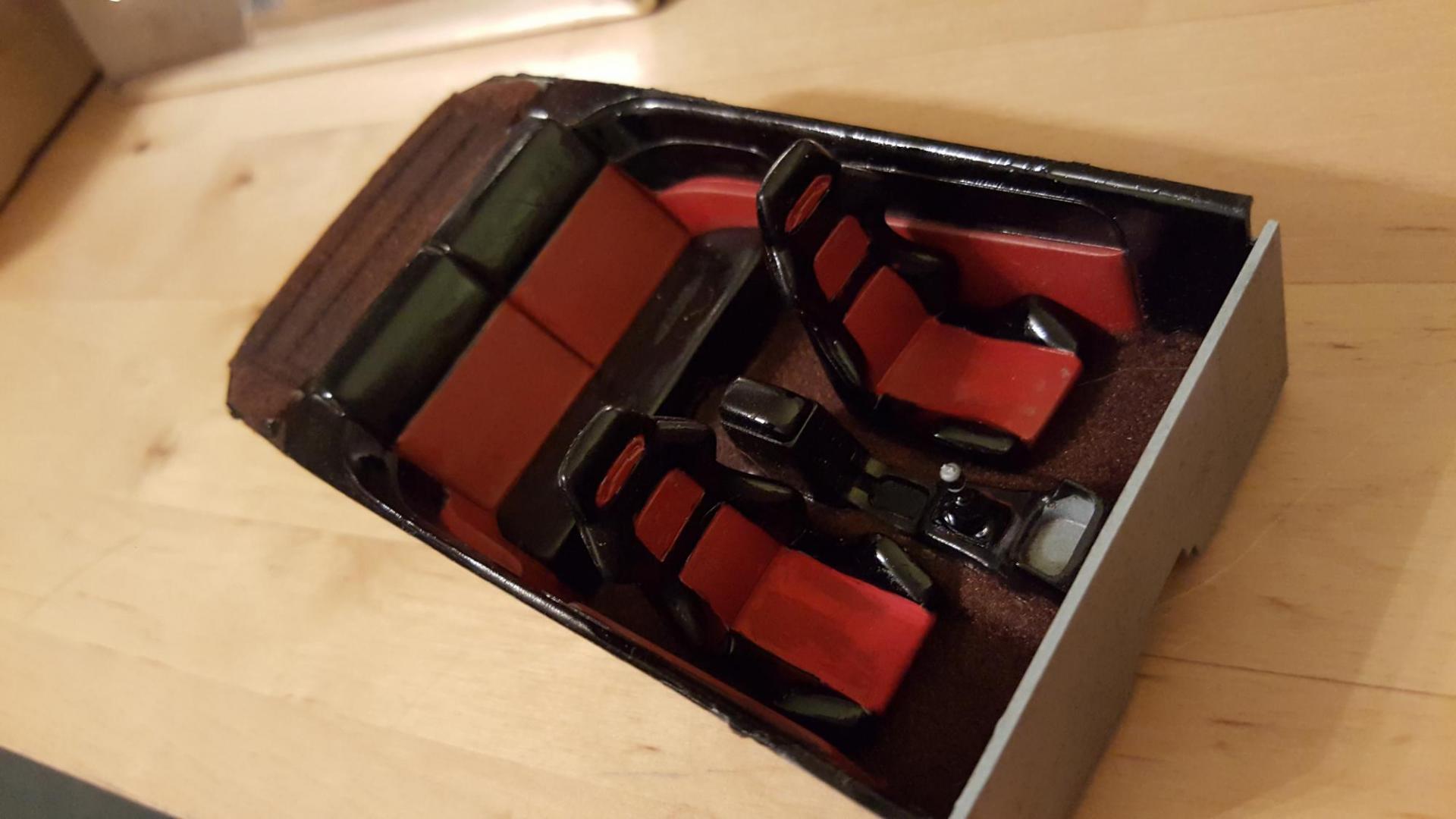 Looks ok, just in some areas, spray didn't quite get to, so I went over with a brush with Tamiya matt black acrylic and you can notice the different in layers of paint, I might leave it and try to weather it slightly with some dirt etc, see how it turns out. Any made some more progress; first time applying alot of these techniques, i.e. flocking, distributor wire, panel line using washers, all in good fun and a learning experience I've decided on a colour scheme, I am going to go metallic blue exterior and interior use the stock one seat piece for both front and back seats and go with a blue and grey upholstery. Taking my inspiration from here: http://www.hotrod.com/articles/readers-ride-1966-chevrolet-nova/
