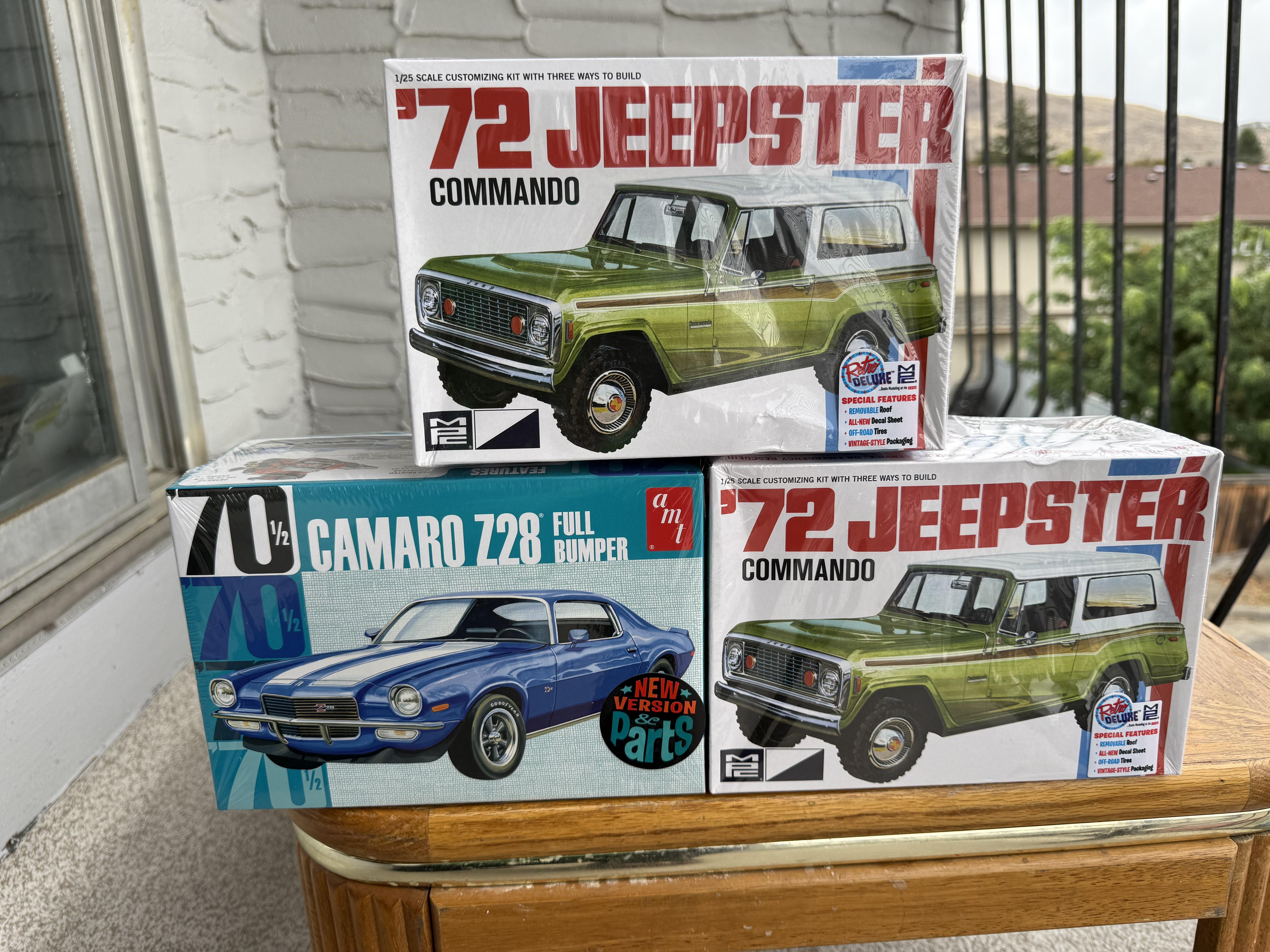 Went to the Hobbyshop to buy some display cases,got these instead was surprised to see the Jeepster already here in Canada.🤠