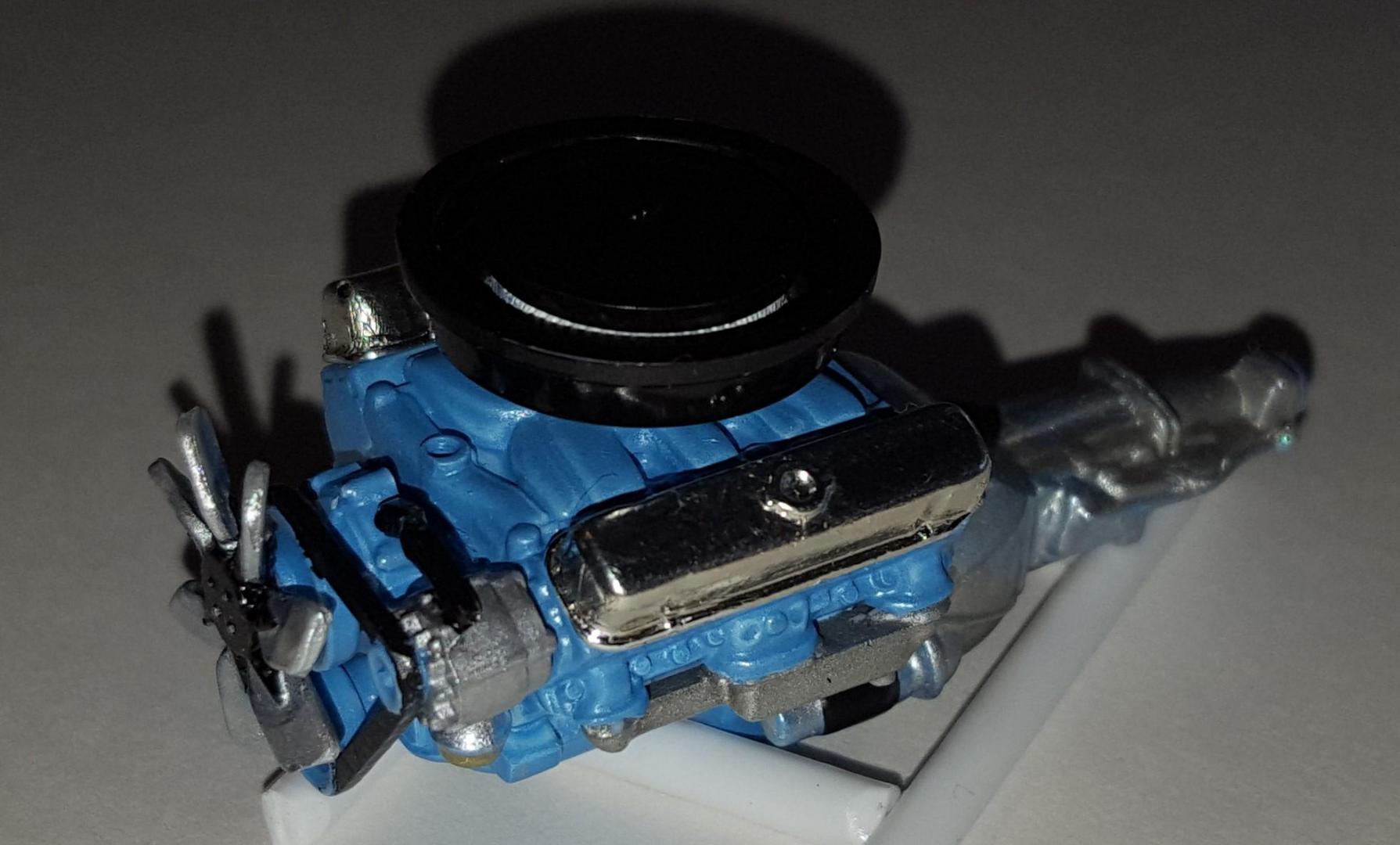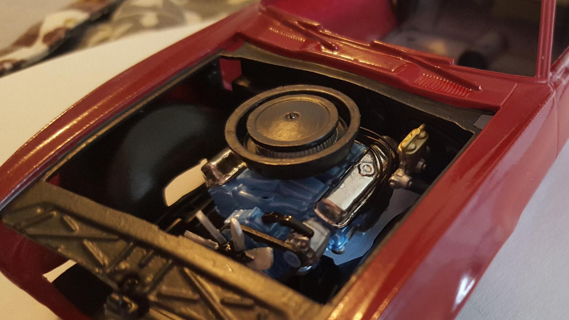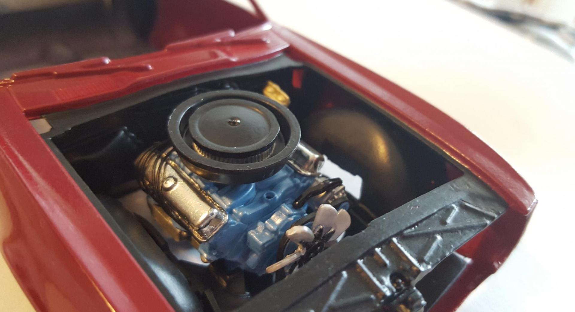 A small update... I don't have tons of spare time but this is becoming therapy to me! lol Paint turned out ok color-wise I think. I don't airbrush (yet - never tried it, so it's all out of a spray can) but I still need to work on polishing the paint before putting some clear on. I futured this already just to see how it looks. I like the direction it's heading. I can always remove the future later if I want. I decided I didn't like the chrome on the valve covers (too shiny/fake looking), plus the left valve cover had a terrible flaw in the kit chrome, but I have no "chrome" paint, so I tried bmf. Looks ok! BMF on the left. A little engine work... My meager paint mixing skills, tried to get as close to the Pontiac Metallic engine color as I could. Probably could use less blue and a little more silver. Oh well, I need to work with what I've got for now... It will take me some time to amass all the supplies I need after so many years away lol. I still need to fix up the BMF on the ends of the valve covers. Thanks for looking. Cheers!