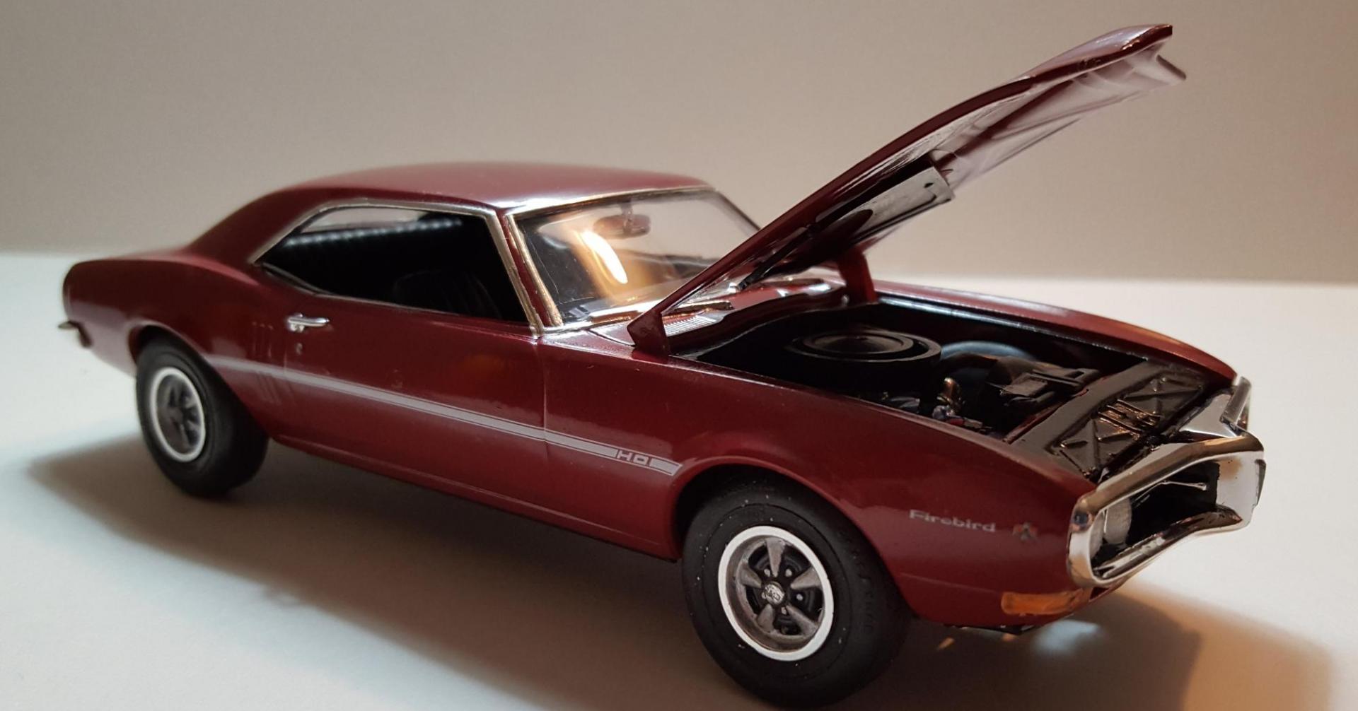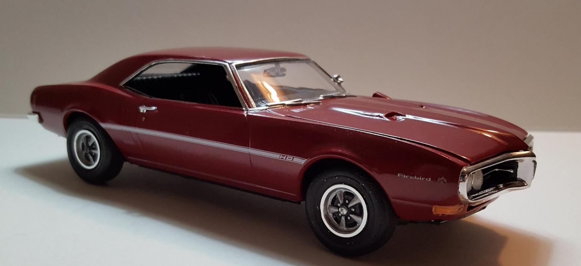 Well I finally finished my 2nd kit in my model building restart after 25 years. The Revell 1968 Firebird 400 2-n-1 kit built box stock and factory original. A lot of firsts for me here... Foiled trim, battery cables, plug wires, brake lines at the master and basic under car lines, etc. Much detailing with paint of the wheels, engine, underhood stuff, etc. I used the decals for the emblems as I'm not sure about PE parts yet. I will try them eventually (I actually have a set for the 67 Charger kit). I realize I probably should have removed the molded in emblems but they look ok I think! I fought hard with the red line tire decals and lost so they are just plain black (for now, until I build up enough patience to try again) Painted from a spraycan of cheap Wal-Mart paint I had laying around and 3 coats of Future (Pledge now) The photos bring out a bunch of flaws that are harder to see in person lol but overall I am quite happy and if I can't have the real one, this will do nicely! On to my next project... Thanks for looking, comments welcome!