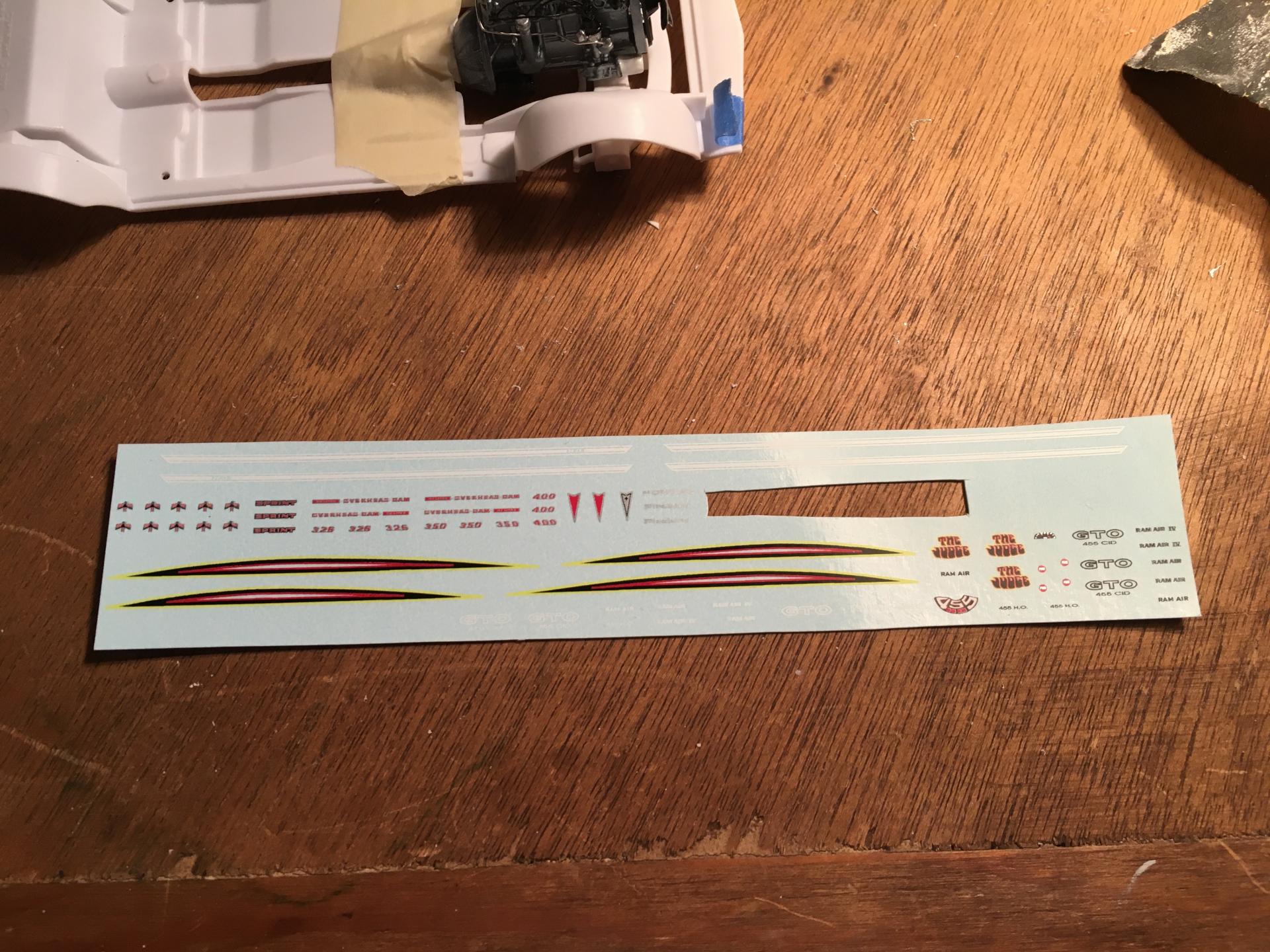 Here is the set I got from Keith Marks. He offers 4 different colors of stripes. The top decals are for the 1968 Firebird, he just put them on the same sheet. -