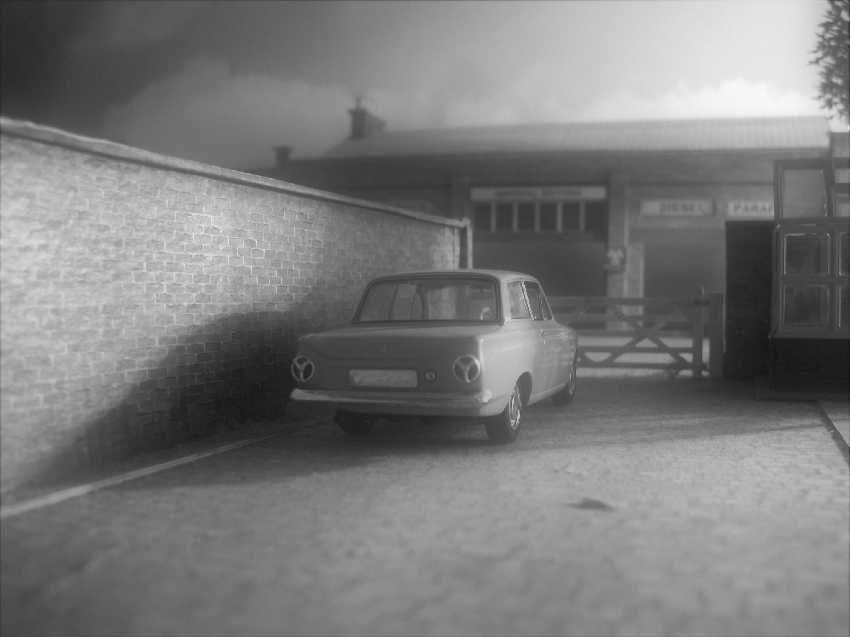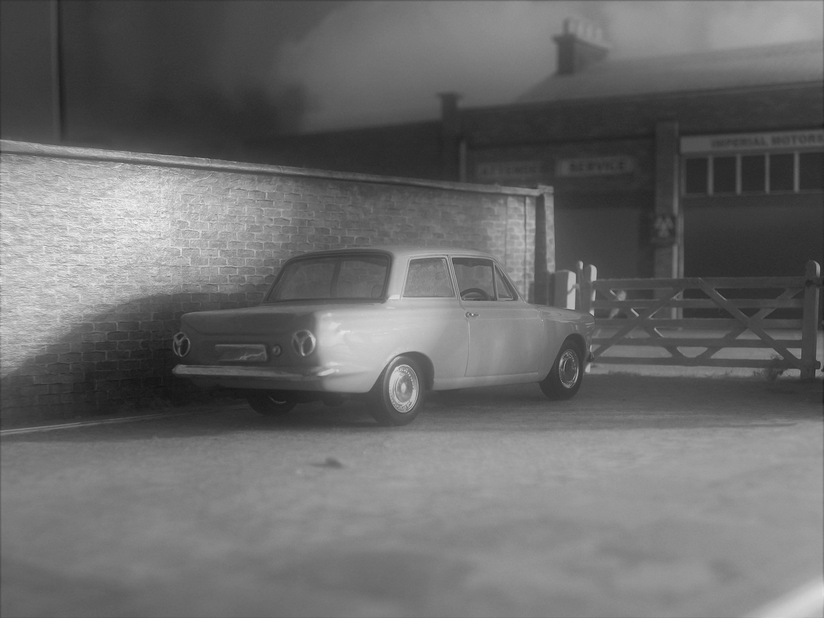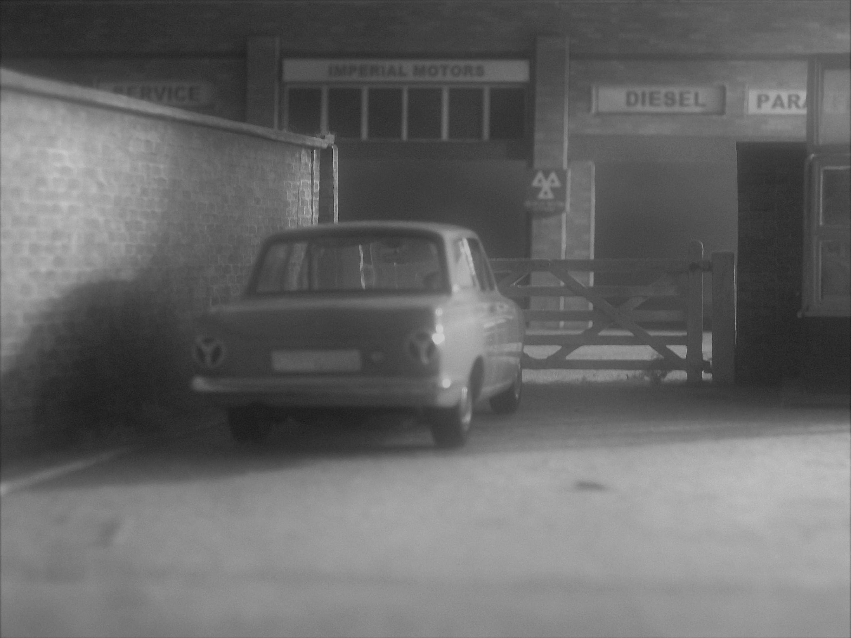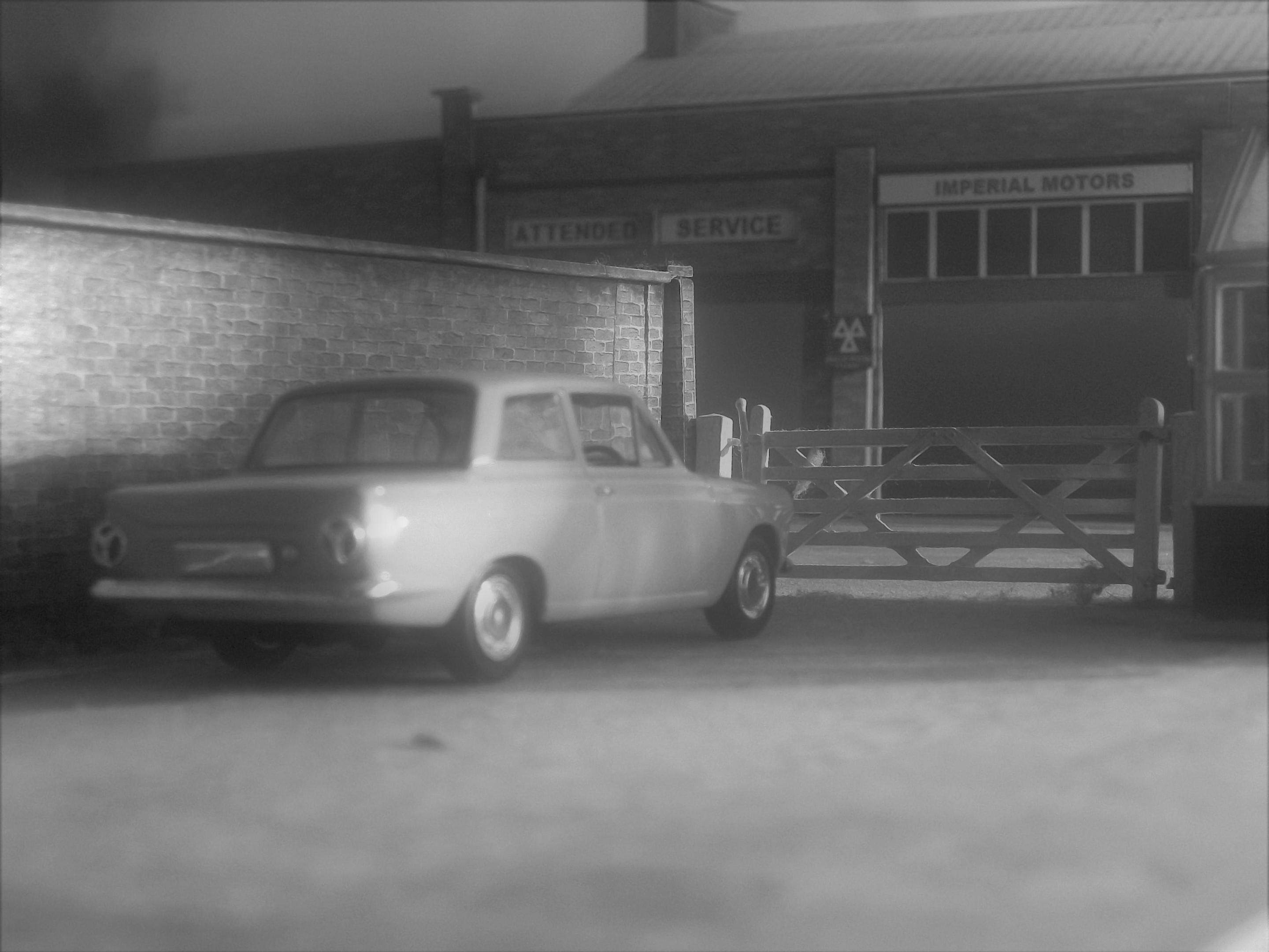 It is late evening and Imperial Motors is closed for the day . . . A customer has parked his Ford Cortina outside the main gate, so that the garage staff can drive the car into their workshop when they open for business the next morning . . . David