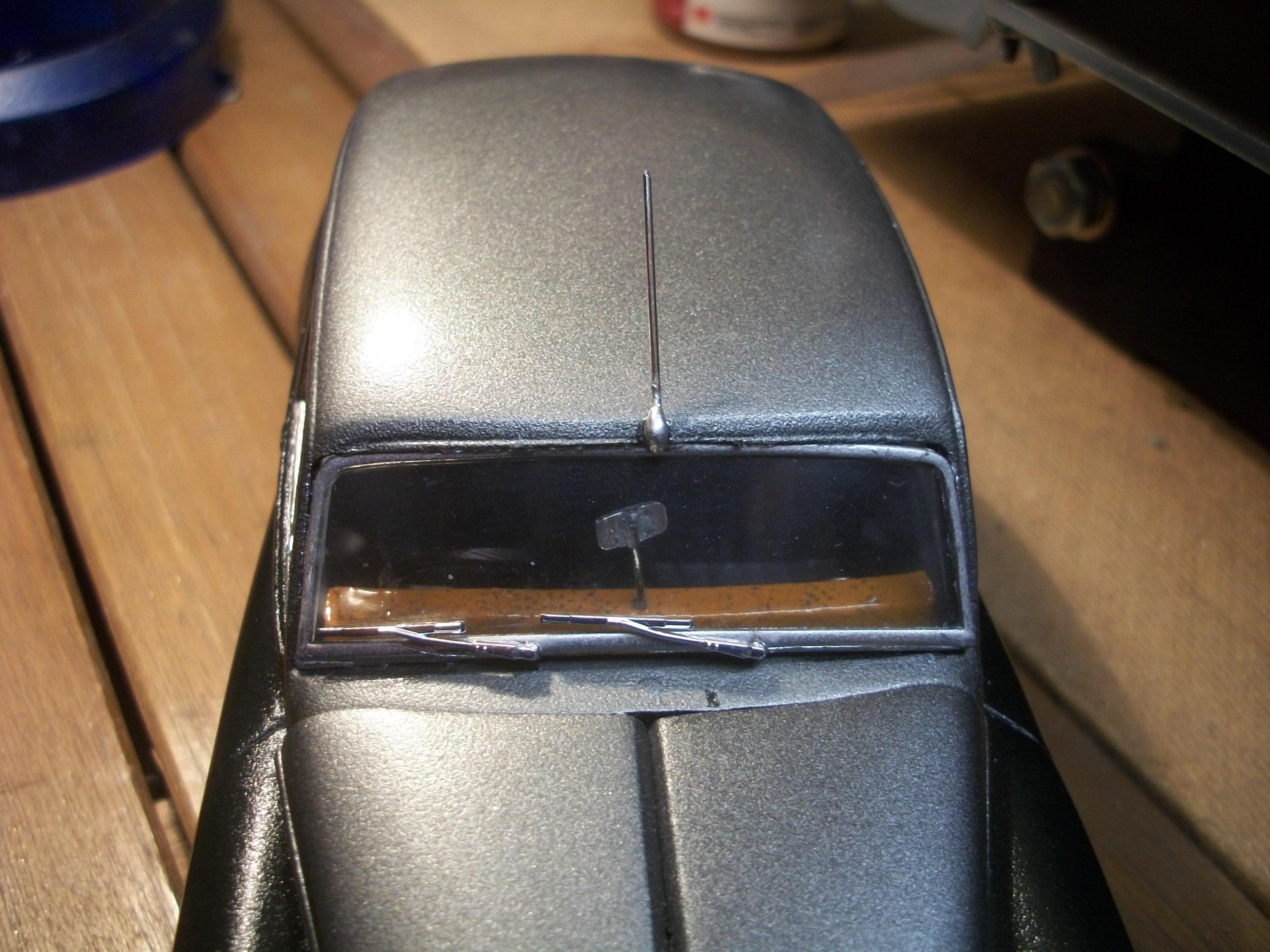 The Blu-Tack has been removed from underneath the boot lid number plate plinth, now that the glue has dried overnight. After drilling two holes at the lower edge of the windscreen for the wiper arm spindles, both wiper arms and blades have been fitted. This model car is now coming together quite nicely and I need to go round tidying up any details that I am not happy with. David