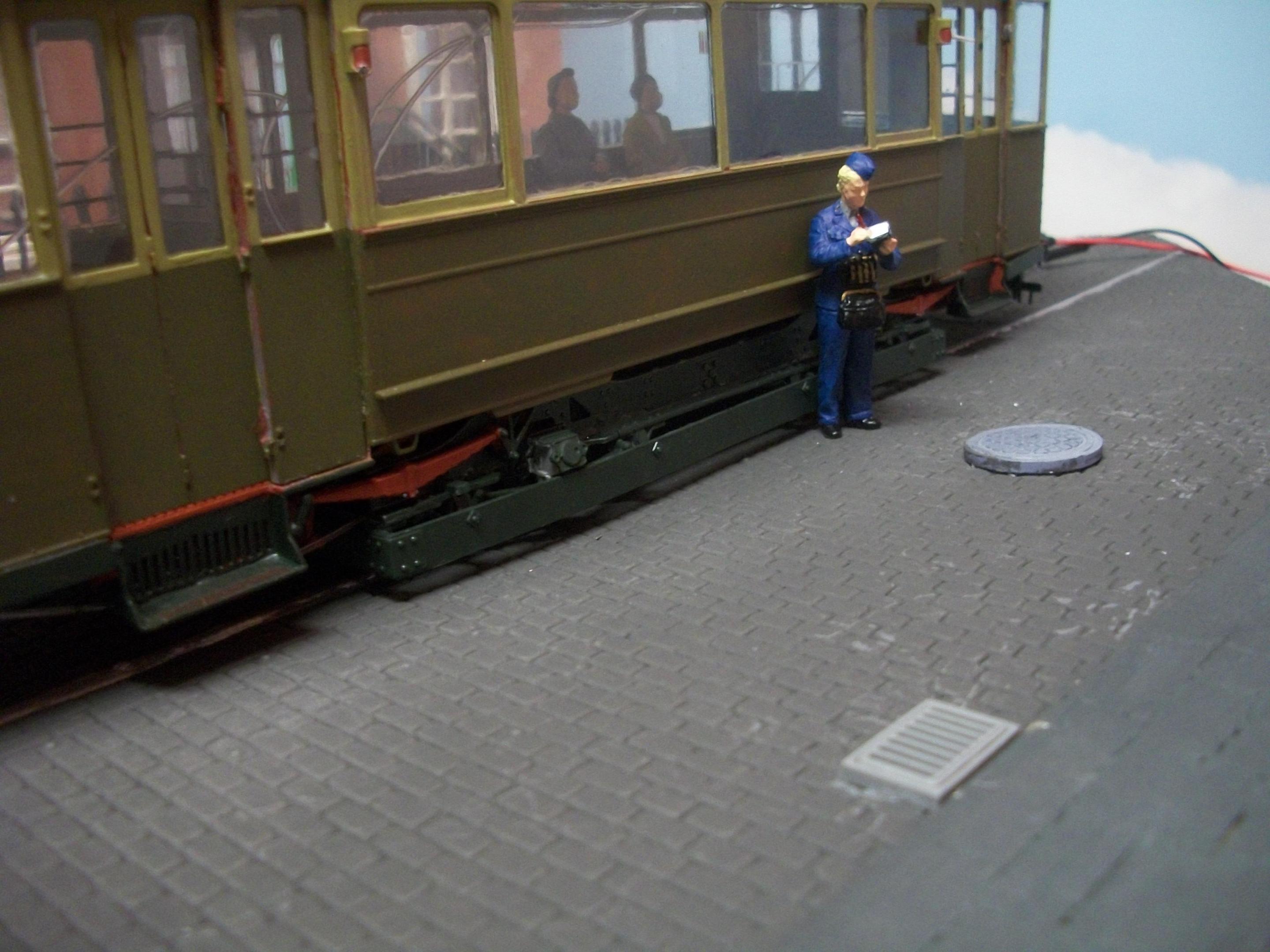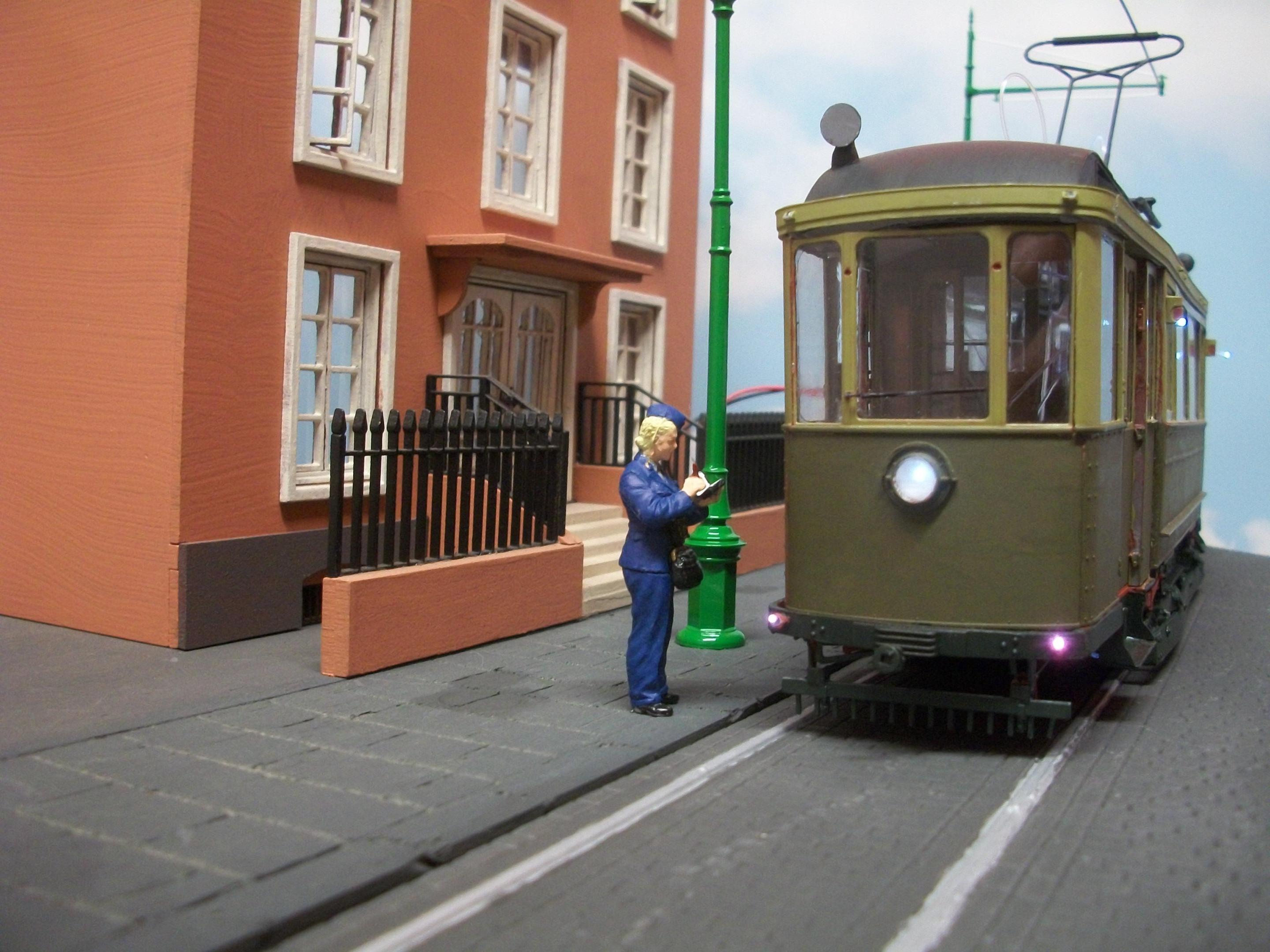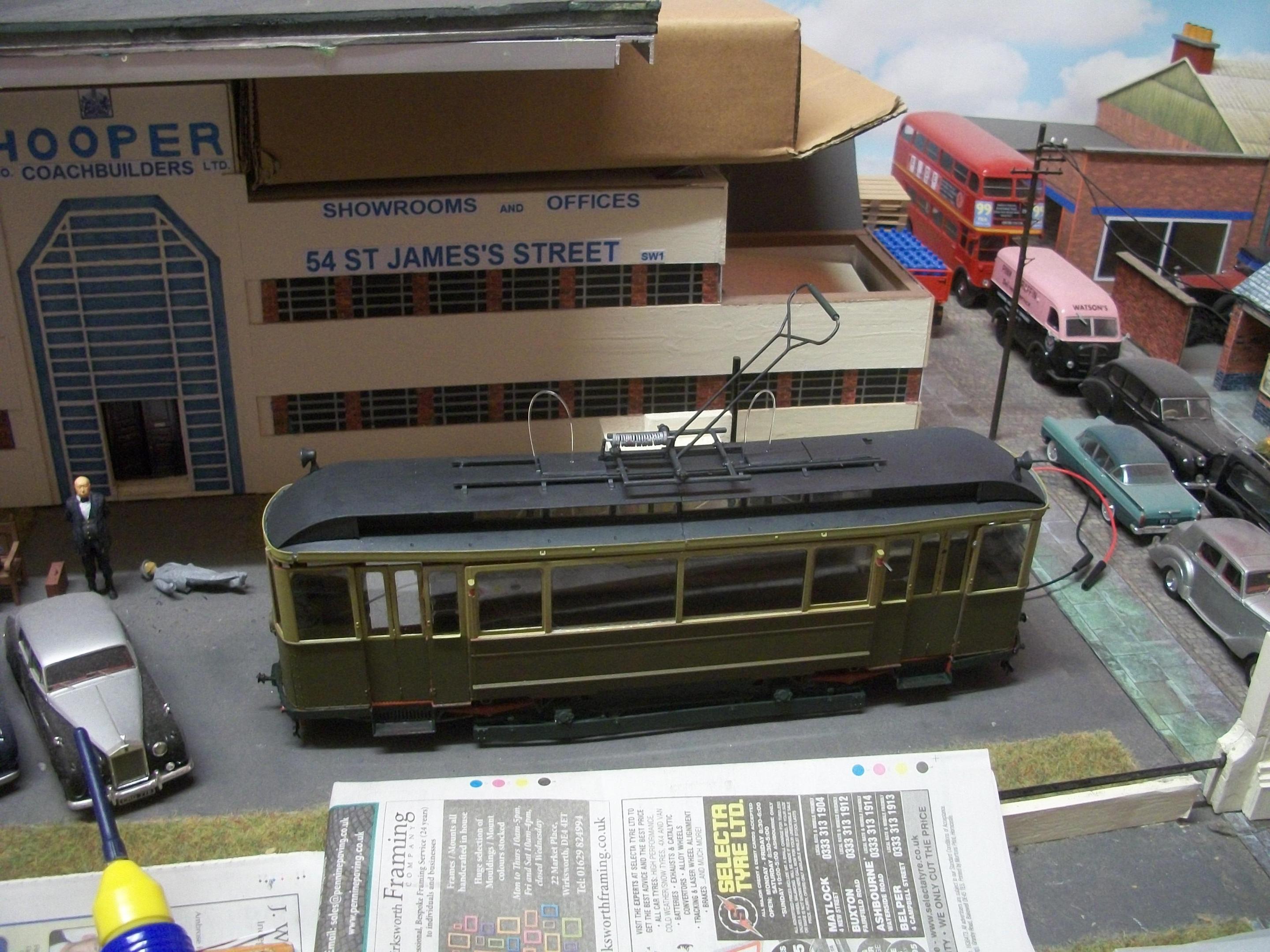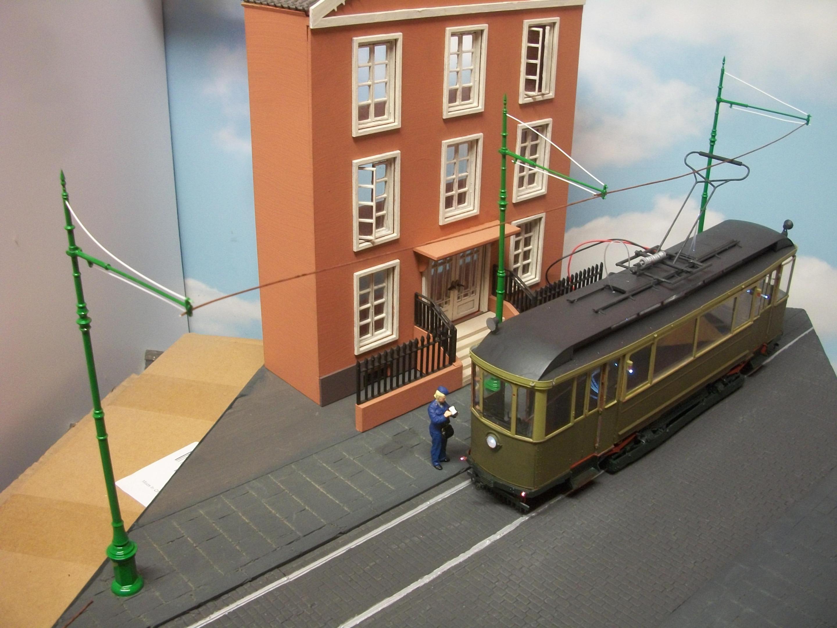 Thank you Pierre . . . . I have used Humbrol enamel paints for the tram car, and other scale model cars, but I use Vallejo acrylic paints for the figures. Usually, I would use aerosol spray paint (rattle can) for my cars, and also airbrush with Zero Paints colours, but for some models I do brush paint them with enamels. I choose very often to have a specific paint colour mixed for me by a company in Brighton, UK which would typically be a Rolls-Royce colour. For this service I have to provide the exact year of the car, and also the manufacturer's paint code. They send me a 400 ml aerosol can, which is not cheap and the delivery is also not cheap, but it is worth it to get the genuine original paint colour of an old 1950's Rolls-Royce motor car. Some model builders are very good at producing a high quality paint surface with a brush, and they can achieve a finish that is as good as an airbrush or rattle can finish might be. There is a lot of work involved with the preparation, such as wet & dry sanding and polishing. Acrylics seem to be quite good, but I do prefer enamels myself. Having tried many different paint brands, I find that Humbrol are better than Revell. The overhead tram wire is Evergreen styrene rod in white, so I shall brush paint this with Humbrol Copper Metallic, as the real tram wires were made of copper. David