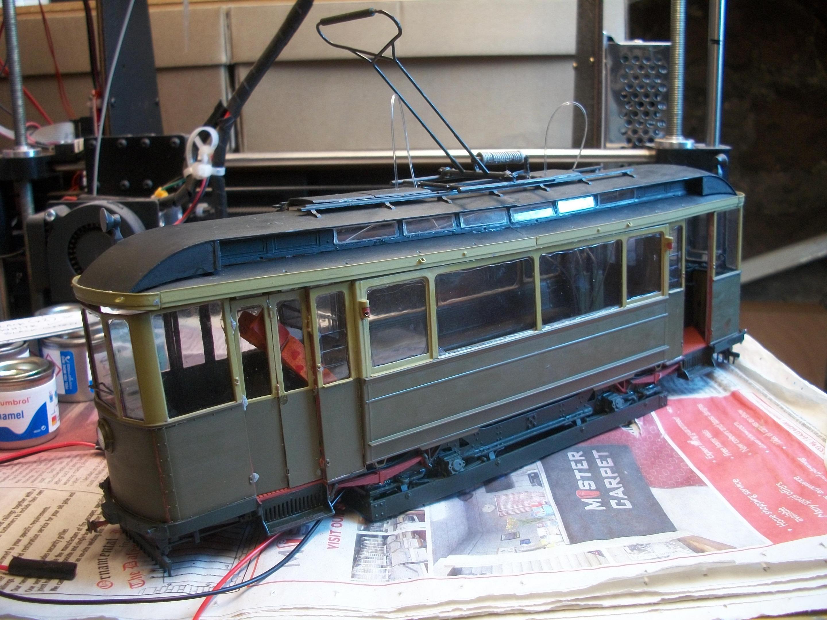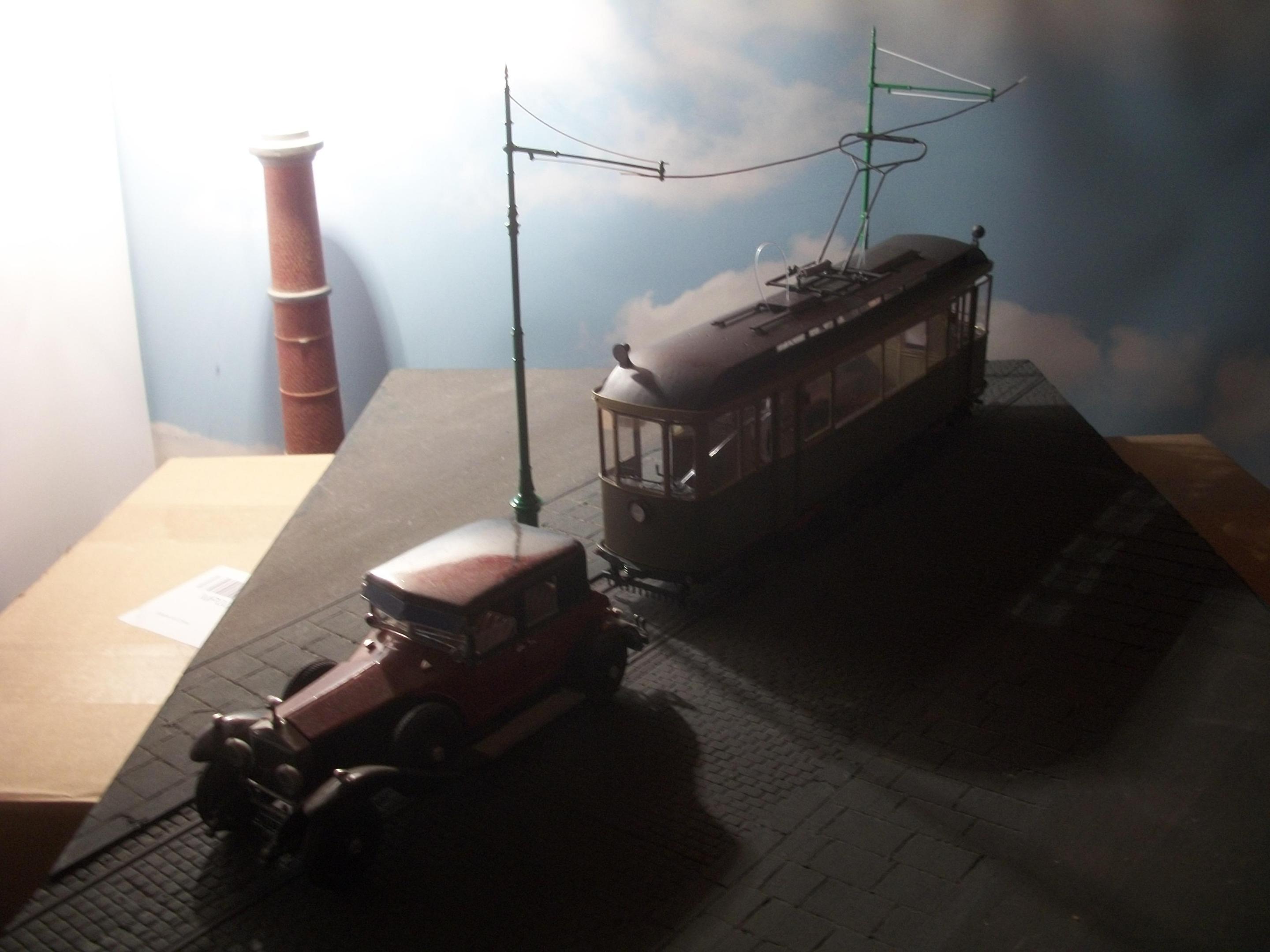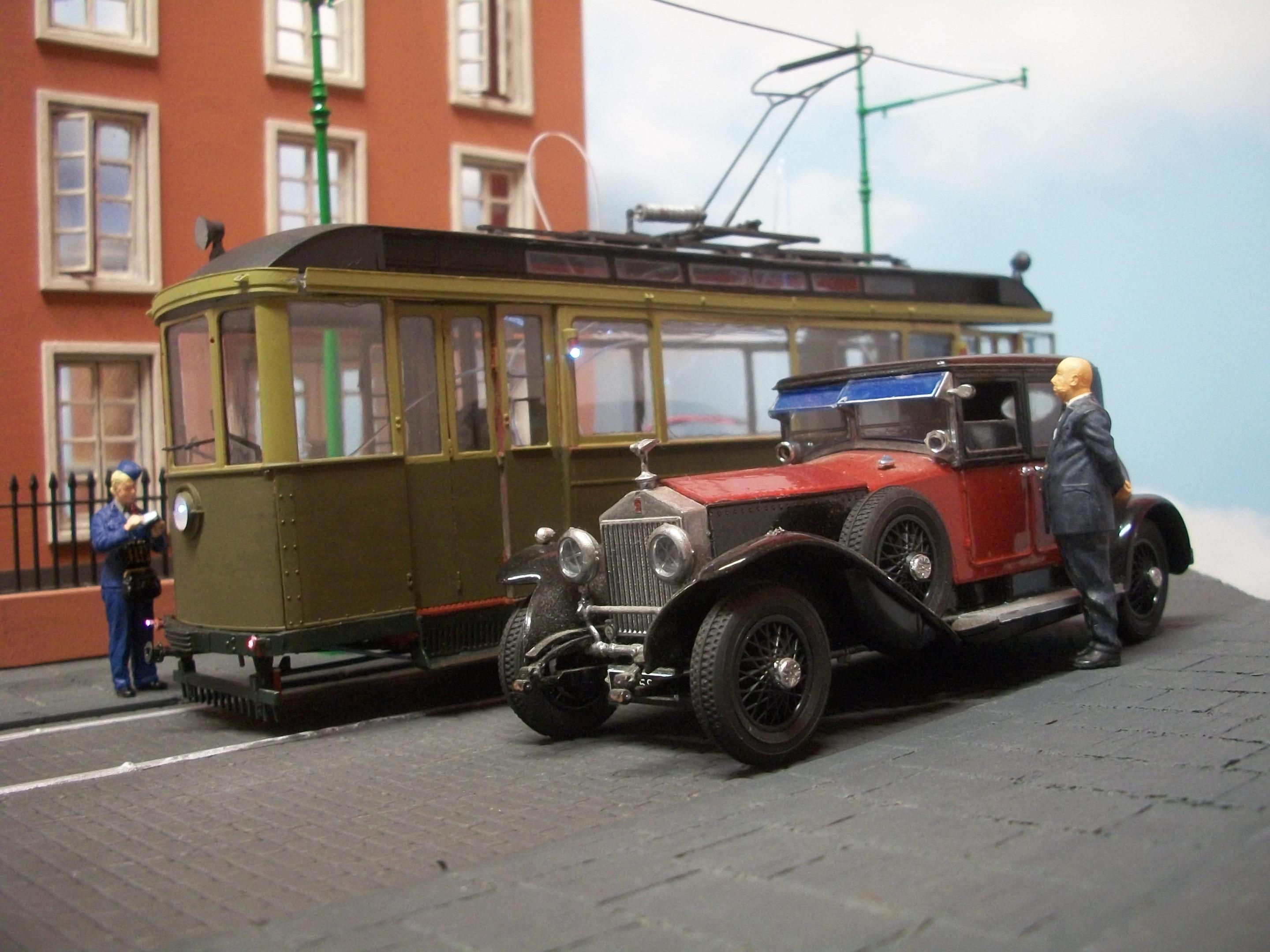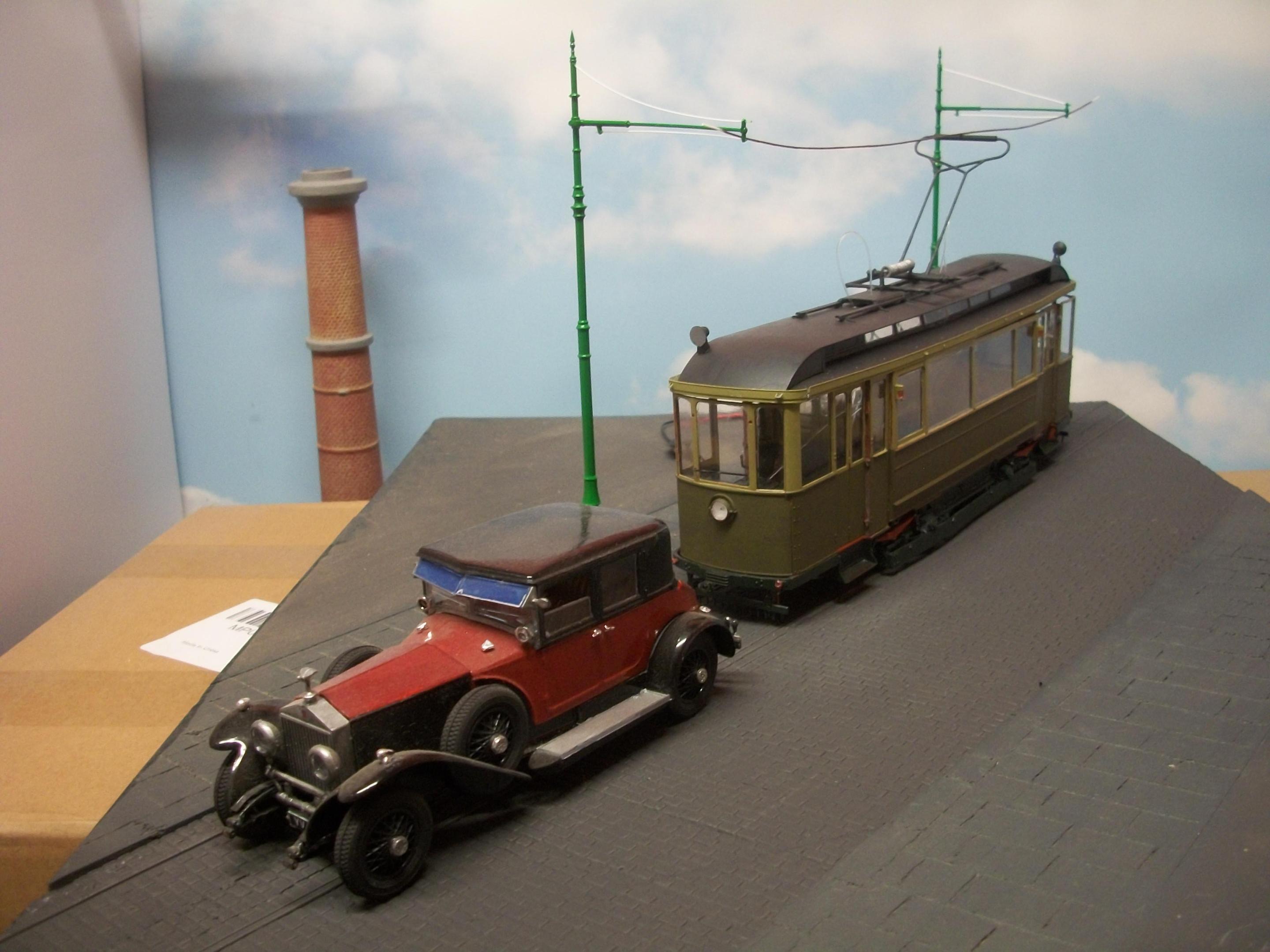 Thank you Pierre . . . . I have used Humbrol enamel paints for the tram car, and other scale model cars, but I use Vallejo acrylic paints for the figures. Usually, I would use aerosol spray paint (rattle can) for my cars, and also airbrush with Zero Paints colours, but for some models I do brush paint them with enamels. I choose very often to have a specific paint colour mixed for me by a company in Brighton, UK which would typically be a Rolls-Royce colour. For this service I have to provide the exact year of the car, and also the manufacturer's paint code. They send me a 400 ml aerosol can, which is not cheap and the delivery is also not cheap, but it is worth it to get the genuine original paint colour of an old 1950's Rolls-Royce motor car. Some model builders are very good at producing a high quality paint surface with a brush, and they can achieve a finish that is as good as an airbrush or rattle can finish might be. There is a lot of work involved with the preparation, such as wet & dry sanding and polishing. Acrylics seem to be quite good, but I do prefer enamels myself. Having tried many different paint brands, I find that Humbrol are better than Revell. The overhead tram wire is Evergreen styrene rod in white, so I shall brush paint this with Humbrol Copper Metallic, as the real tram wires were made of copper. David