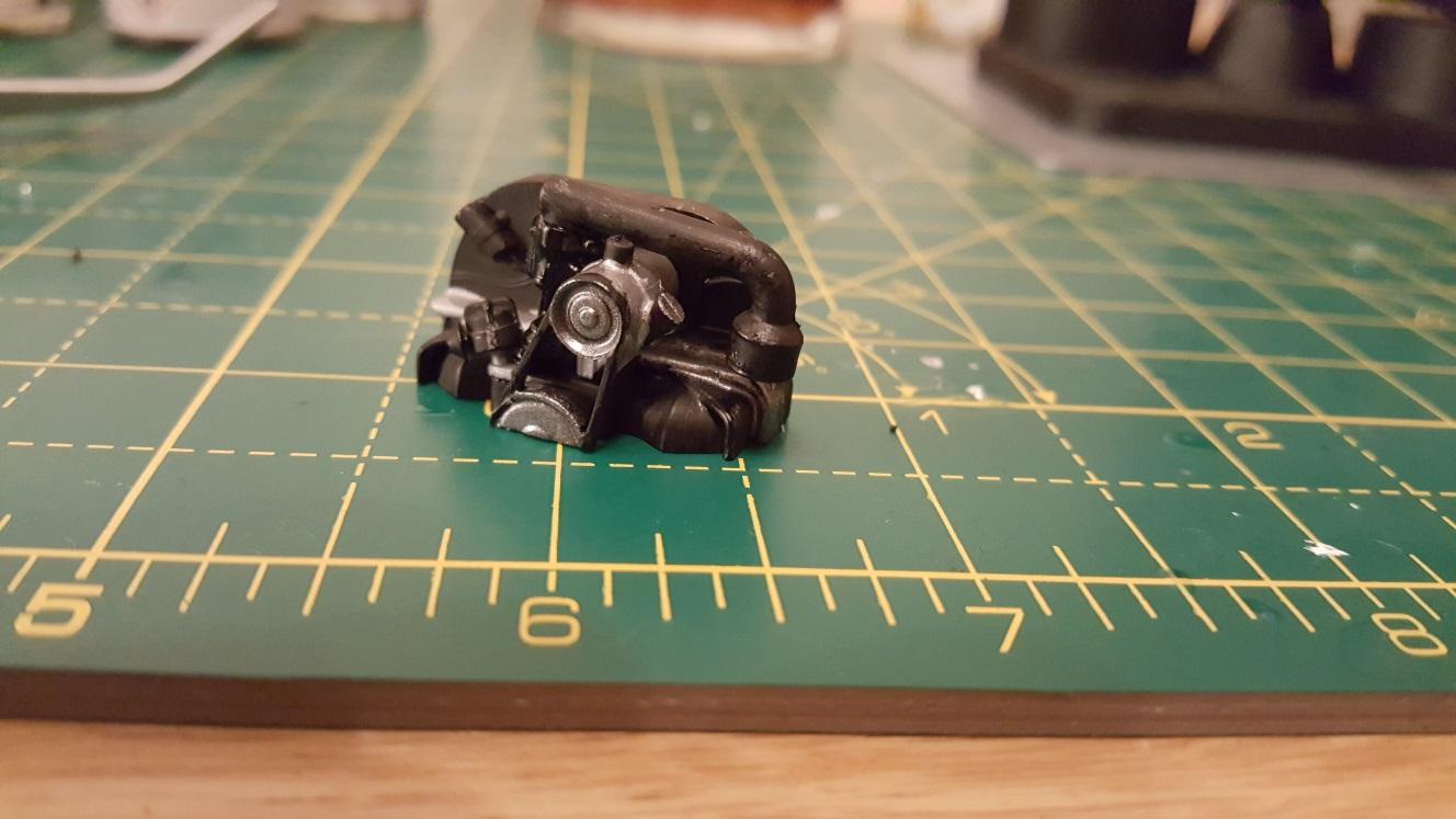 A couple more images to show. I prepped the front end for painting and gave it 3 coats of tamiya light grey primer, next up it will get a couple coats of black then the flip paint! Engine also painted and assembled. The only part you have to glue is the little distributor cap, the rest just pushes in snugly without glue which is always nice.