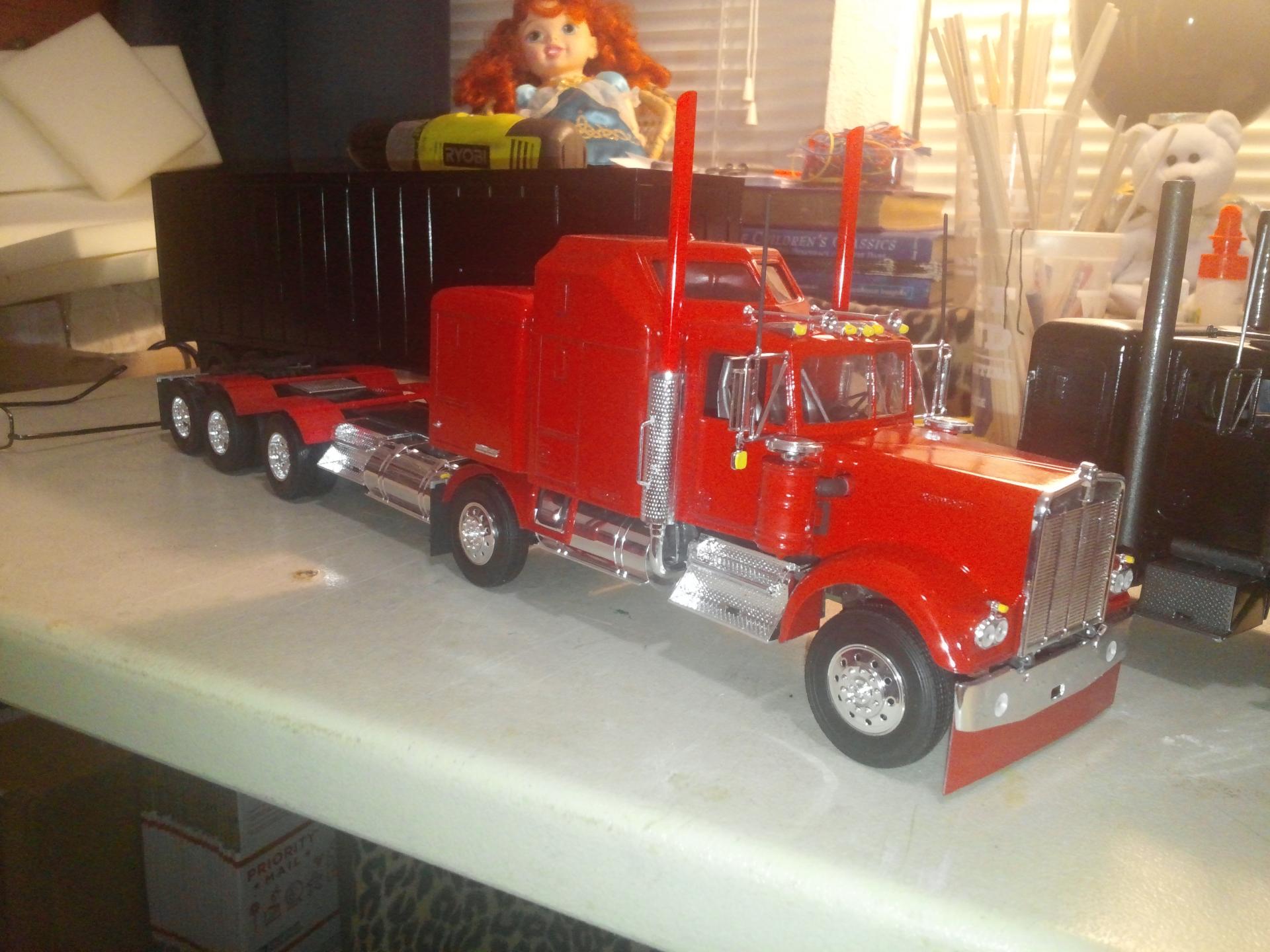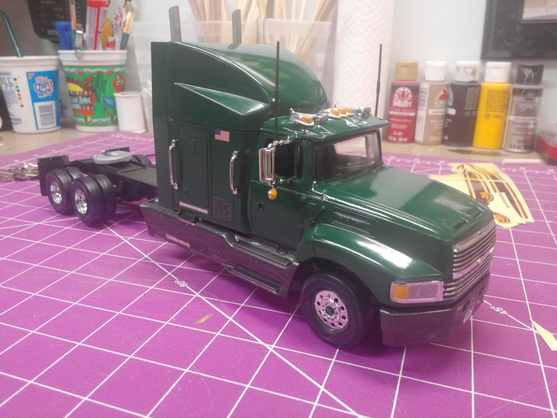 Today i felt the need for some instant gratification so i pulled out this 1:32 scale snap together ford aeromax that i purchased at a yard sale about 4 months ago for $1.00 still sealed in the box. Built it in about 4 hours. Primed and painted all the parts, streched the frame an inch and a half, made new taller straight stacks.. wish i could post a few more pics of it but i can't seem to get photobucket or flickr to work righr.