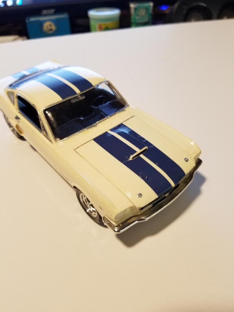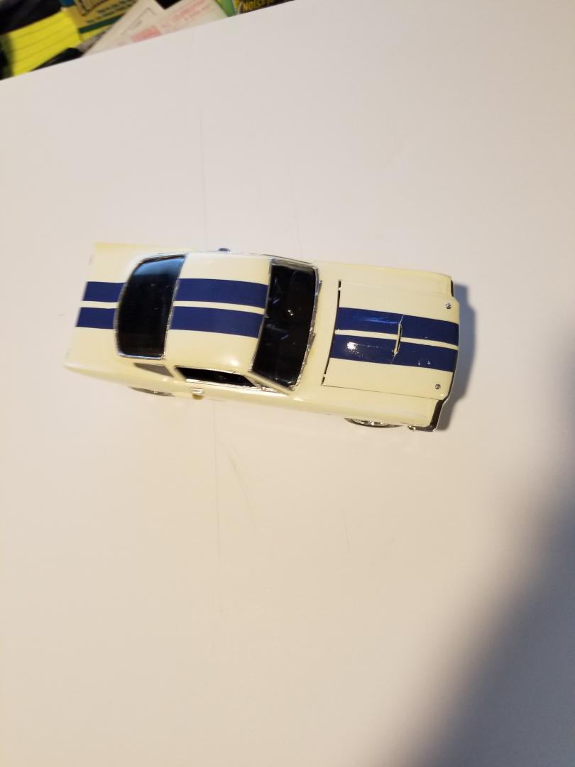 Ok, Figured out the picture problem! The Challenger I sprayed with de-canned Testor's "Plumb Crazy" purple enamel. When I put the clear, (Rustoleum) enamel to it , it "peeled" like crazy. Had to wipe it down with Acetone. (Purple Power won't touch it with clear coat on it. ). Have to figure out what went wrong. Meanwhile , put it up for now ,while it's still in one piece until later. On to #2, 1962 T-bird Picture 1, Peeled Picture 2) Won't fit in Acetone can (LOL) Picture 3) Stripped back down