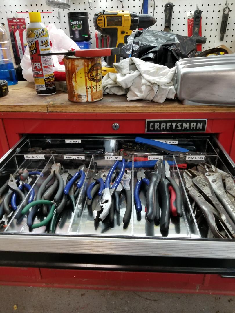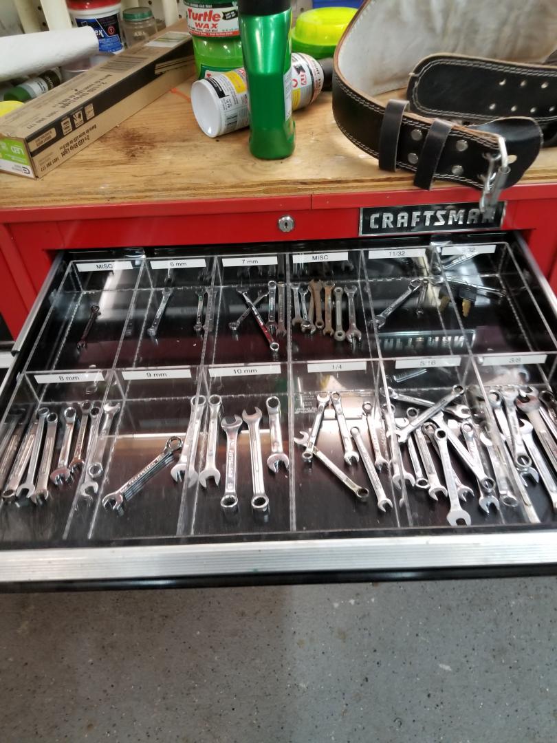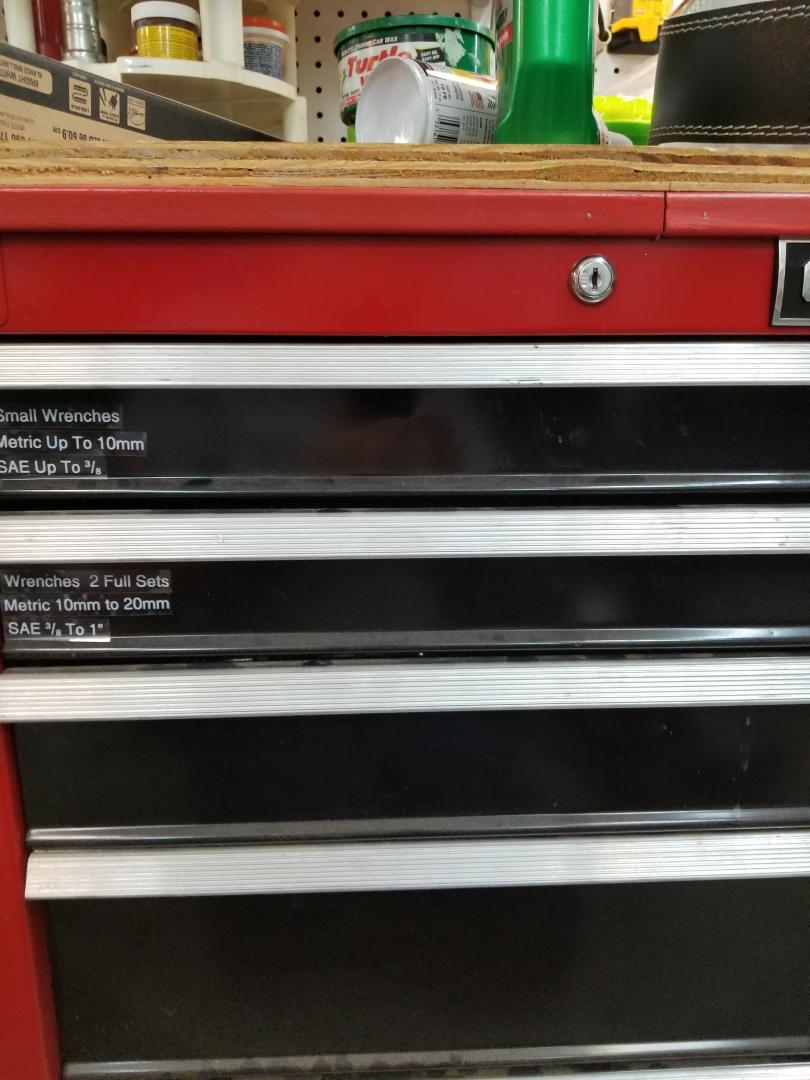 Newest is the sink cabinet. Just stuck it around my utility sing and organized my drawers. Hate hunting for the wrench or pliers, or socket I need.