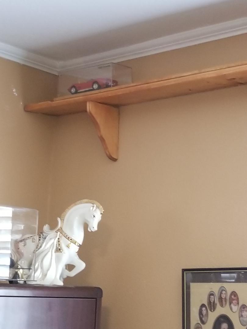 Oops....Shelf was still too long. Beat up wall, Had to cut an inch off the shelf. Will touch up wall or just let side shelf cover it. Depends on how I feel at the time. #1 on shelf. #2 thru 13 on front wall