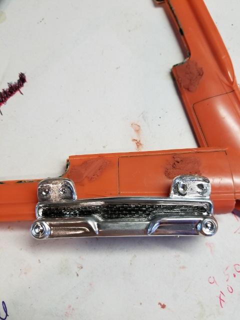 Got a 1959 Ford Galaxie "Flip-Top" that I built over 20 years ago. Got knocked off the shelf and broke. Going to re-build it. Screwed up headlights in original build with glue. Got out headlights out. Filled holes with "Kyrstal Klear", and t/u up with chrome pen. Now, the question. I need to redo the grill. Want to try a "eash" in it , rather than paint , like last time. If I remove paint, I'll remove the chrome plating. Should I just remove all plating and send off to be re-chromed? Suggestions?