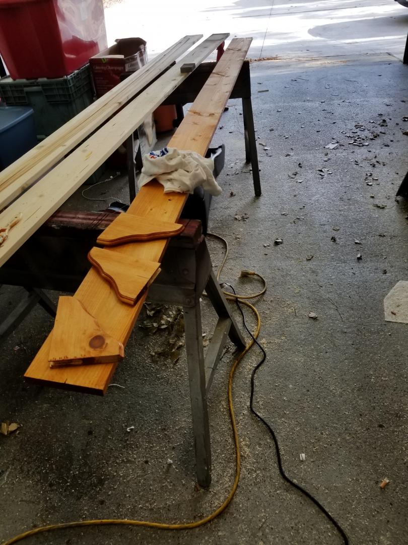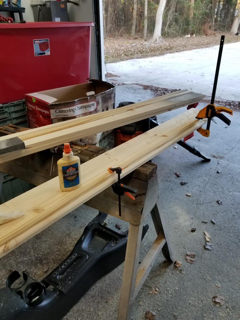 OK. Need to add shelves. Front one is full. Following pictures show how I do it. Remember , I'm not a carpenter . What I do anybody can do! #1 , Shelf full. # 2 Back wall. which is 120 inches, 10 feet. . Bought a 1x6 from Home Depot. Note a 1x6 is actually a 3/4 x 5 and 3/4. Important to remember that later! Pics 4 and 5. I cut a quarter inch off the board so I wouldn't have to "jam" it in the space. The 1/4 inch won't matter. No one will ever see it. If they do , tell them to get the hell out of your shop! You don't need that kind of negativity. I didn't route to the end because the side shelves will meet up with the back shelf and that 5 and 3/4 inch will come into play there. (pic 7). I use a 3/8 round over bit in my Ryobi Router. Why? Cause that's what the hell I wanted tp use! Ryobi Router? Cheapest one I could find. Once again , I'm not a professional. Want perfection? Hire a professional! (pics 8 & 9). I used a scrap piece of wood to make sure the depth is right. Not a big deal, (pic 10). Safety first! Safety glasses , will need them! I started routing a % and 3/4 on each end., (pic 12). I used a sanding sponge to knock off rough edges. I had a sanding sponge there, sand paper will work.. Took all of 2 minutes! Glued the quarter round down with wood glue and 4 clamps. Anything will work as long as it holds the quarter round down. Use rocks, blocks, metal. Doesn't matter. Had the clamps. Lucky me! Dumb butt Home Depot only had four brackets, so I can only do the one shelf at this time. Screw Home Depot! Rot Bastards! Have to wait on the other two shelves. Will stain and clear the shelf, starting tomorrow!