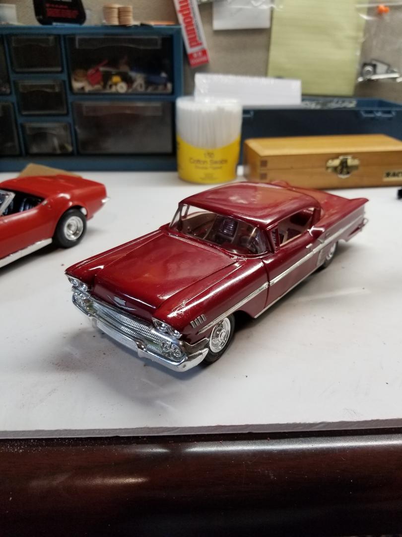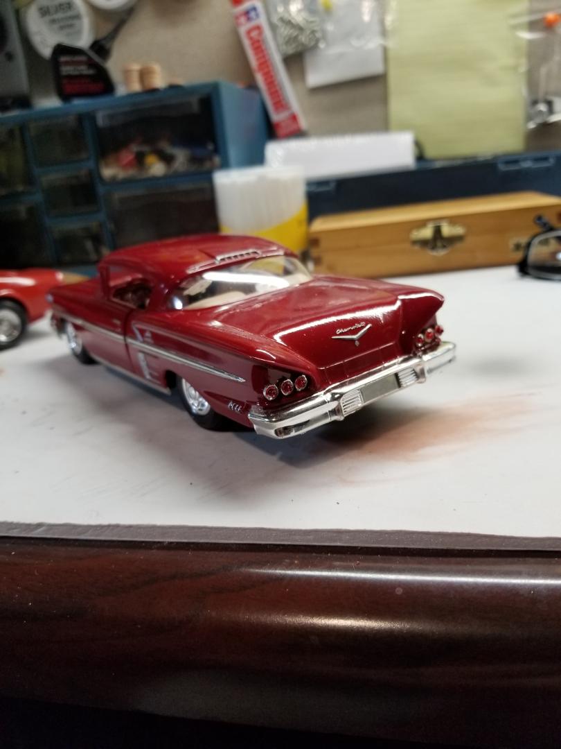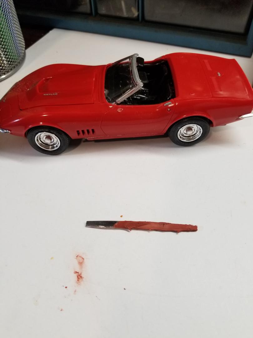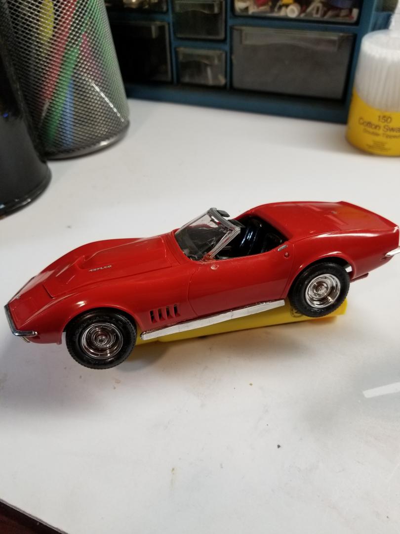 Well, about through with #4 1968 Corvette. Going to work on #5, 1958 Impala. Not going to do much to it. Could chrome around the windows but not going to. What I do need is the chrome pieces that go on the front fenders, if someone has a spare set.