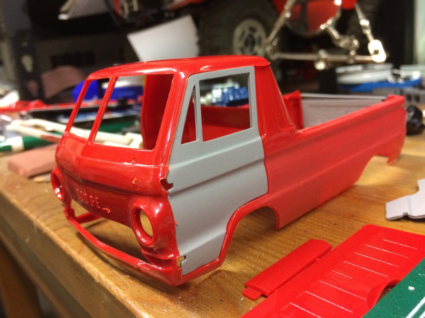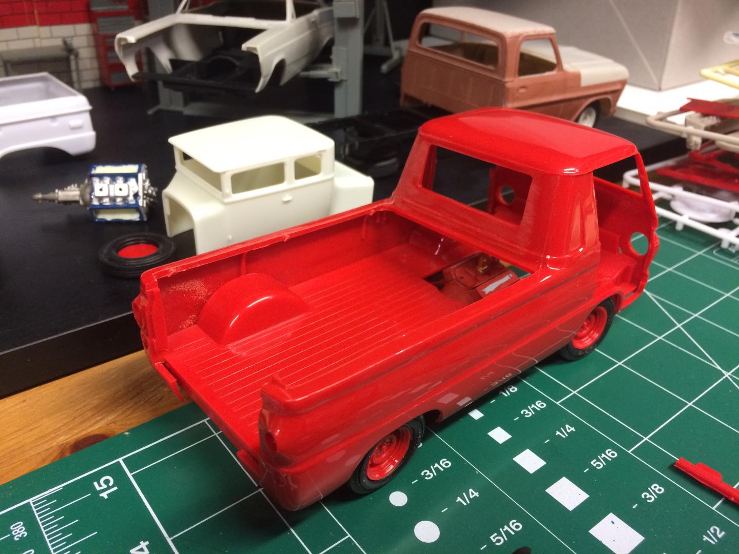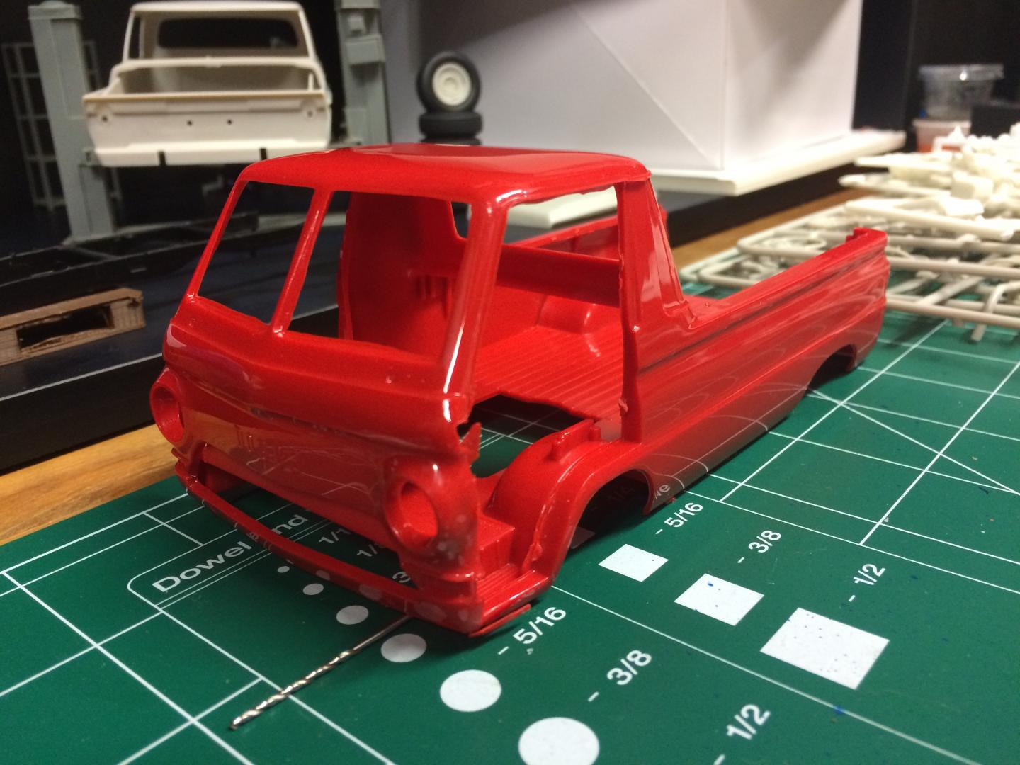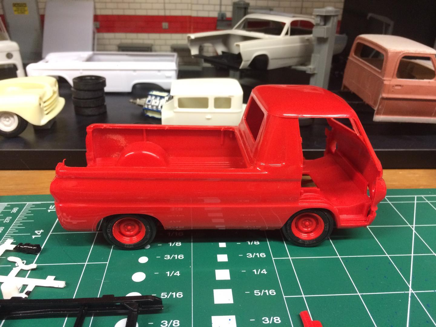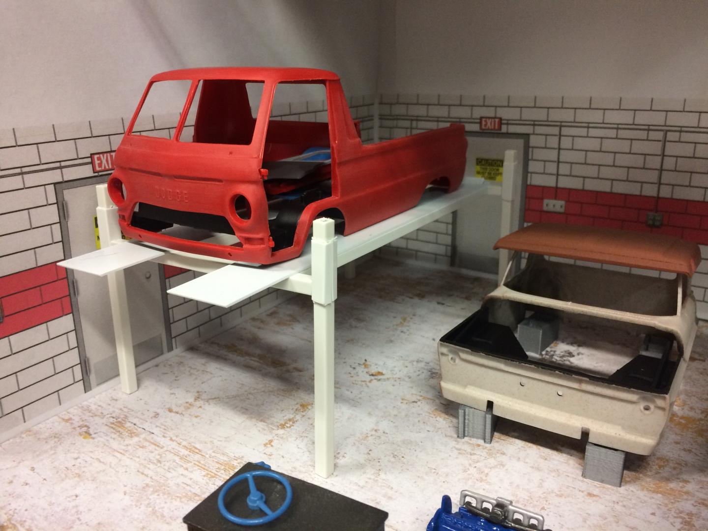 21. Been playing a bit with a Dodge A100 Little Red Wagon, Going for a stock version but lowered. I have been away for many years but have been doing a little bit each evening after work. Did a spring under front and rear to lower it, Funny it still dosent seem too low but wouldn't be able to go much more without major surgery (I'm not ready for that yet.)