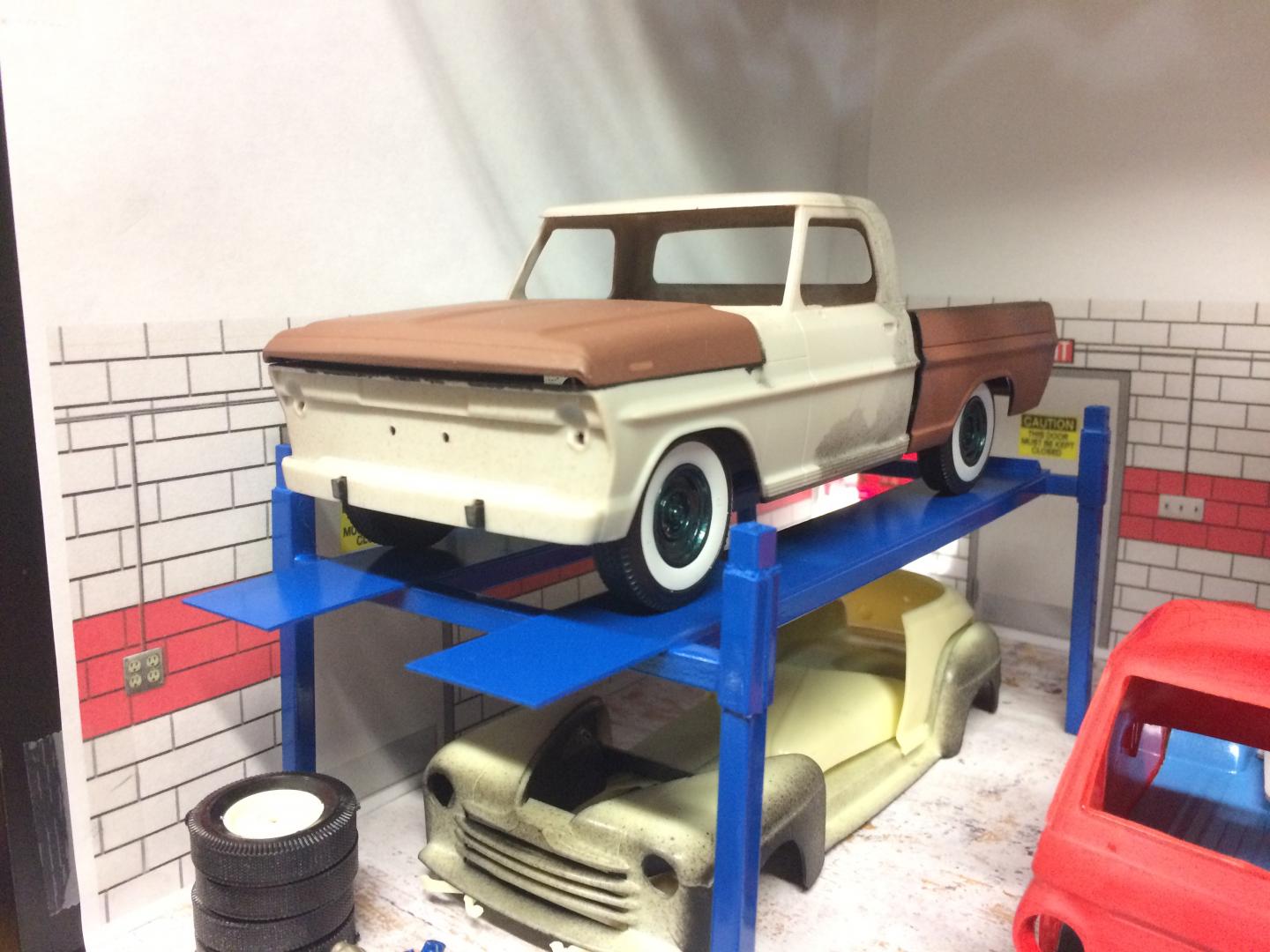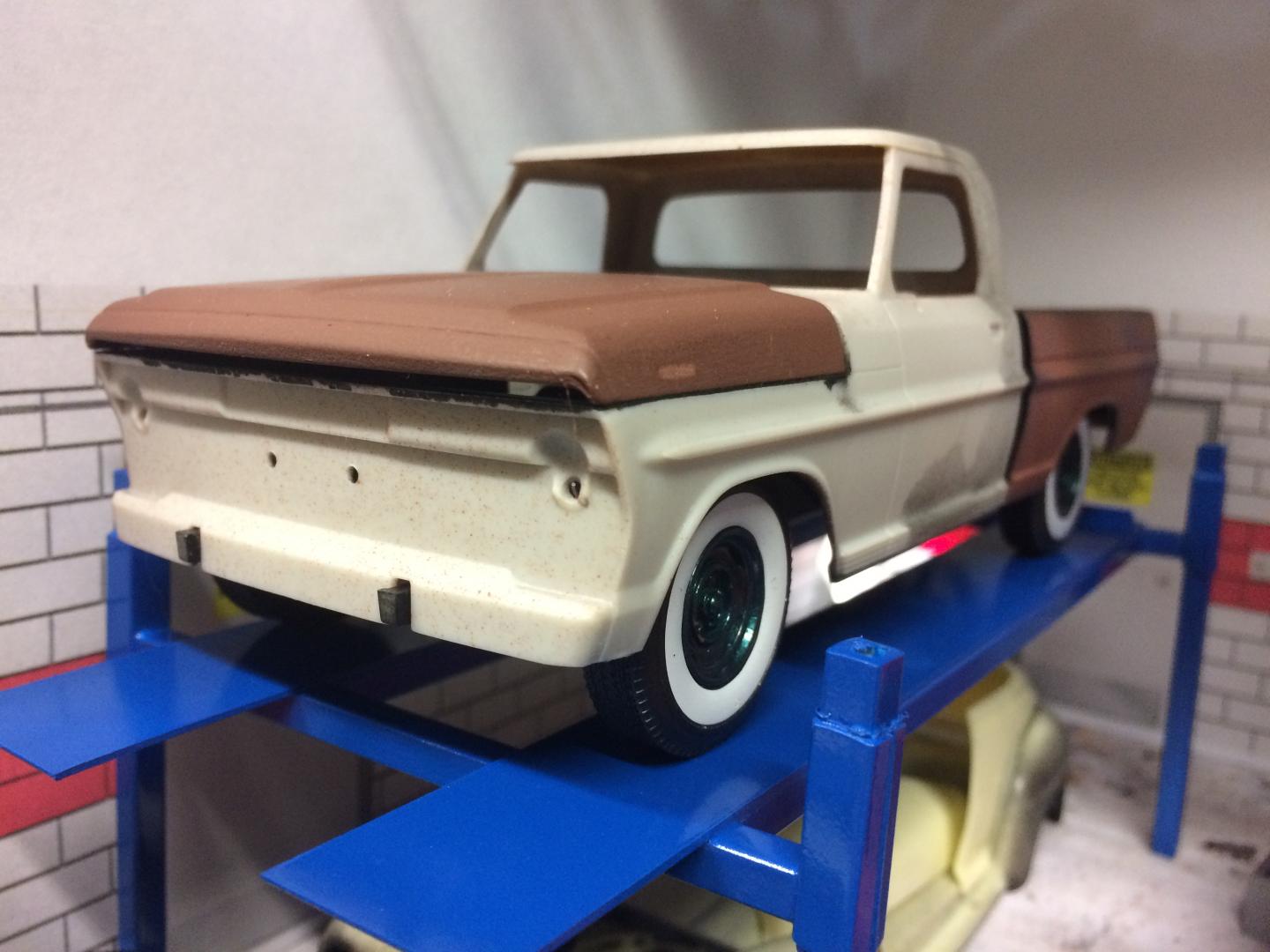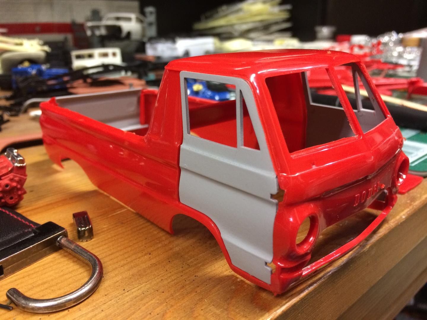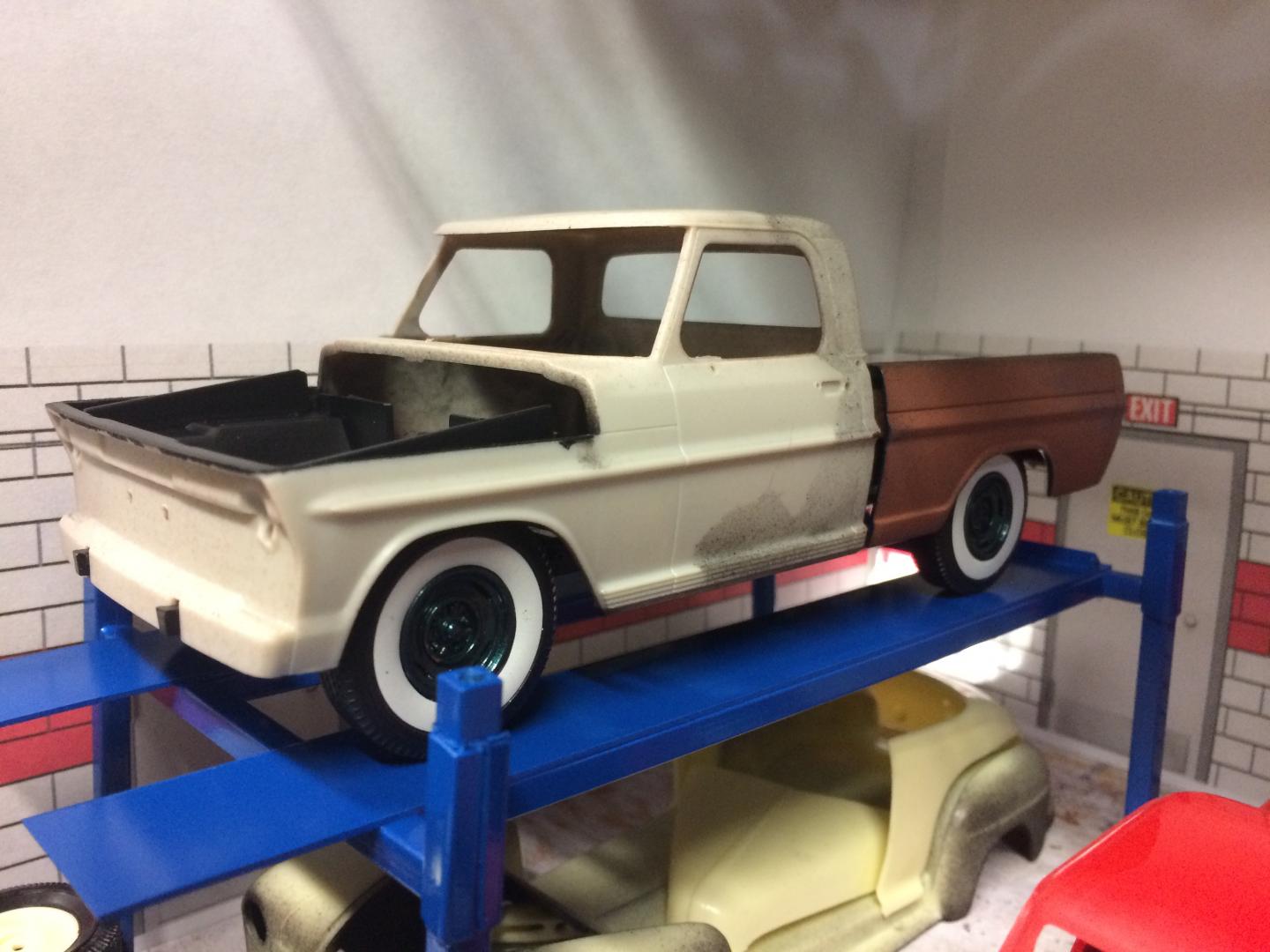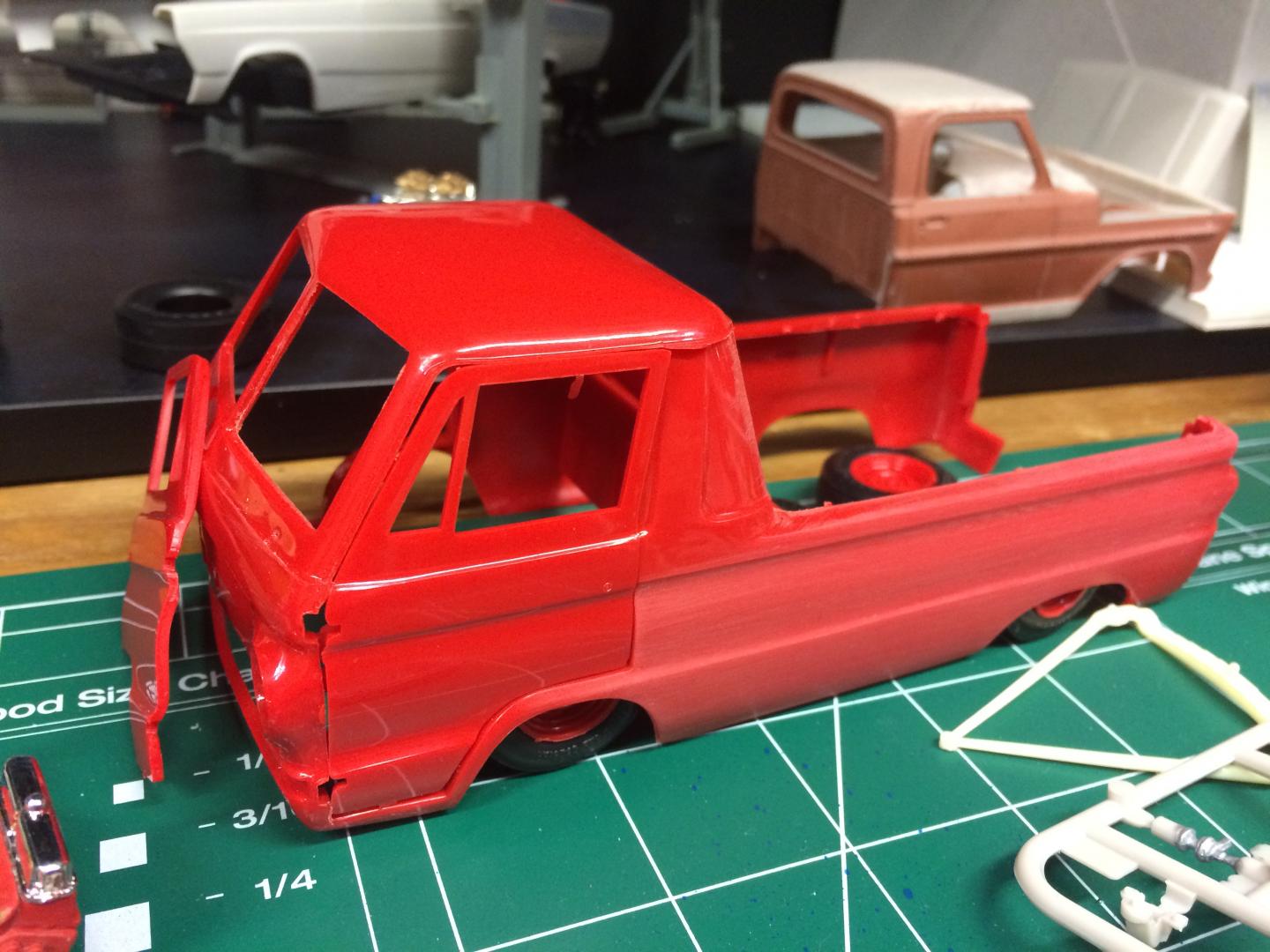 21. Been playing a bit with a Dodge A100 Little Red Wagon, Going for a stock version but lowered. I have been away for many years but have been doing a little bit each evening after work. Did a spring under front and rear to lower it, Funny it still dosent seem too low but wouldn't be able to go much more without major surgery (I'm not ready for that yet.)