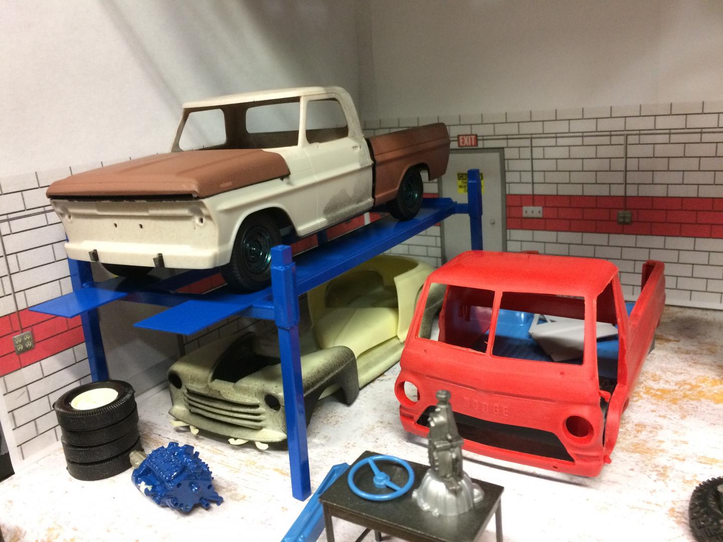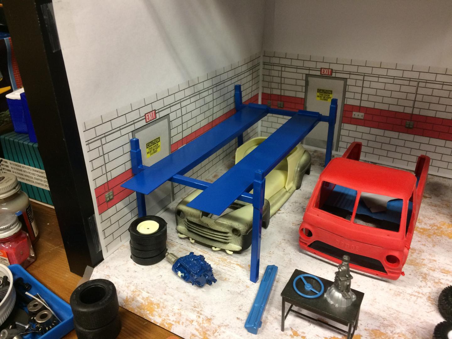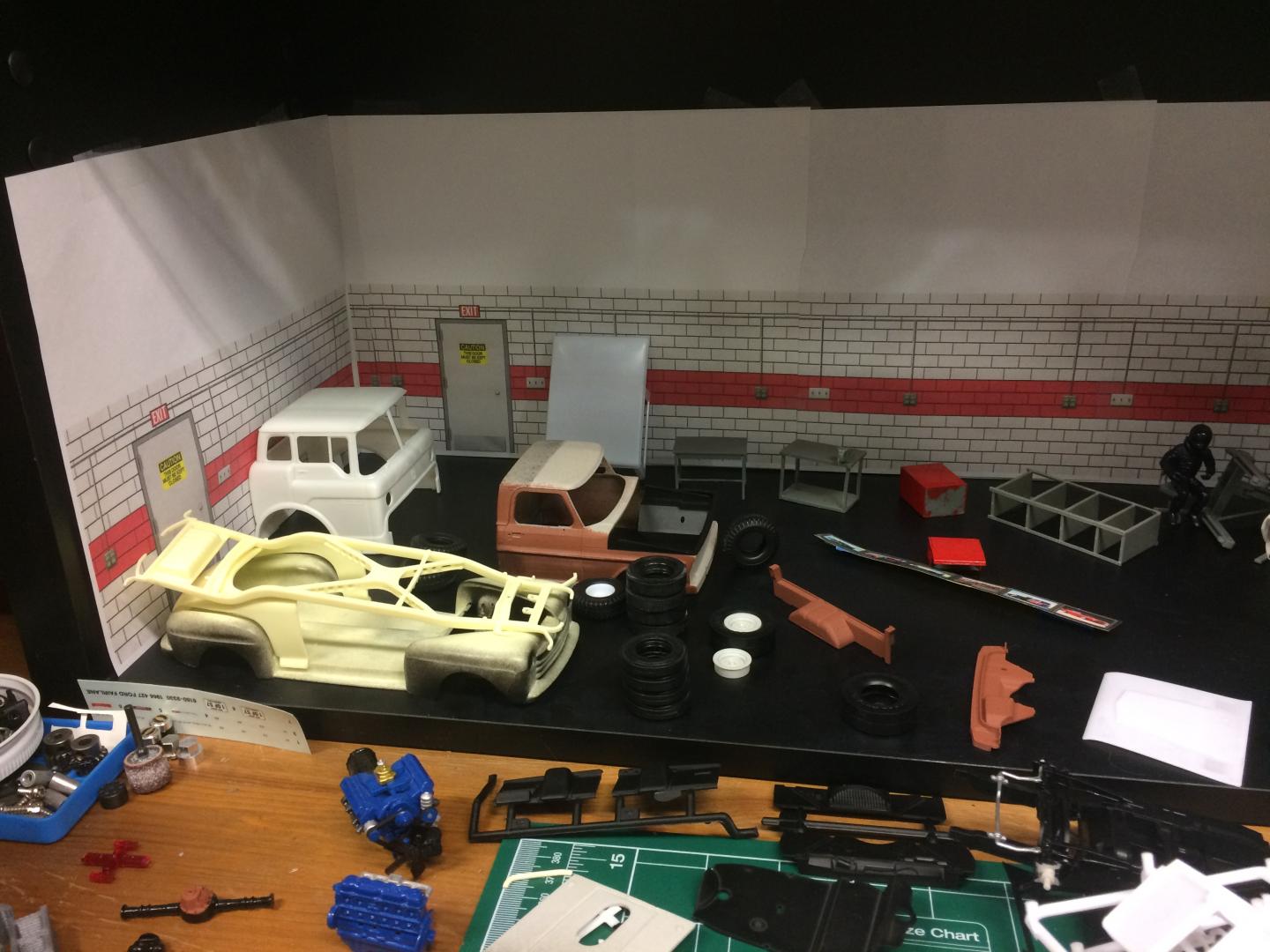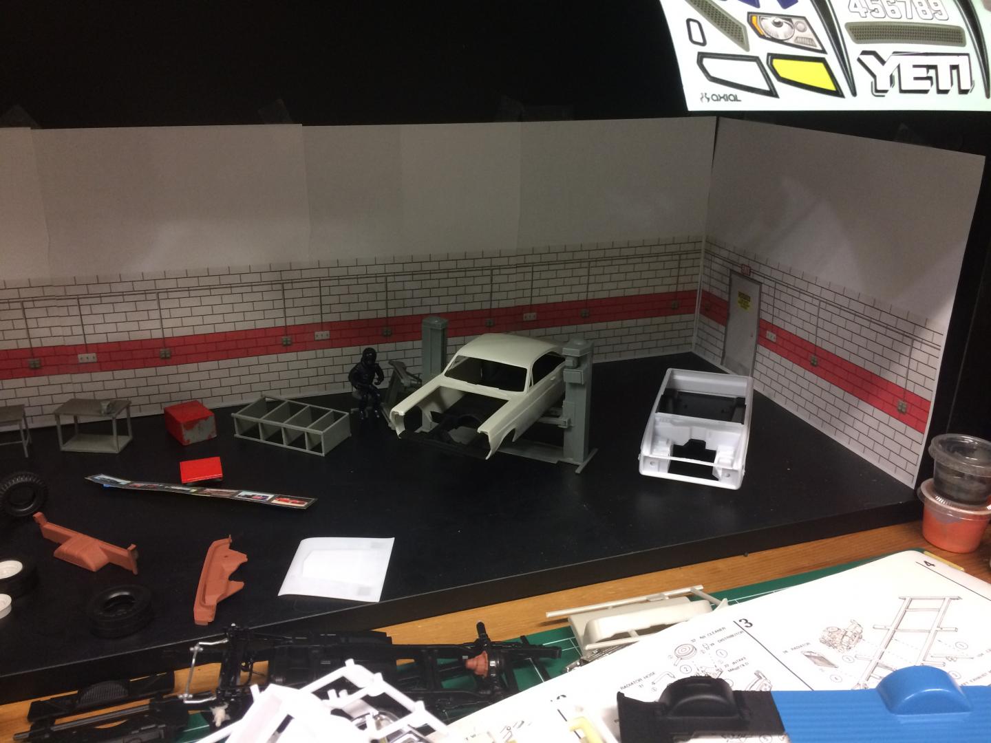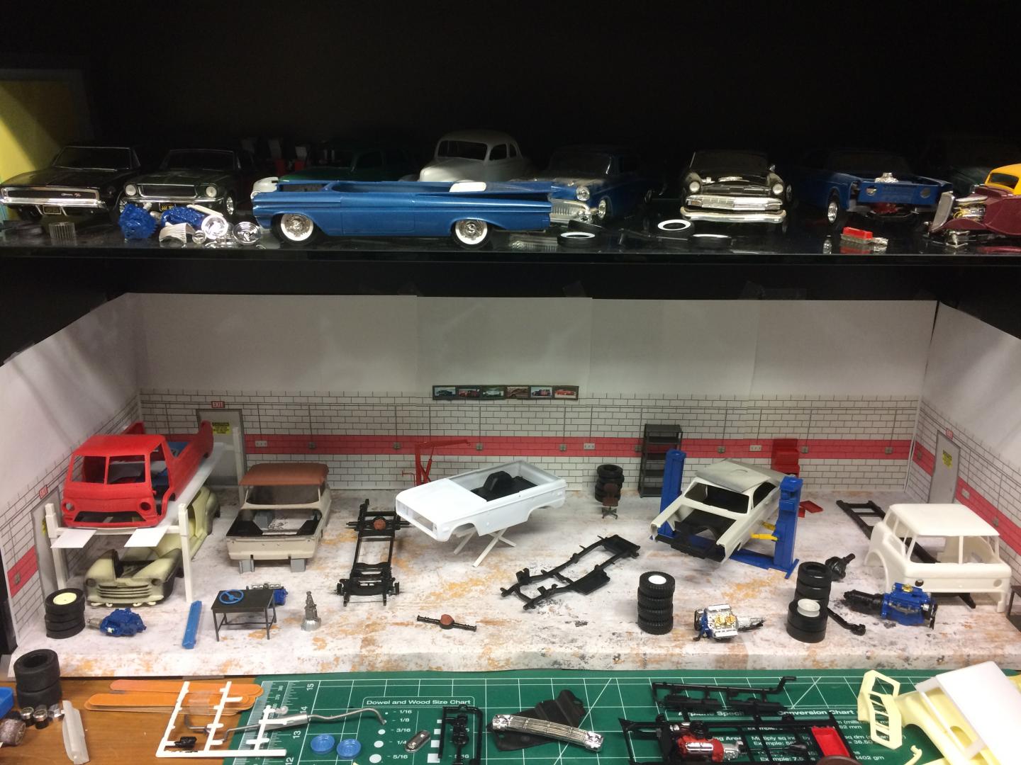 11. Does anyone else have a little area that looks garagish that you set the cars in you are working on? The base of a cabinet I am using in the back of my workbench is such a place, I am not going into a bunch of detail, but its nice to set the cars somewhere that looks nice between work sessions..