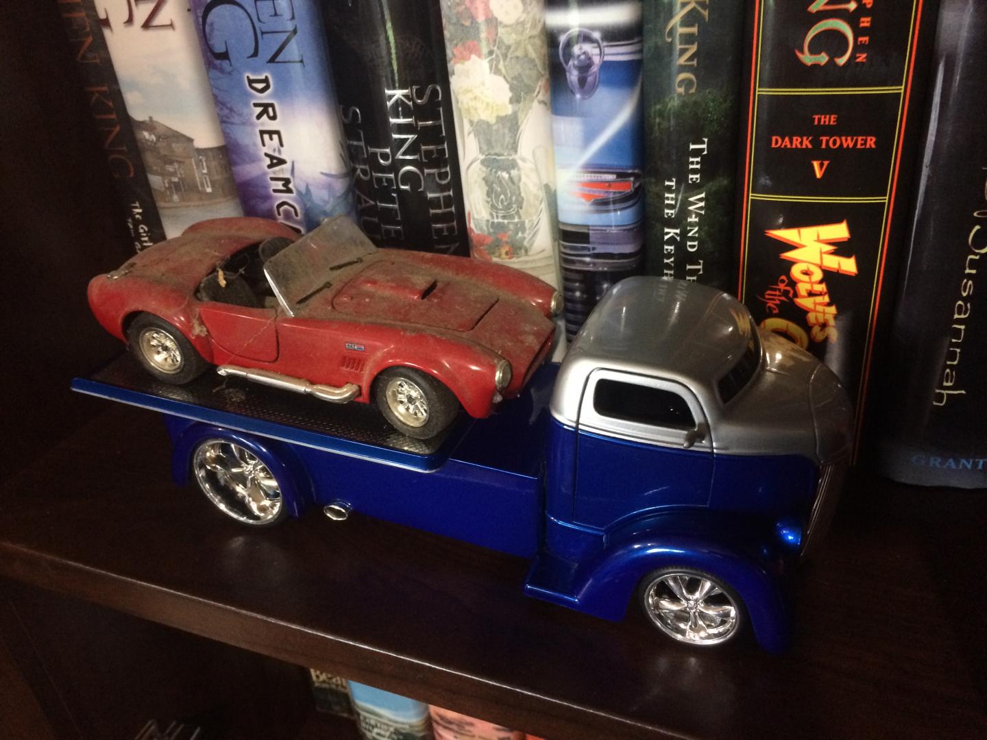 5. So my Brother passed away 5 years ago, and in his stuff was this funky rollback truck, My Dad passed 2 years ago and under his house in the storage area I found an old cobra. Decided to put them together.. think I'll keep them this way.