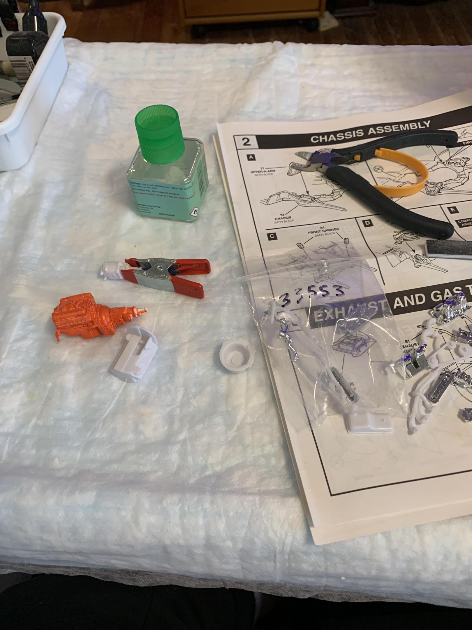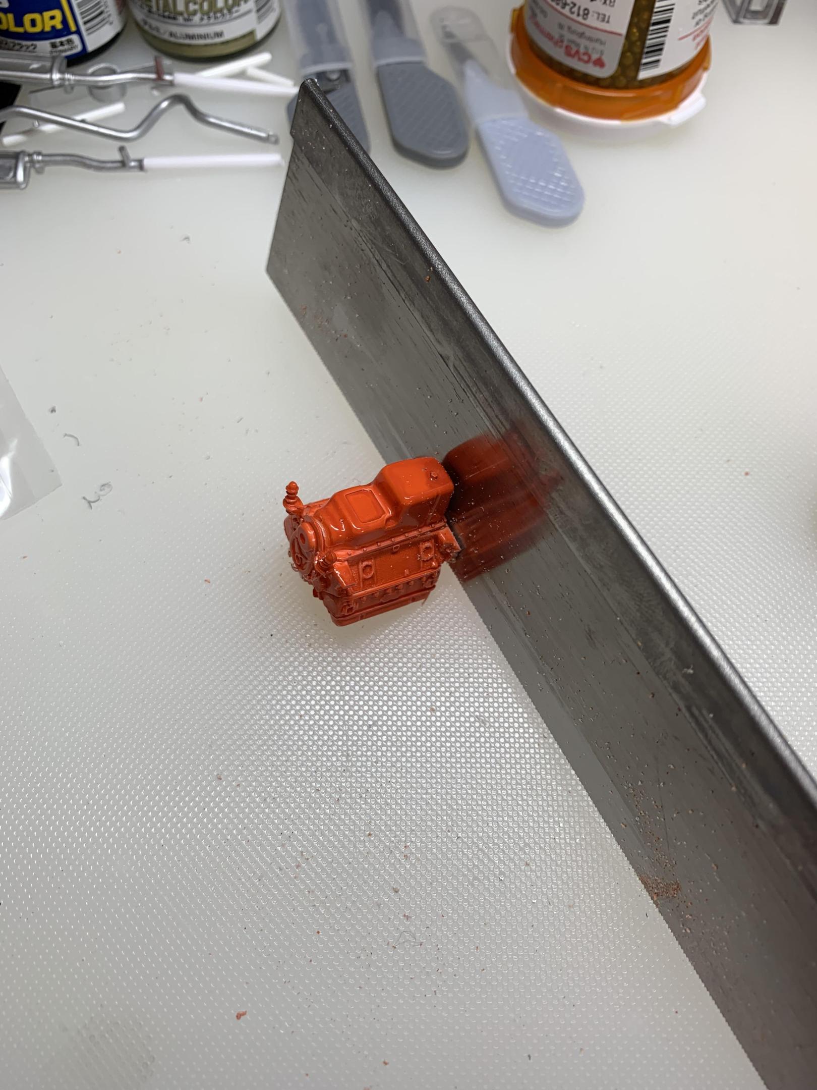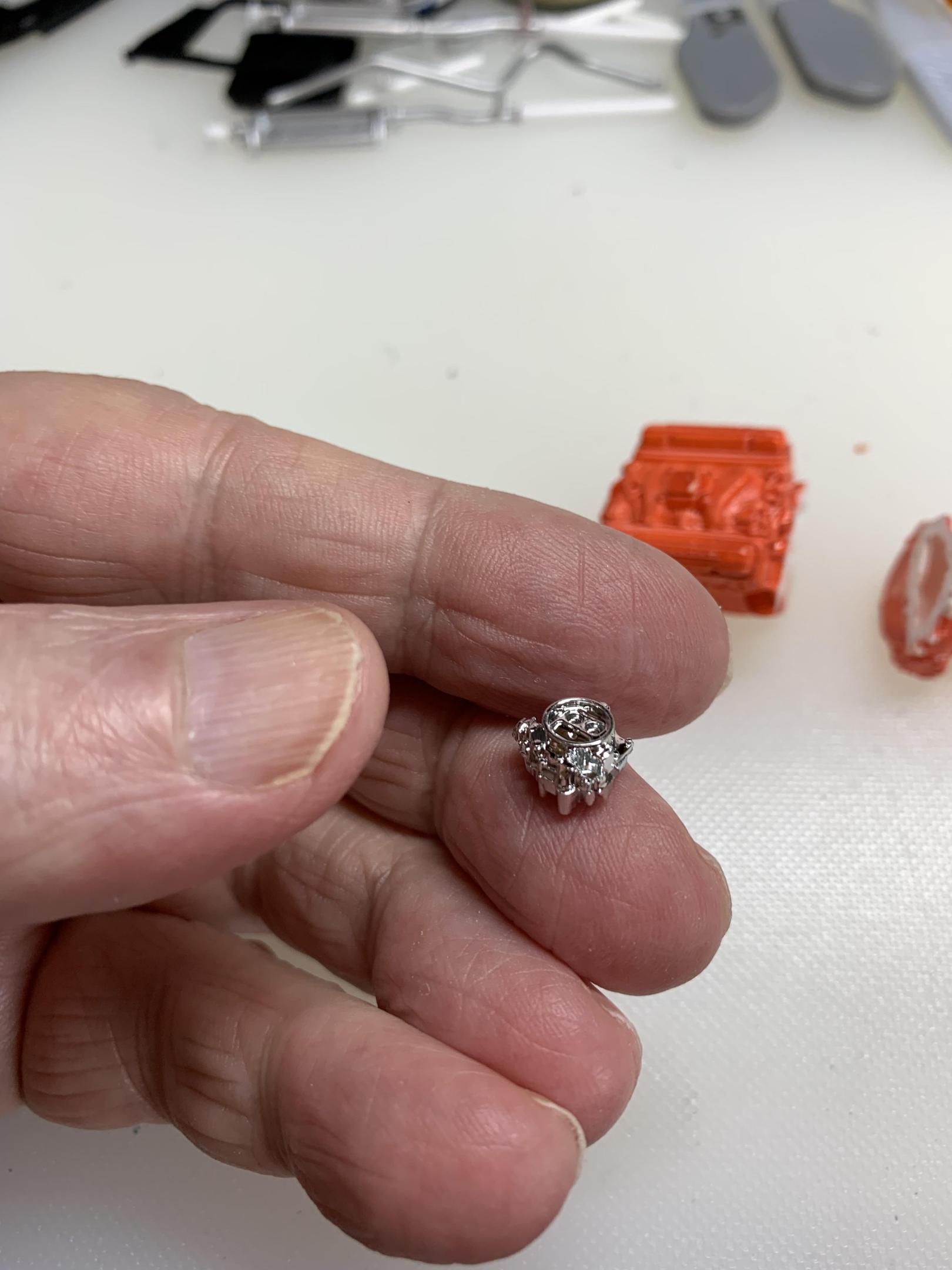 A little painting and engine assembly stuff. If you’re wondering why a 2 bladed fan, that was a little trick I picked up from Jack Mullins and was worth about 7 hundredths et on my Olds stocker. -